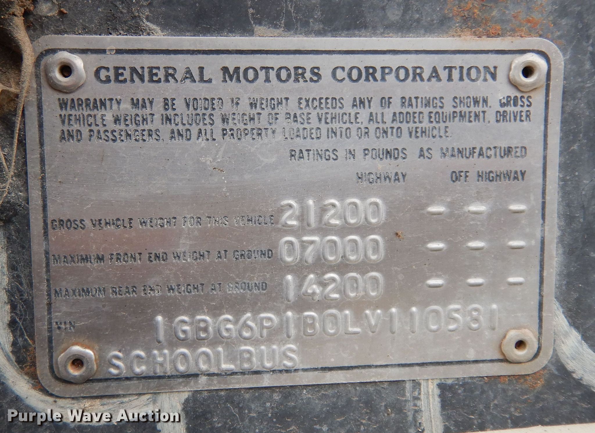 Purple Wave is selling a used Bus in Kansas. This item is a 1990 Chevrolet B60 school bus with the following: Miles: 76,011 on odometer, VIN: 1GBG6P1B0LV110581