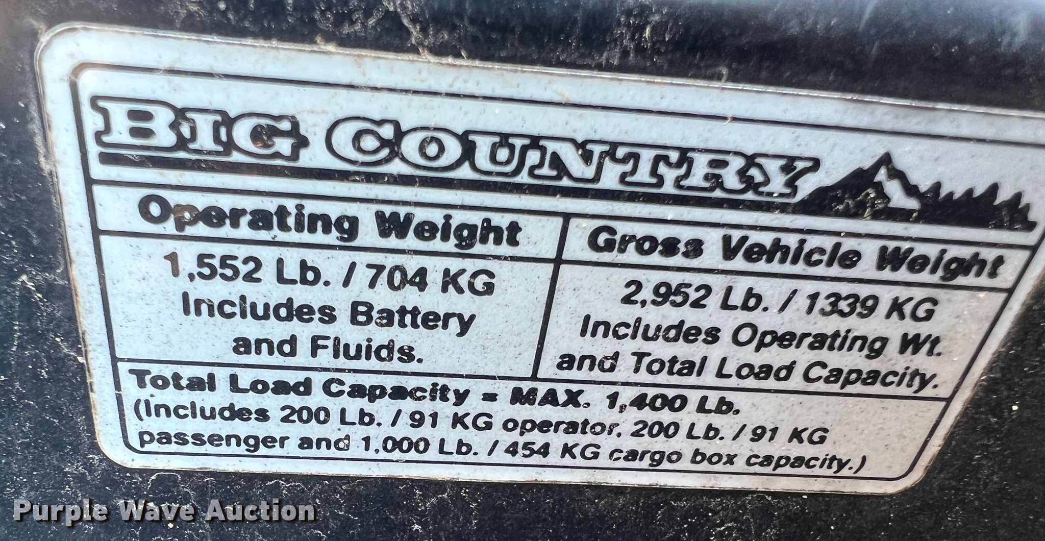Purple Wave is selling a used Utility Vehicle in Missouri. This item is a Cub Cadet Big Country utility vehicle with the following: Hours: Unknown, Serial: 1D222B00009