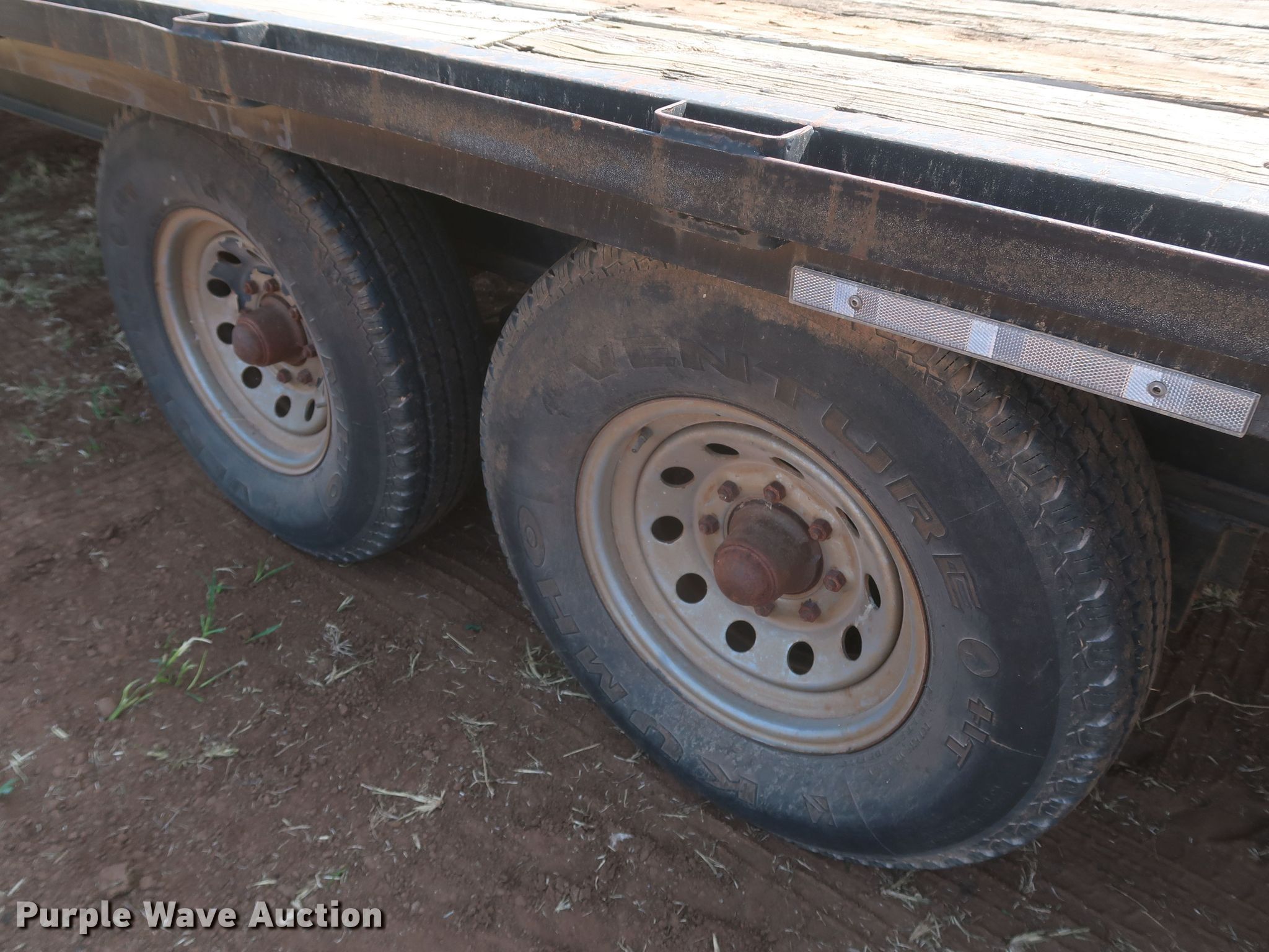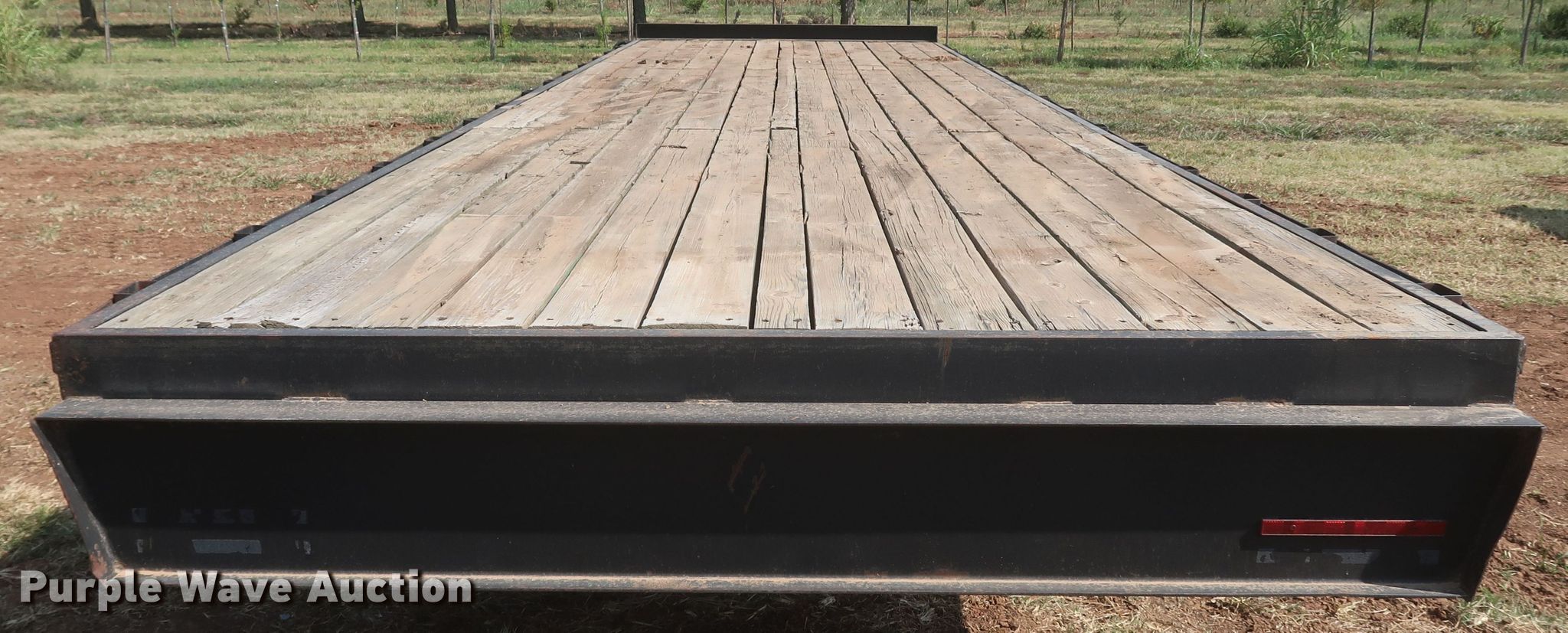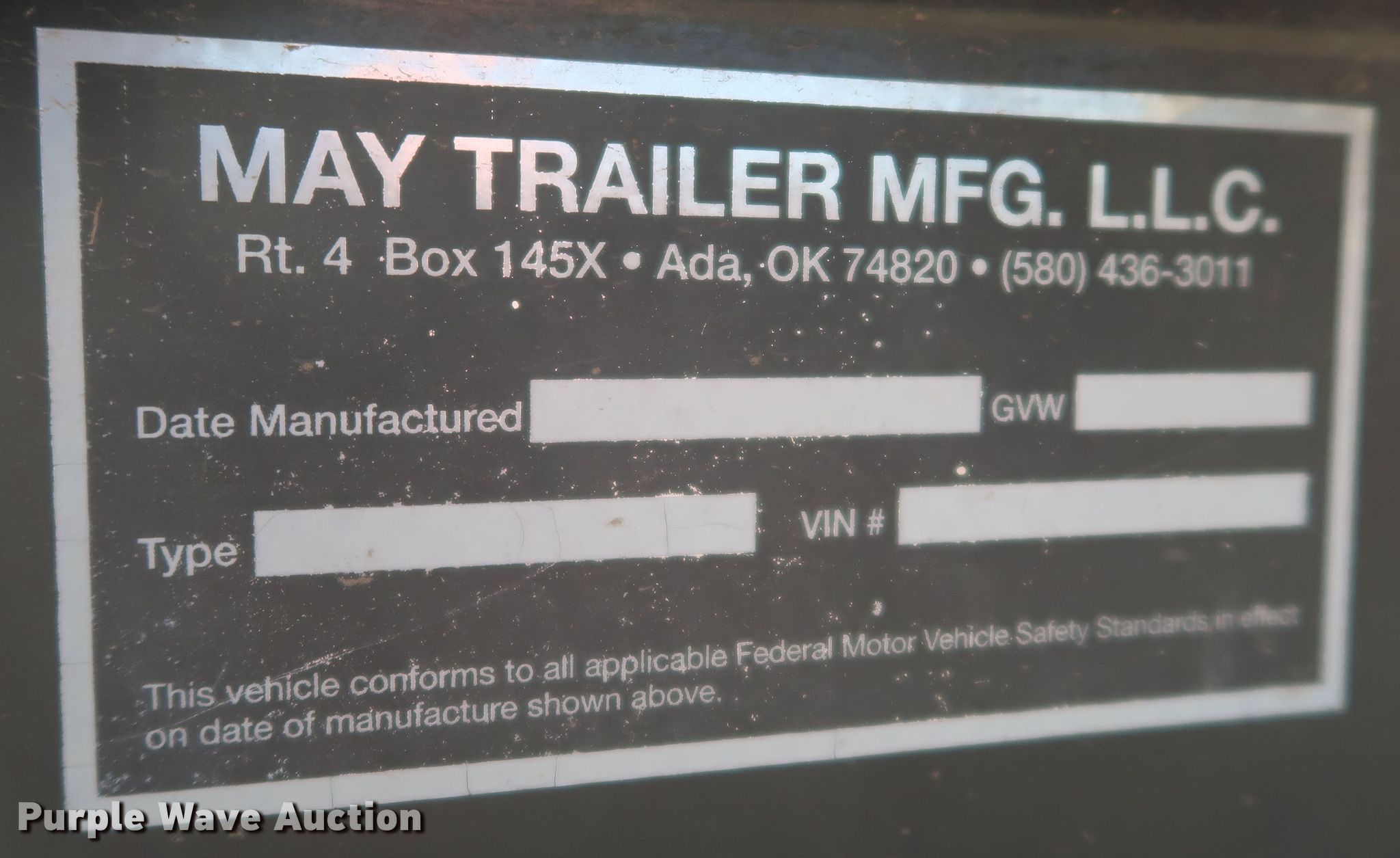 2000 May flatbed trailer. VIN: 4C8GS3022YA003154. Dimensions Overall: 36' L x 102" W, Deck: 30' L x 96" W. Features Deck type: Wood. Chassis Hitch: Pin, Landing gear: Single, Suspension: Spring, Axles: Tandem. Tires Size: 235/85R16. Transfer of ownership documentation will be a bill of sale. Marcum's Nursery, Inc.. Goldsby, OK 73093