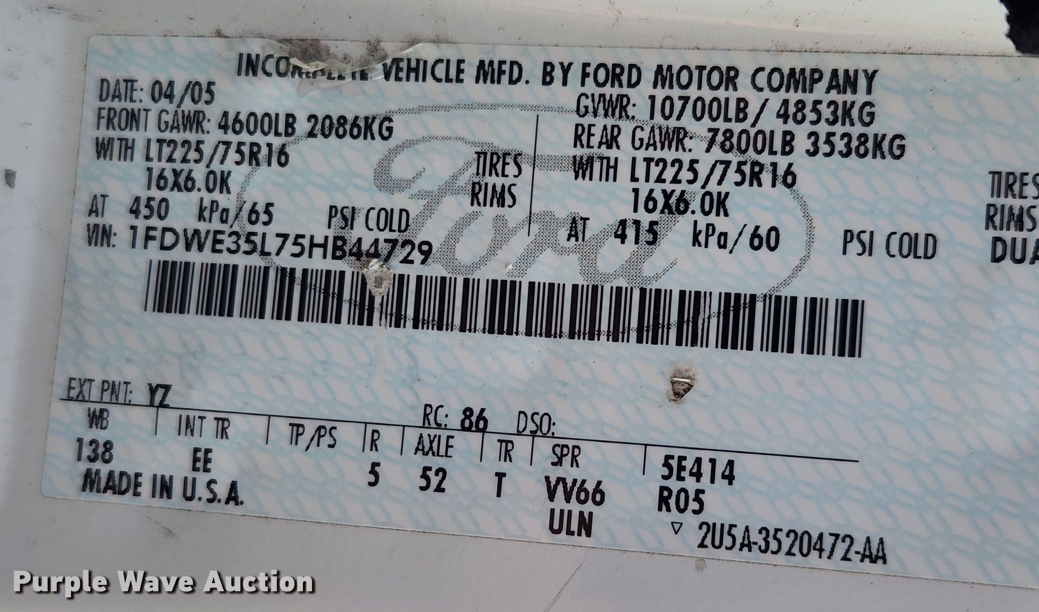 Purple Wave is selling a used Bus in Missouri. This item is a 2005 Ford E350 Super Duty shuttle bus with the following: Miles: 302,738 on odometer, VIN: 1FDWE35L75HB44729