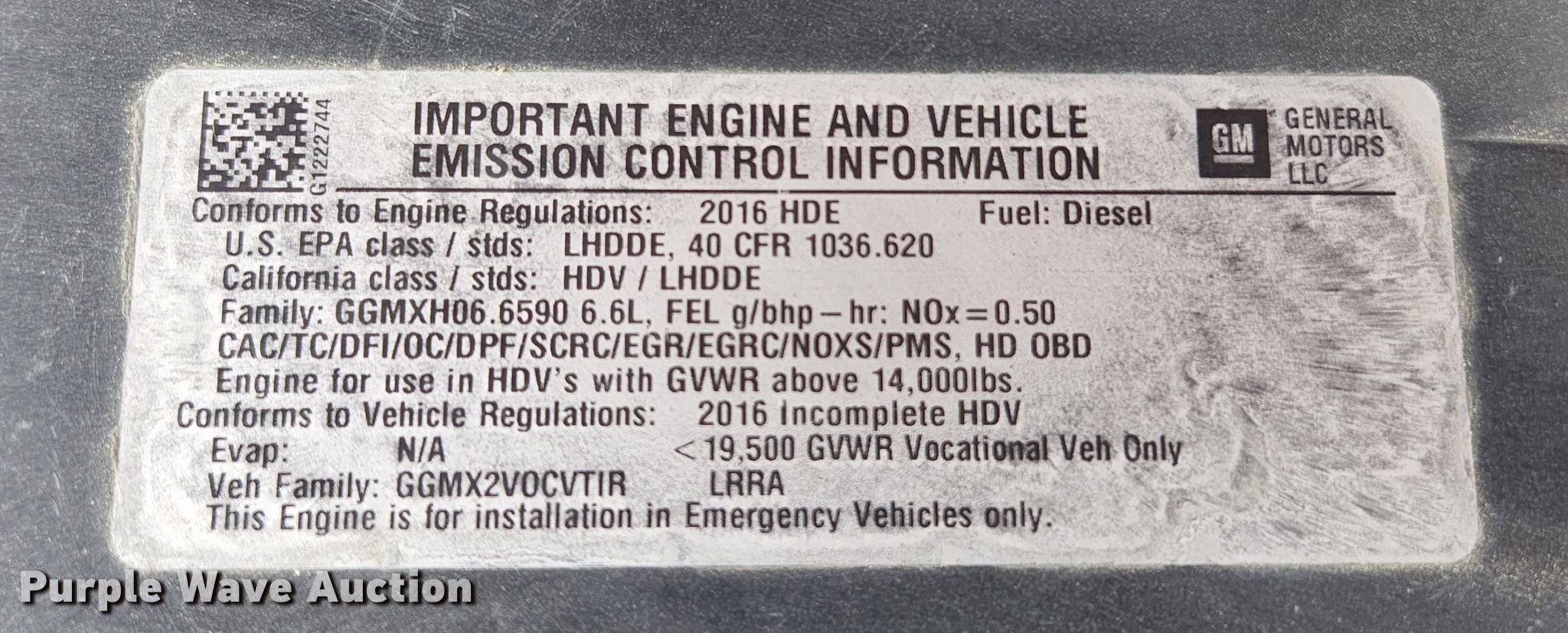 - VIN: 1GB6GUCL0G1222744