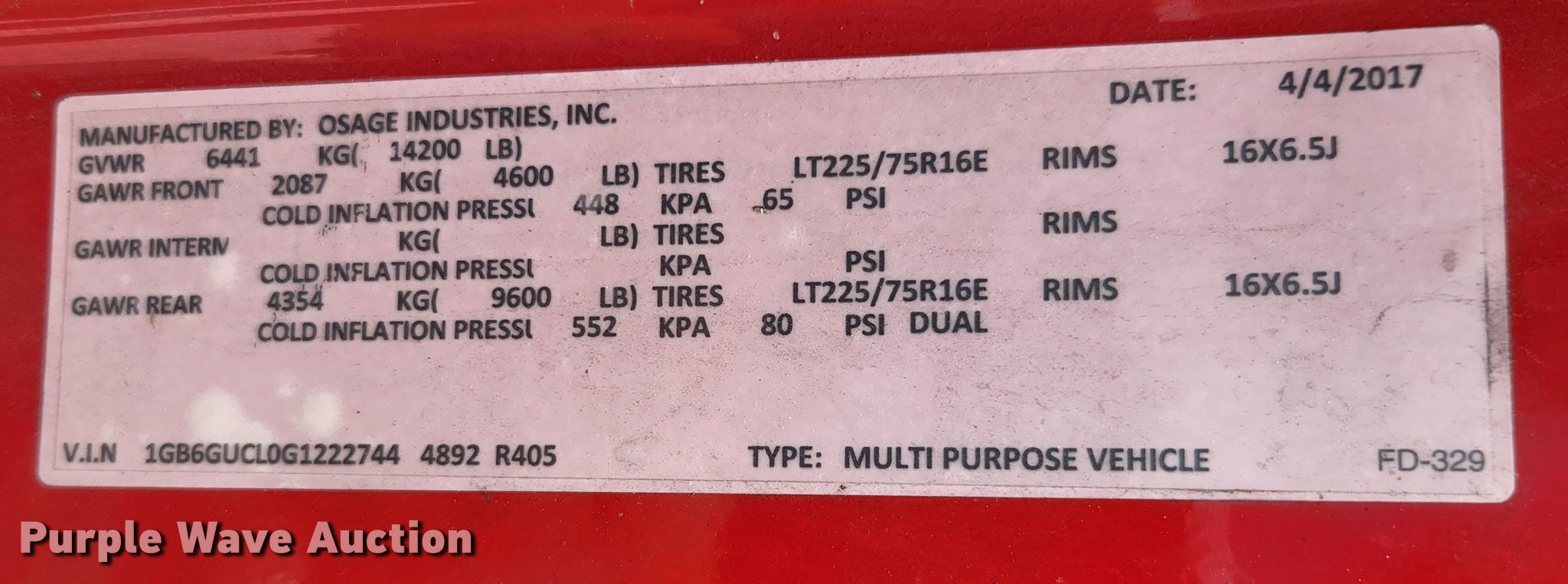 Purple Wave is selling a used Truck Chassis in Missouri. This item is a 2016 Chevrolet Express G4500 van cab and chassis with the following: Miles: 123,686 on odometer, VIN: 1GB6GUCL0G1222744