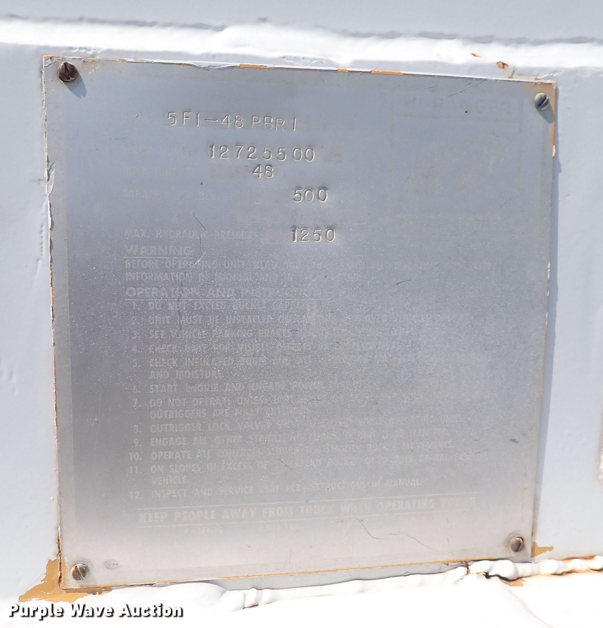 1997 Chevrolet C7500 bucket truck. Miles: 83,685 on odometer, Hours: 2,933 on meter, VIN: 1GBM7H1J2VJ115580. Engine Caterpillar 3116, Displacement: 6.6L, Cylinders: 6, Fuel type: Diesel. Transmission Automatic. Chassis Axles: Single, Suspension: Spring, Brakes: Air, PTO, GVWR: 33,000 lbs. Interior Heat. Features Bed 15' L x 94" W, Boom 5FI-48PBR1, Serial: 12725500, Mast height: 48', Maximum lift capacity: 500 lbs, Boom type: Articulating, Man basket, Boom controls Platform/ basket.. Tires Size: 11R22.5. Kansas title. Kansas Electric. 1420 NW 36th St. Newton, KS 67114