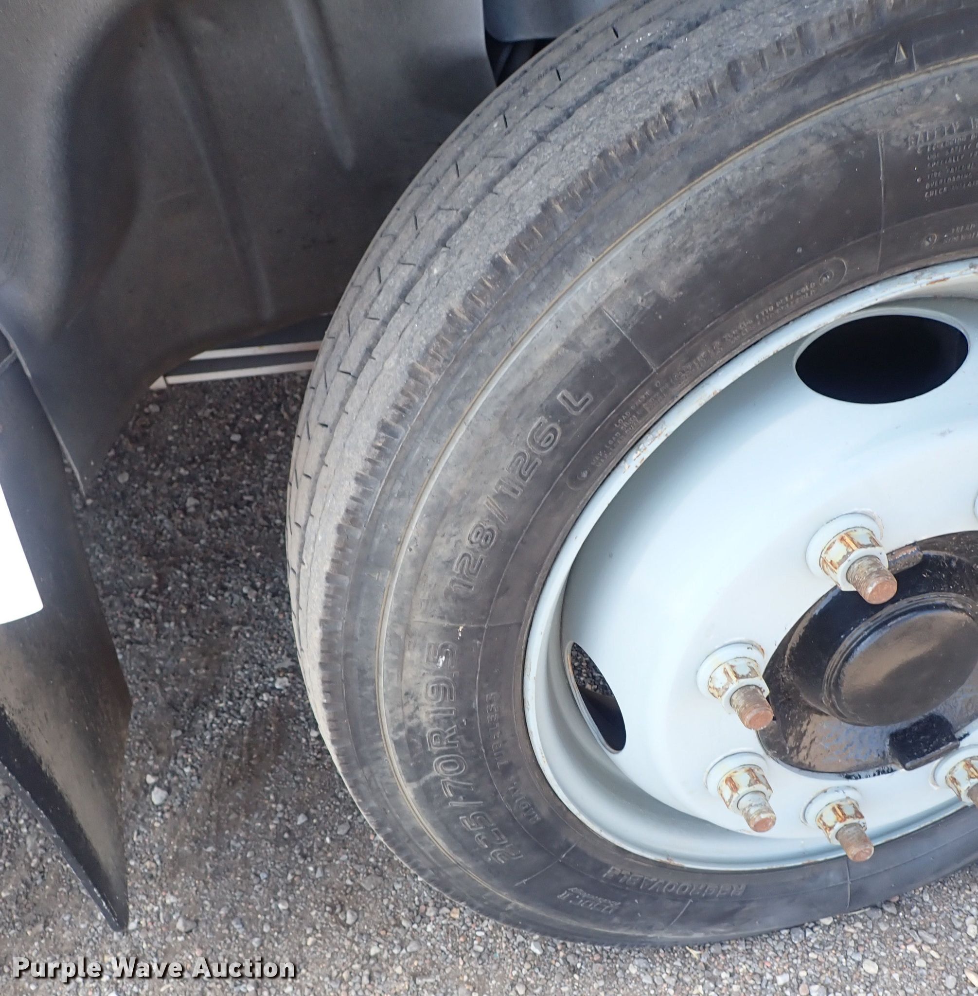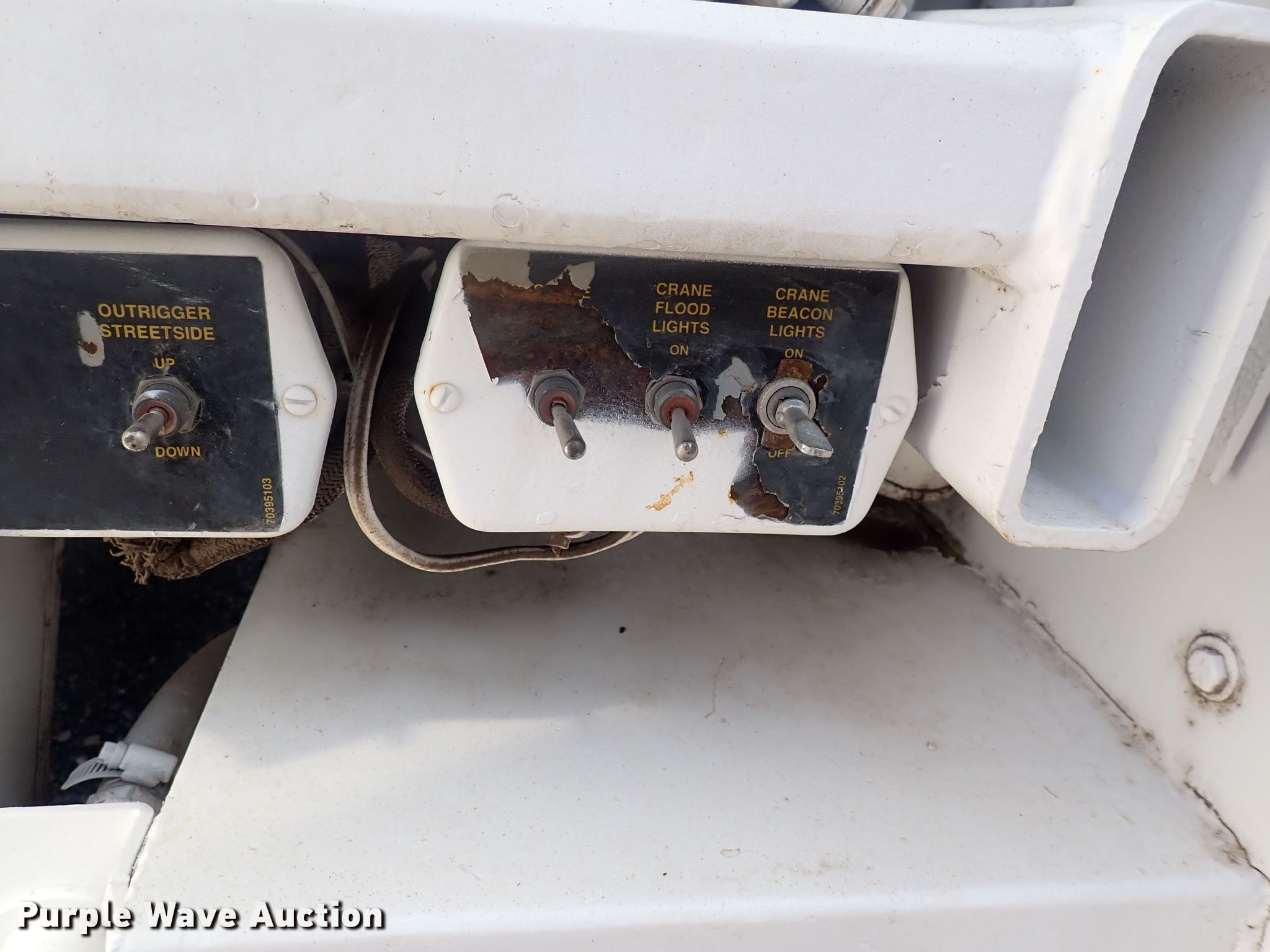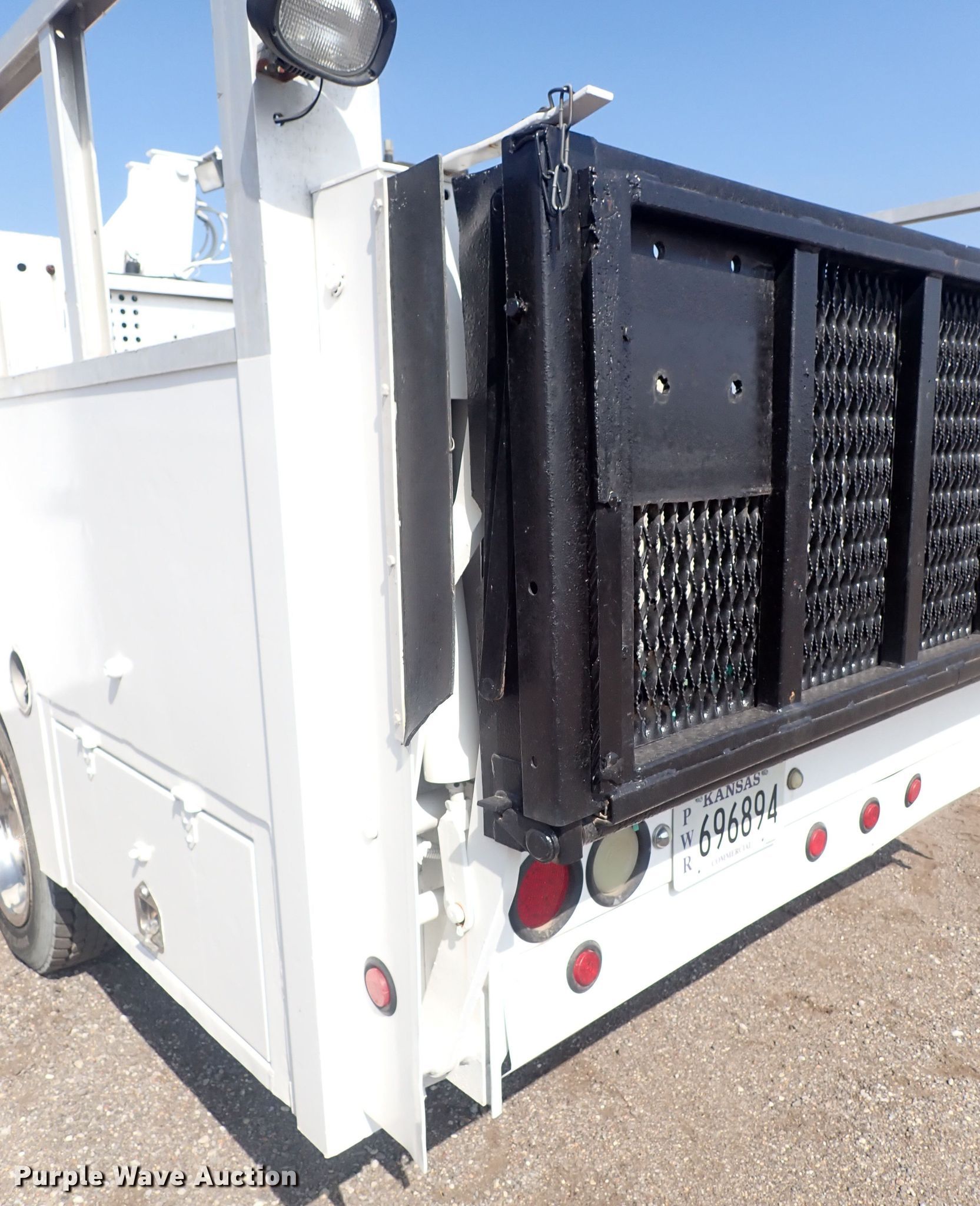 2006 Chevrolet C4500 utility / service truck. Miles: 355,056 on odometer, VIN: 1GBE4C1216F427001. Engine Displacement: 6.6L V8 OHV, Cylinders: 8, Fuel type: Diesel. Transmission Automatic. Chassis Axles: Single, Suspension: Spring, Brakes: Hydraulic, PTO, GVWR: 17,500 lbs. Interior AC, Heat. Features Bed 11' L x 96" W, Air compressor, Crane IMT, End lift gate. Tires Size: 225/70R19.5. Notes Dash warning indicator: Check engine. Kansas title. Pearson Construction. 2901 N Mead. Wichita, KS 67219
