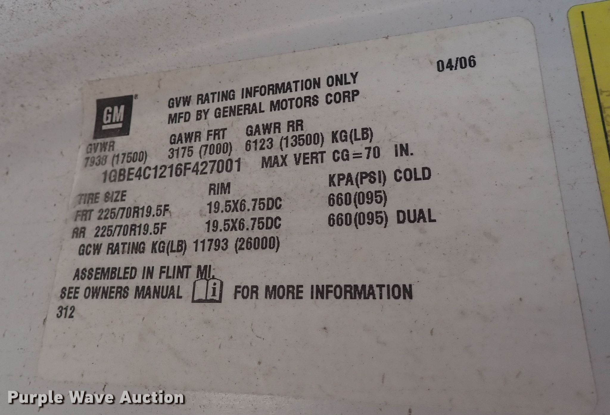 Purple Wave is selling a used Service Truck in Kansas. This item is a 2006 Chevrolet C4500 utility / service truck with the following: Miles: 355,056 on odometer, VIN: 1GBE4C1216F427001