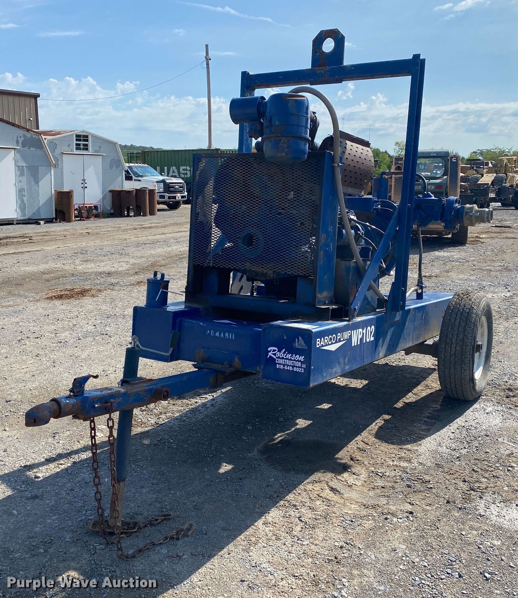 Purple Wave is selling a used Pump in Oklahoma. This item is a Barco pump with the following: Hours: 7,469 on meter, Unit #: WP102