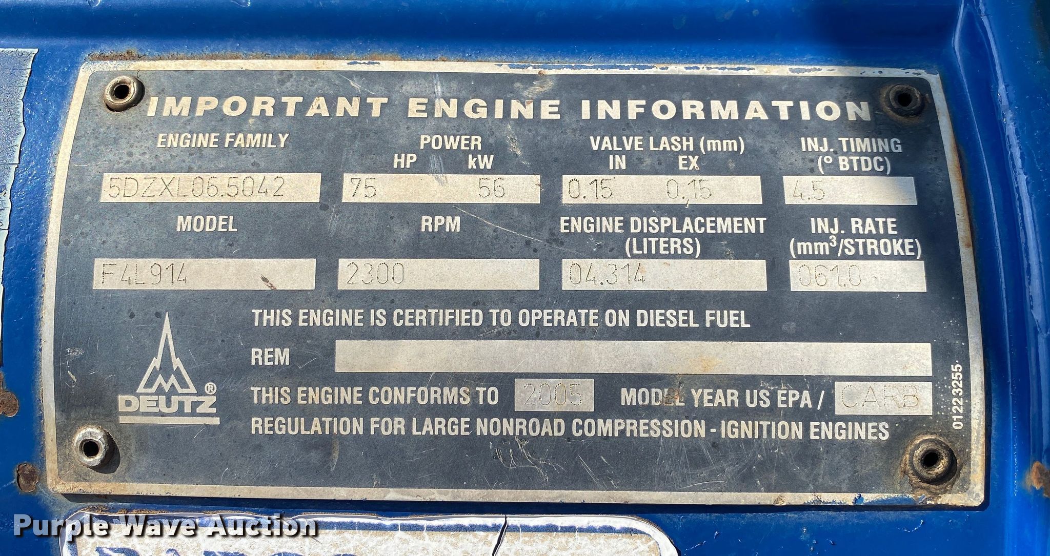 Barco pump. Hours: 7,469 on meter, Unit #: WP102. Engine Deutz , Displacement: 4.314L , Cylinders: 4, Fuel type: Diesel. Features Inlet: 3", Outlet: 4". Trailer 12' L x 64" W , Hitch: 2" Ball, Landing gear: Single. Tires Size: ST225/75R15. Transfer of ownership documentation will be a bill of sale. Robinson Construction, LLC. Southwest Limestone Road. Wilburton , OK 74578