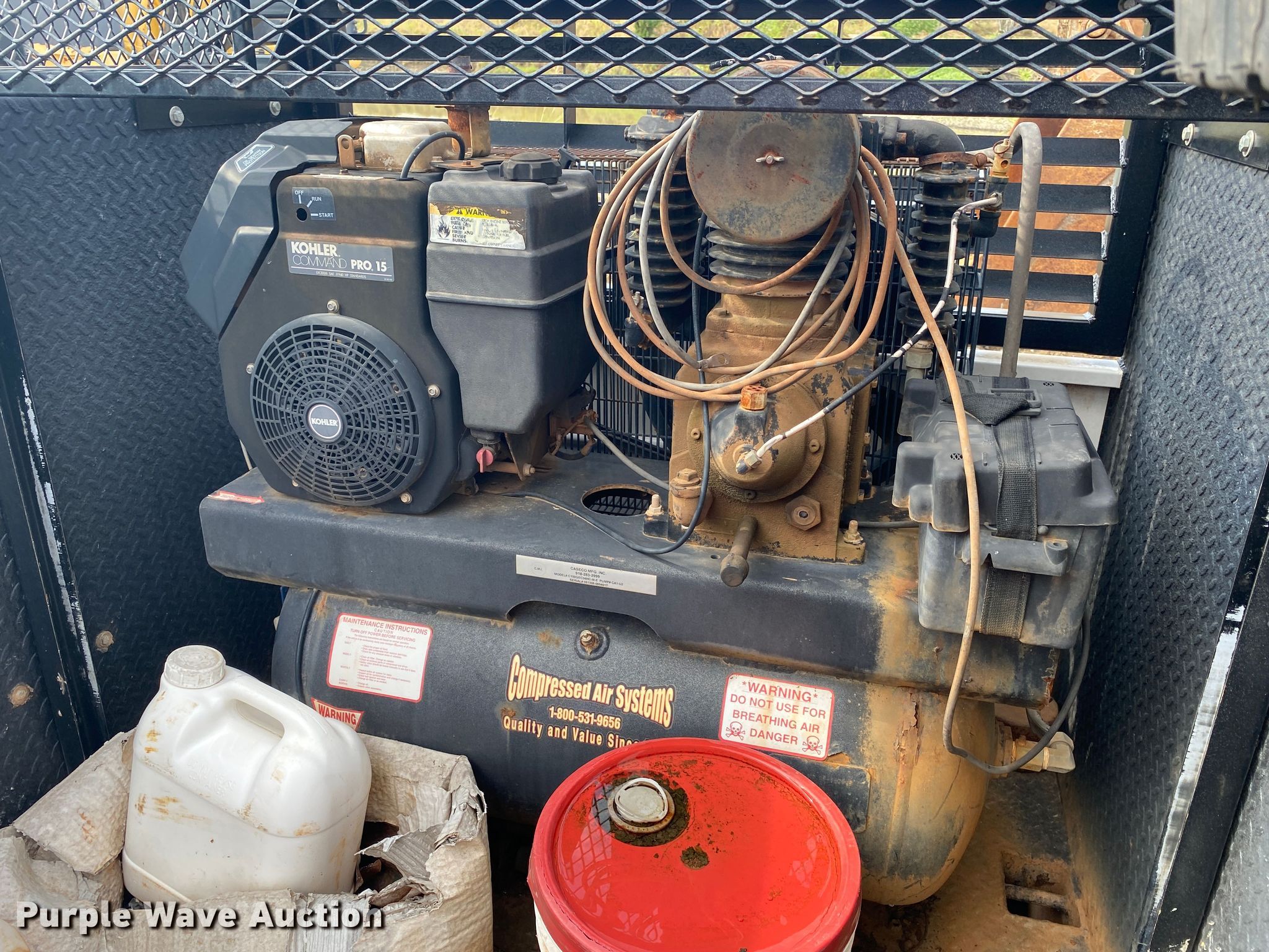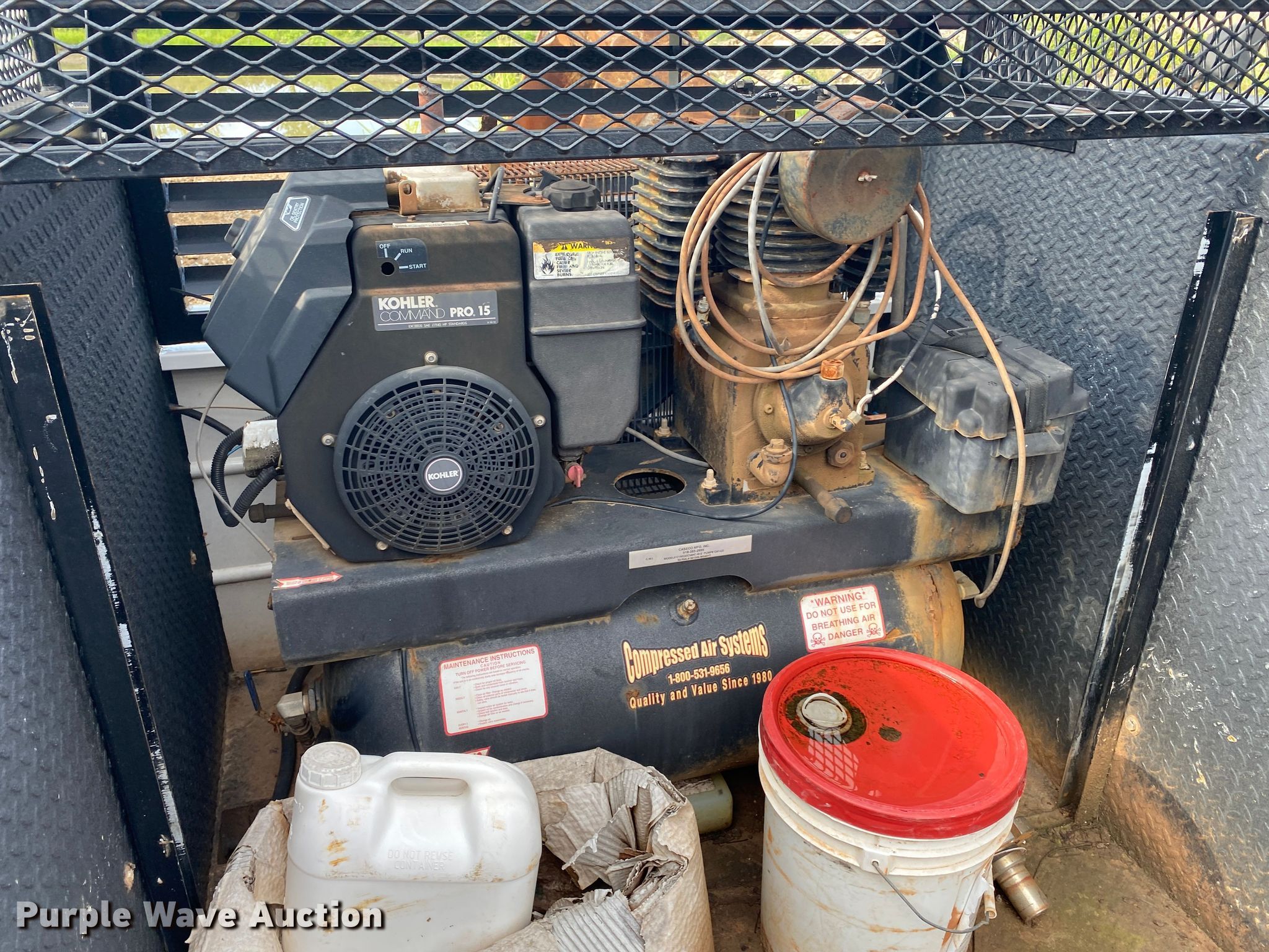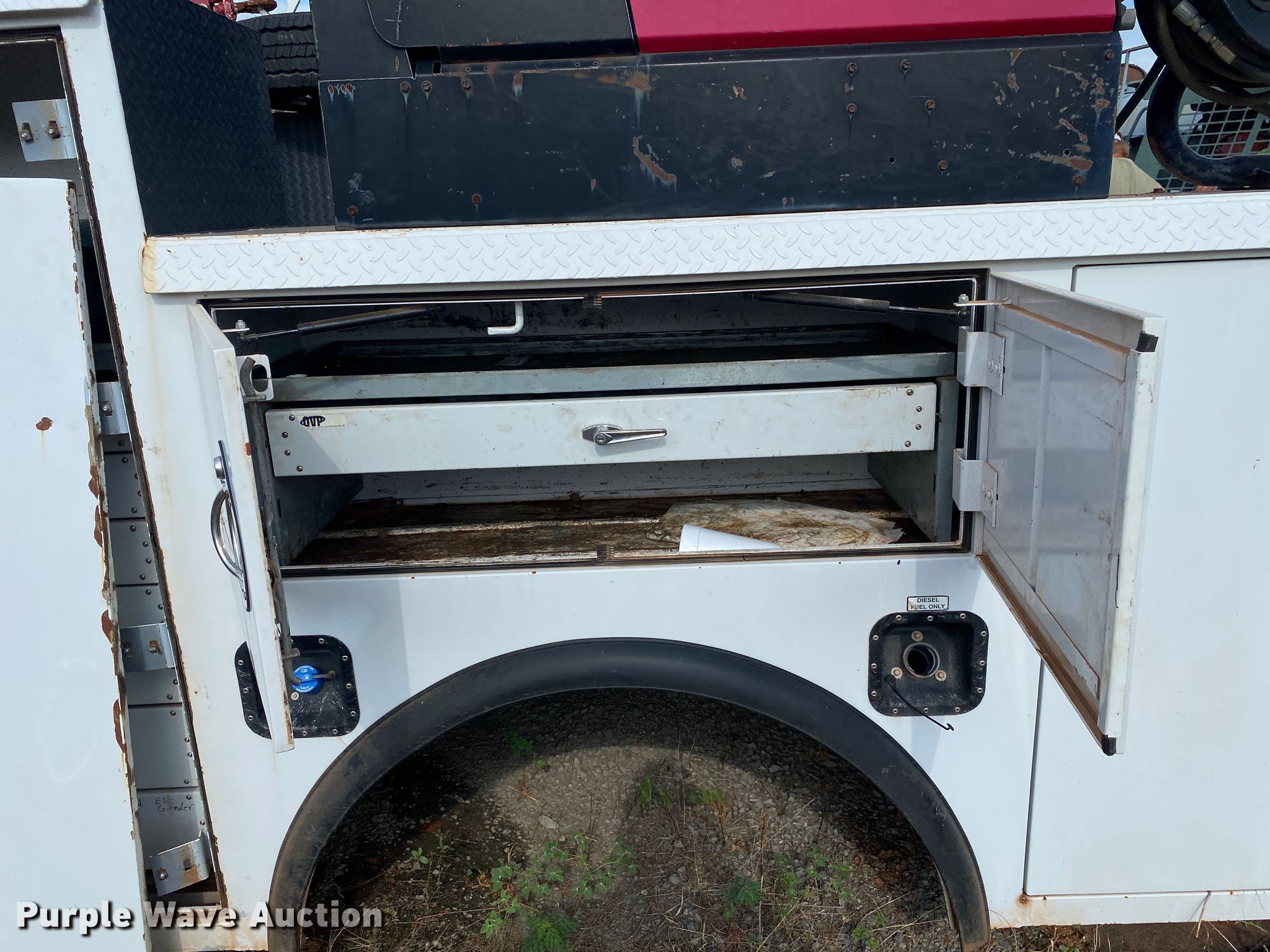 Purple Wave is selling a used Truck Part and Attach. in Oklahoma. This item is a Caseco MM225 utility bed with the following: 11' L x 96" W, Welder/generator, Lincoln Electric 305G Ranger, Fuel type: Diesel, 240V outlets: 1, 120V outlets: 4, Welder type: MIG, Stick (AC/DC), Air compressor, Kohler Command Pro 15, Crane, Stellar 5520, Boom length: 20', Maximum lift capacity: 2,500 lbs