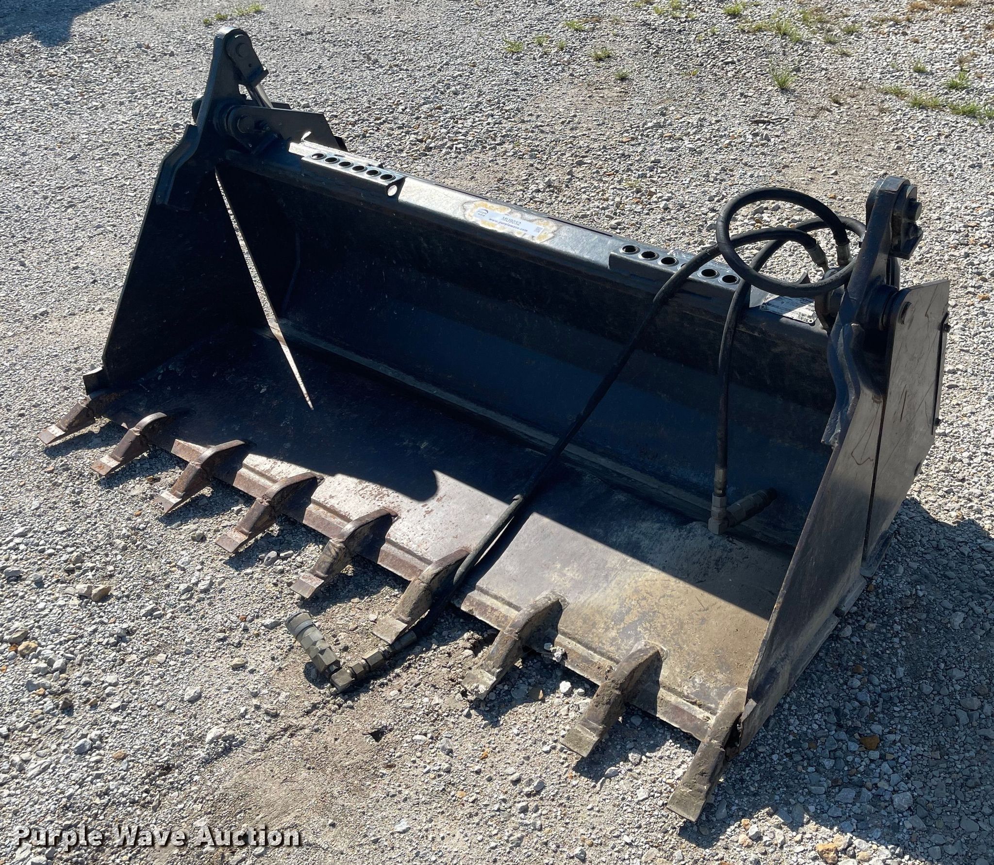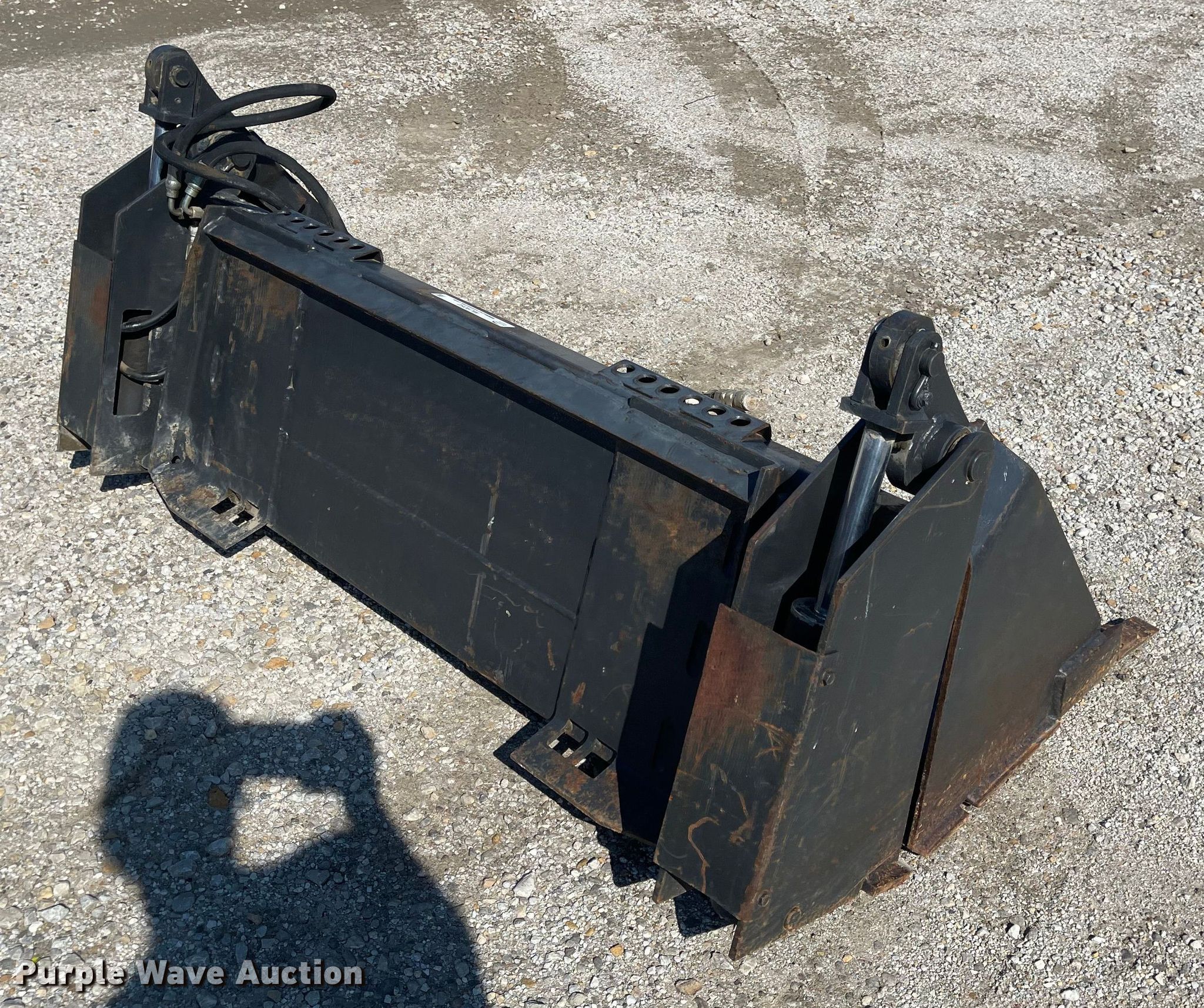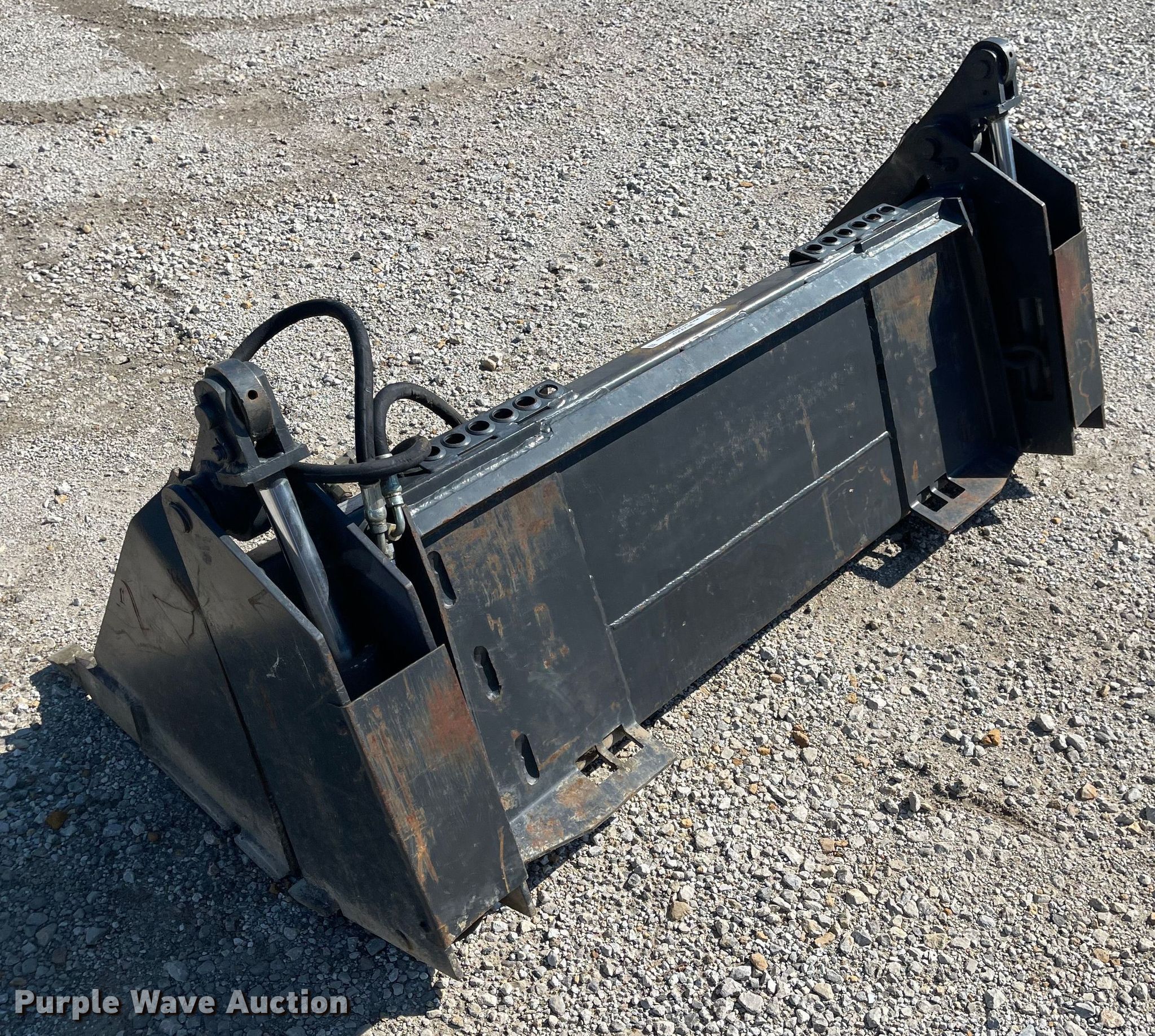 Purple Wave is selling a used Skid Steer Attach. in Kansas. This item is a Melroe 60W/T skid steer bucket with the following: Serial: 451700345, Width: 60", Four-in-one, Cutting edge: Weld-on, Teeth: Weld-on