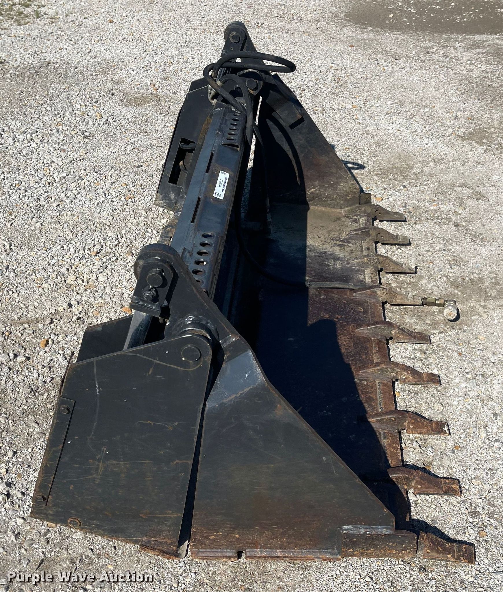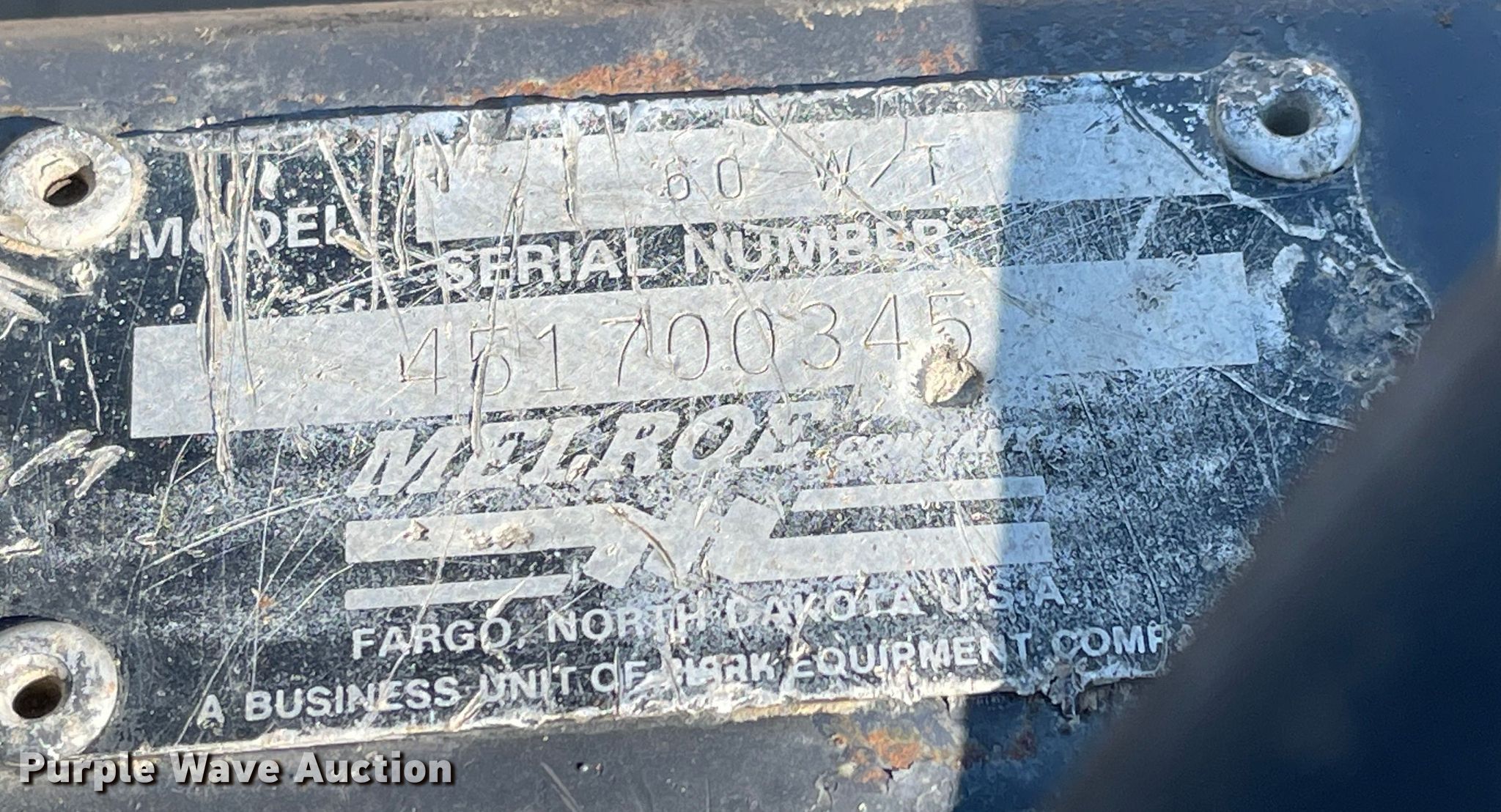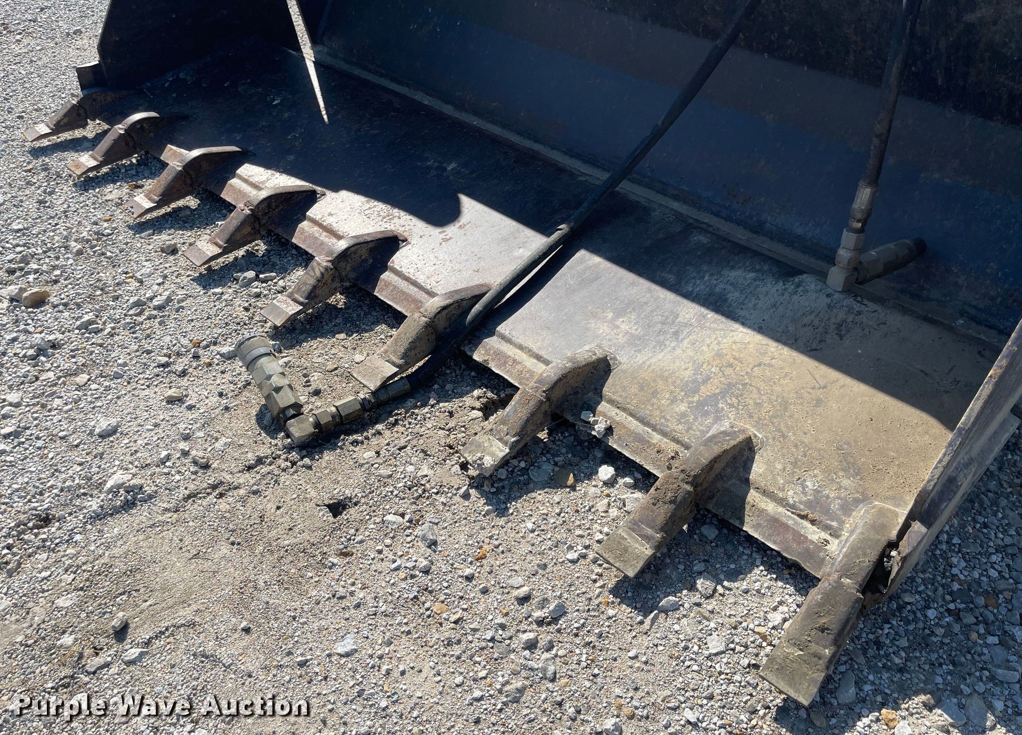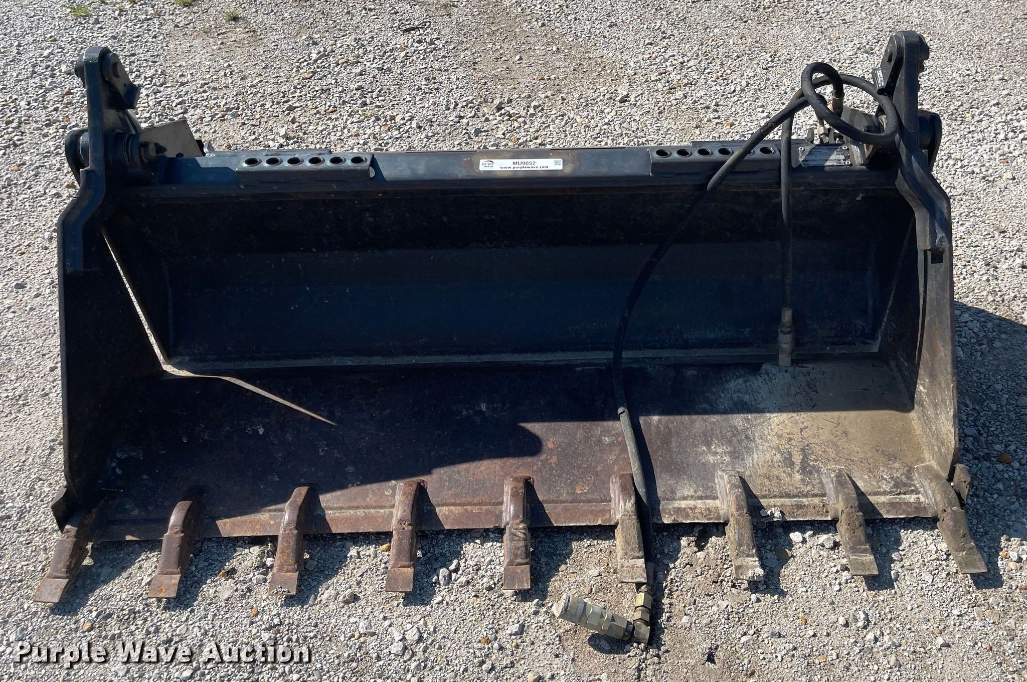 Purple Wave is selling a used Skid Steer Attach. in Kansas. This item is a Melroe 60W/T skid steer bucket with the following: Serial: 451700345, Width: 60", Four-in-one, Cutting edge: Weld-on, Teeth: Weld-on