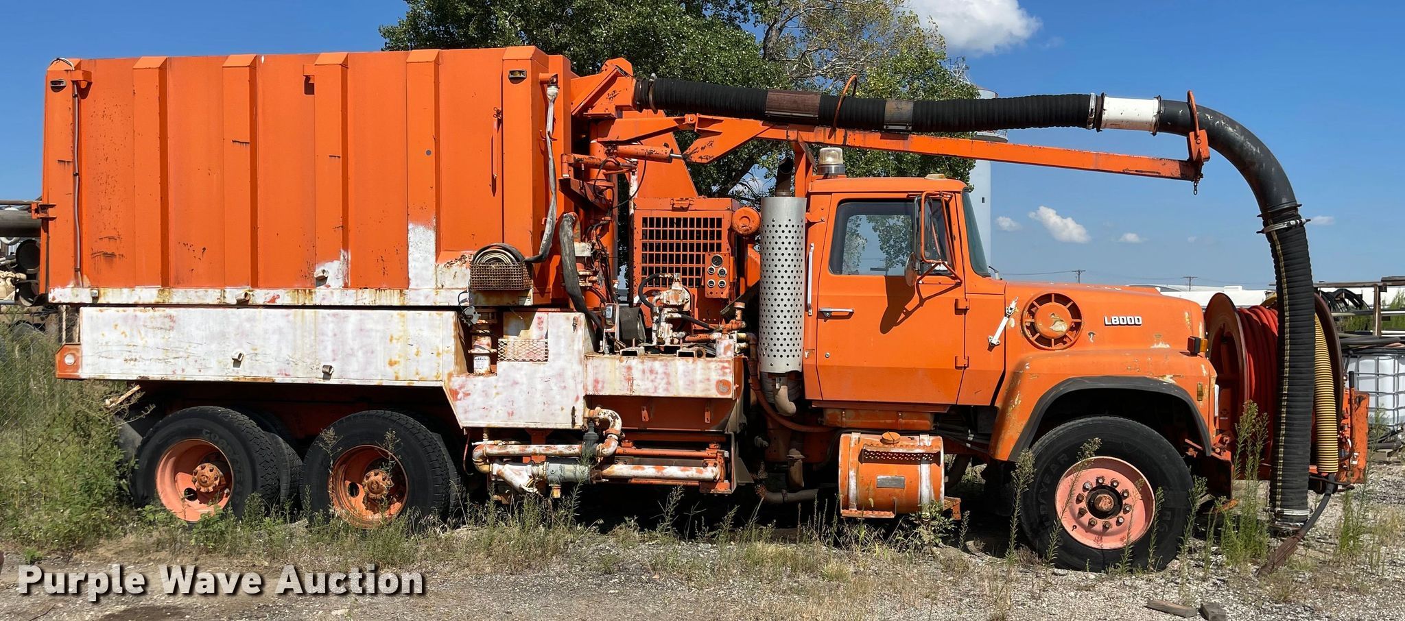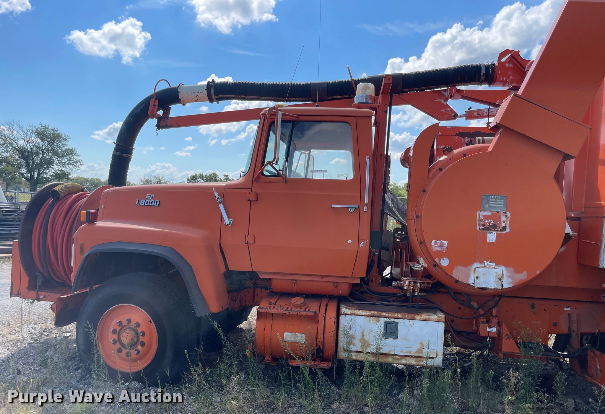 Purple Wave is selling a used Vacuum Truck in Kansas. This item is a 1987 Ford LT8000 sewer jetter truck with the following: Miles: 87,933 on odometer, Hours: 2,620 on meter, VIN: 1FDYU80U4HVA66943