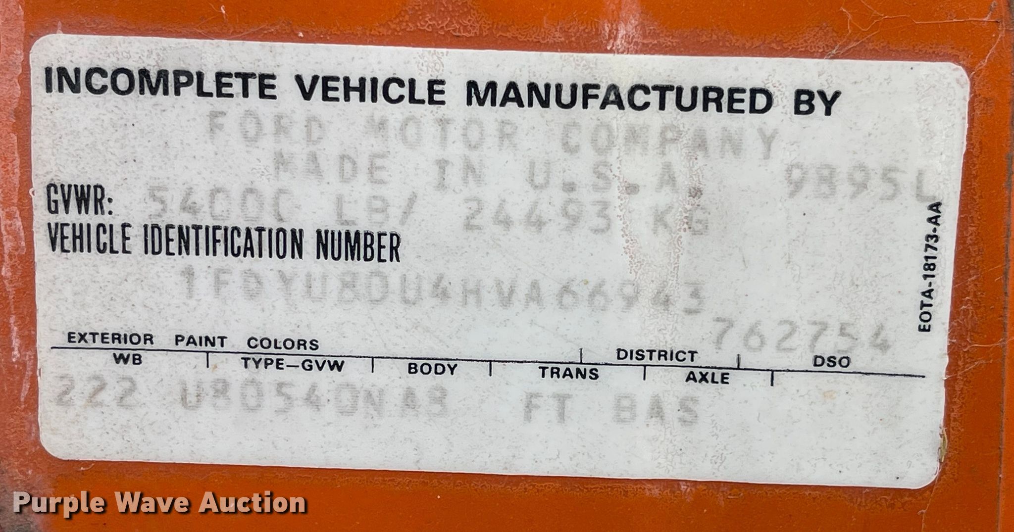 - VIN: 1FDYU80U4HVA66943