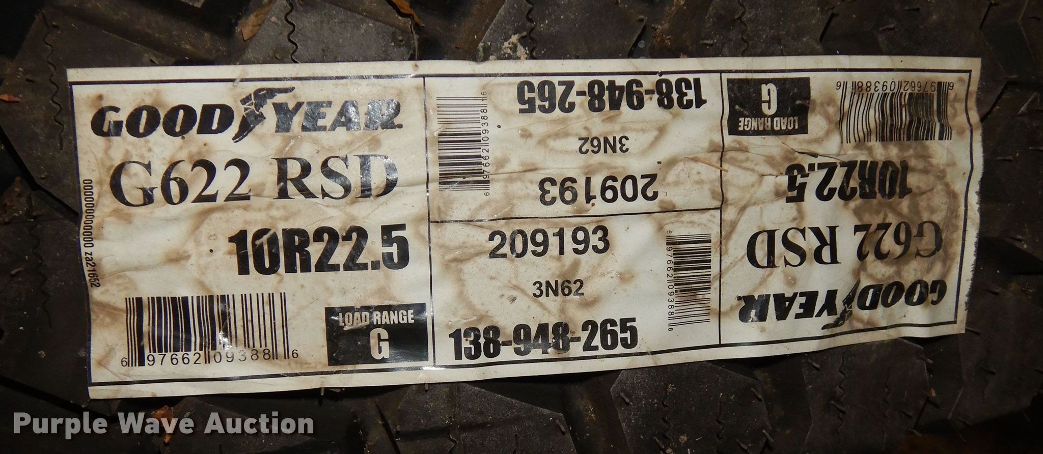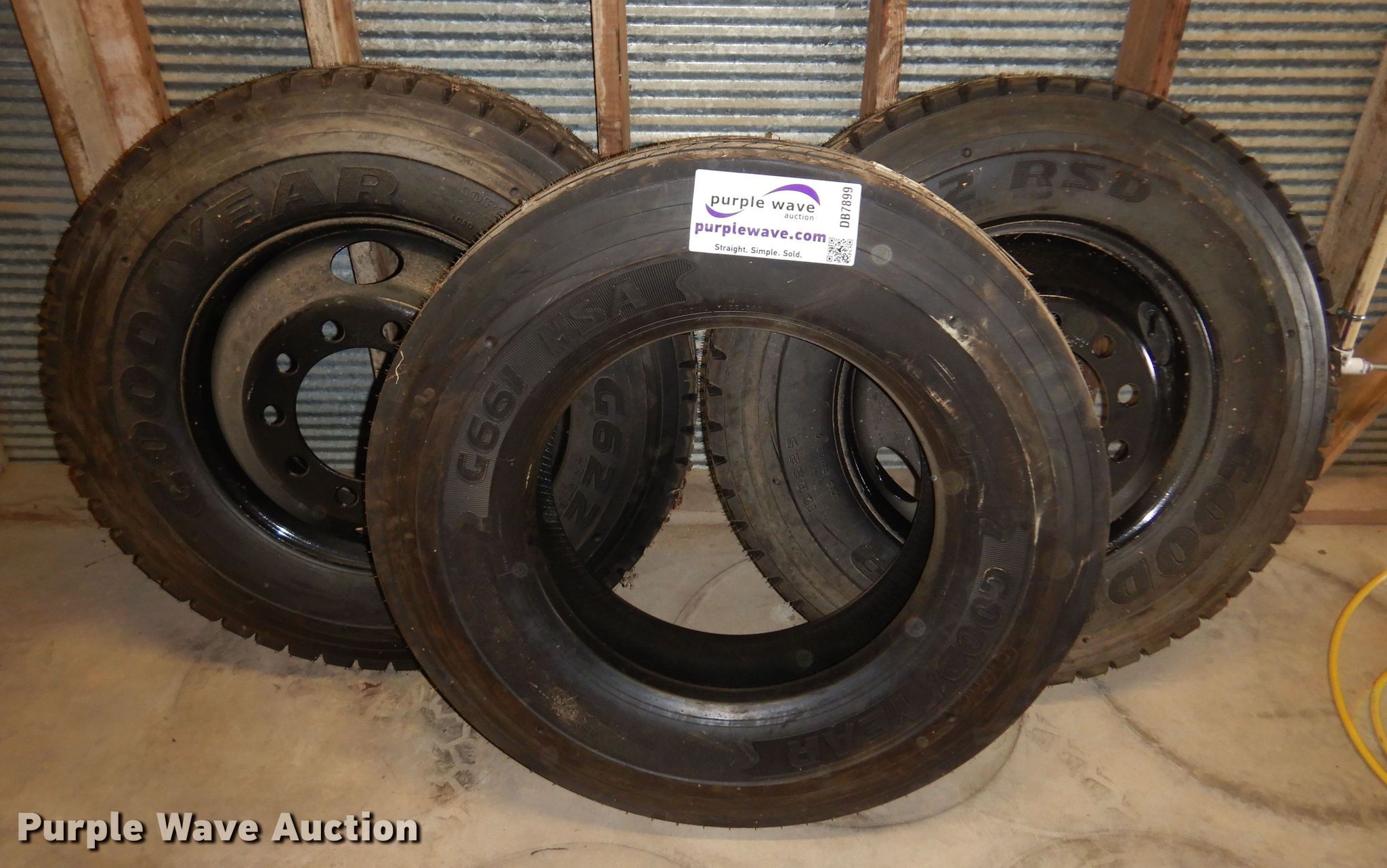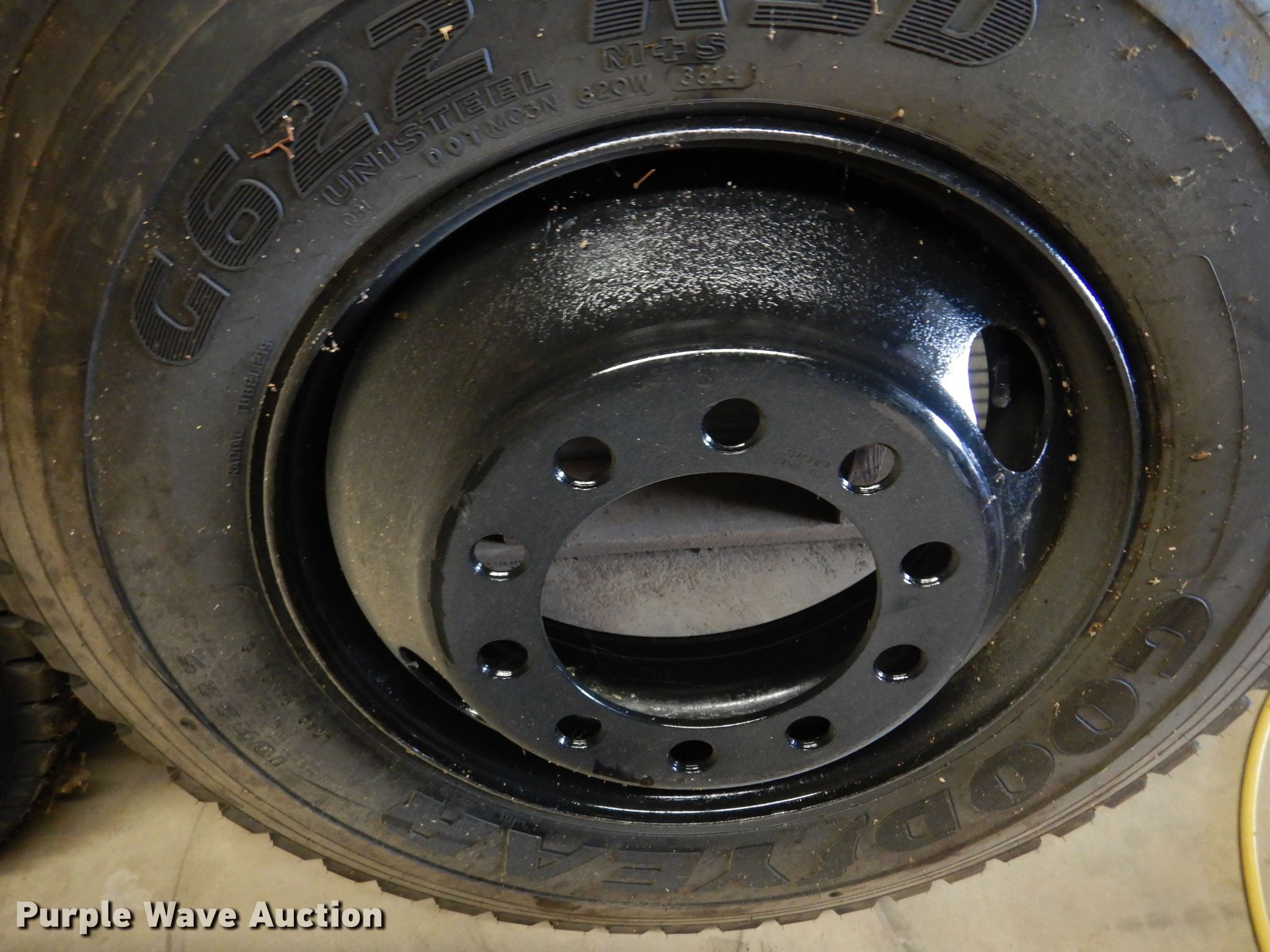 Purple Wave is selling a used Fleet Tires in Kansas. This item is a (3) Goodyear tires with the following: (2) Goodyear G622 10R22.5, Wheels, Goodyear G661 10R22.5