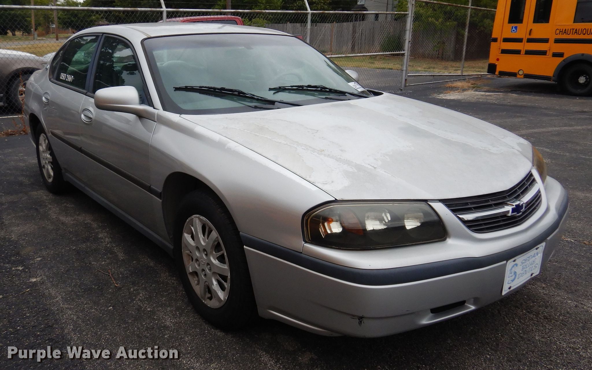 2004 Chevrolet Impala. Miles: 143,514 on odometer, VIN: 2G1WF52E349344487. Engine Displacement: 3.4L V6 OHV, Cylinders: 6, Fuel type: Gas. Transmission Automatic. Interior AC, Heat, Seat: Power driver, Power windows, Power locks. Tires Size: 225/60R16. Kansas title. USD 286 Chautaqua County Community Schools. 416 East Elm Street. Sedan, KS 67361