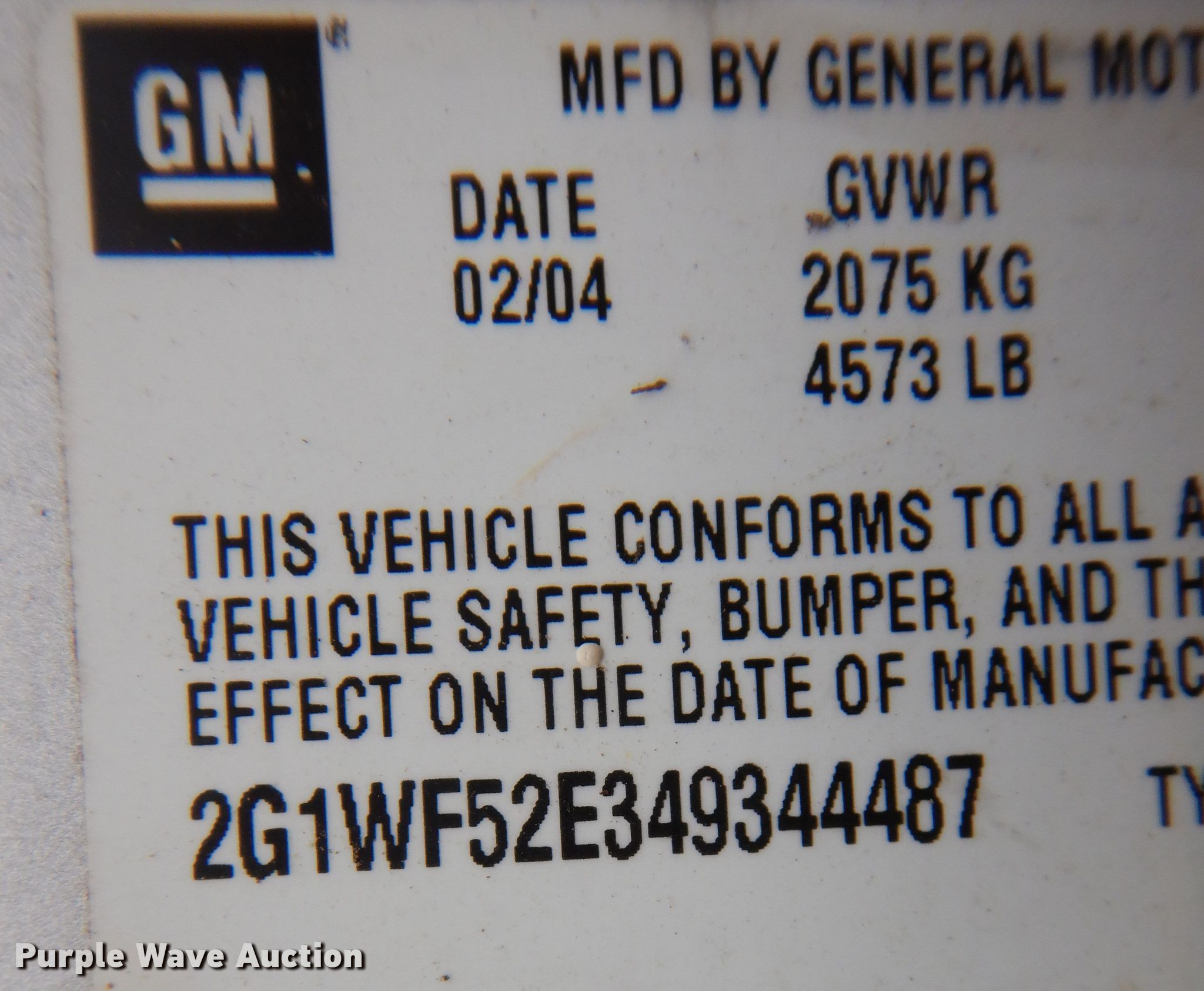 - VIN: 2G1WF52E349344487