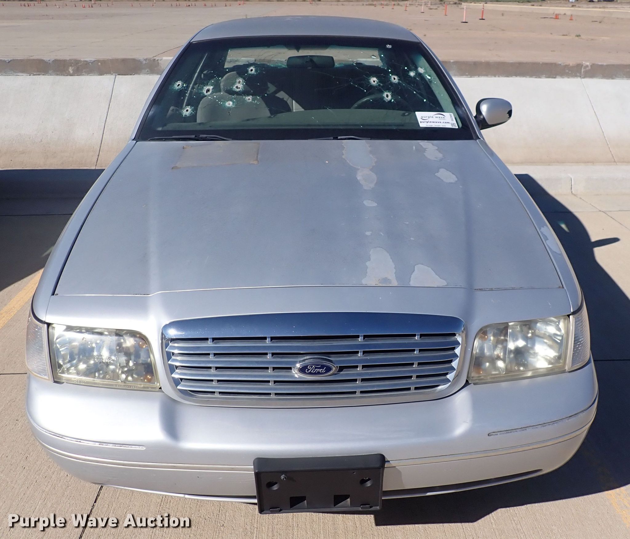 2001 Ford Crown Victoria Police Interceptor. Miles: 43,667 on odometer, VIN: 2FAFP71W91X169654. Engine Displacement: 4.6L V8 SOHC, Cylinders: 8, Fuel type: Gas. Transmission Automatic. Interior AC, Heat, Power windows, Power locks, Cruise control. Tires Size: 225/60R16. Notes Windshield chipped or cracked, Bullet holes, Non-operational unit. Kansas title. Seller is a government entity who will be assigning and distributing the title. Please contact the seller for distribution questions. Kansas Law Enforcement Training Center. 11009 S Hornet Rd. Hutchinson, KS 67501