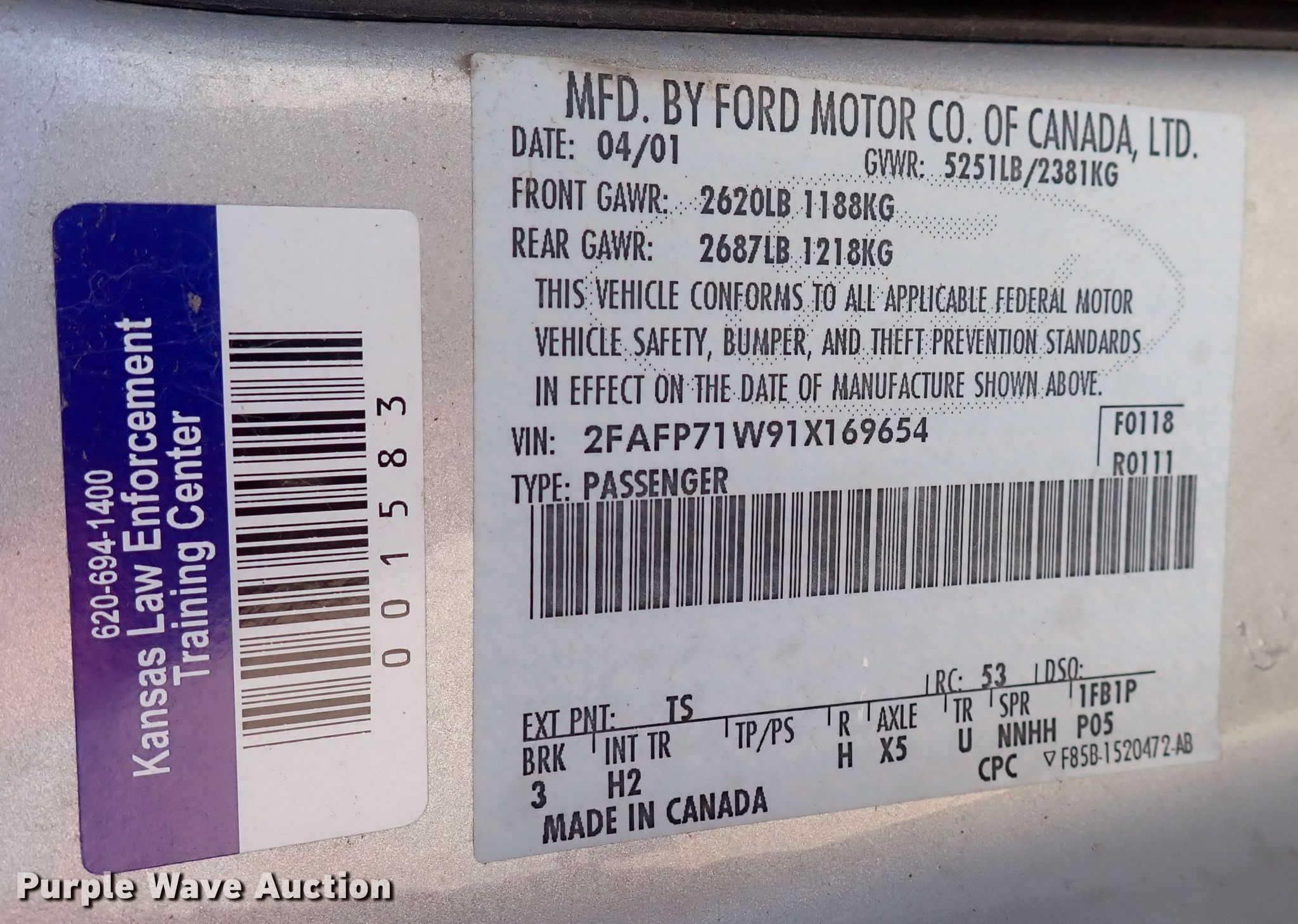 Purple Wave is selling a used Passenger Vehicle in Kansas. This item is a 2001 Ford Crown Victoria Police Interceptor with the following: Miles: 43,667 on odometer, VIN: 2FAFP71W91X169654