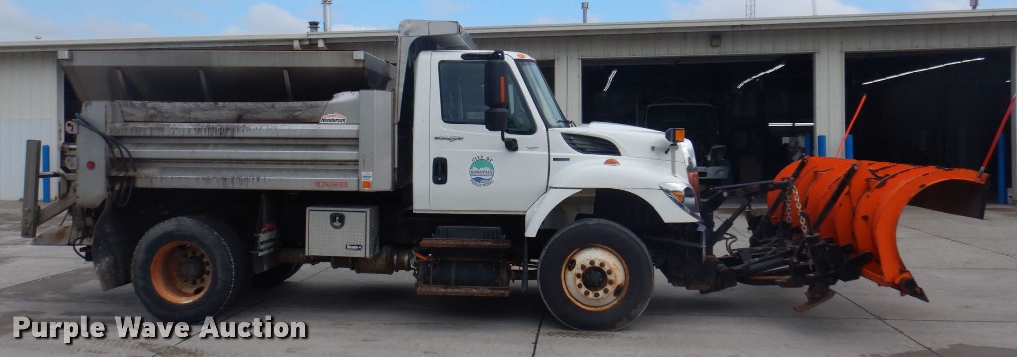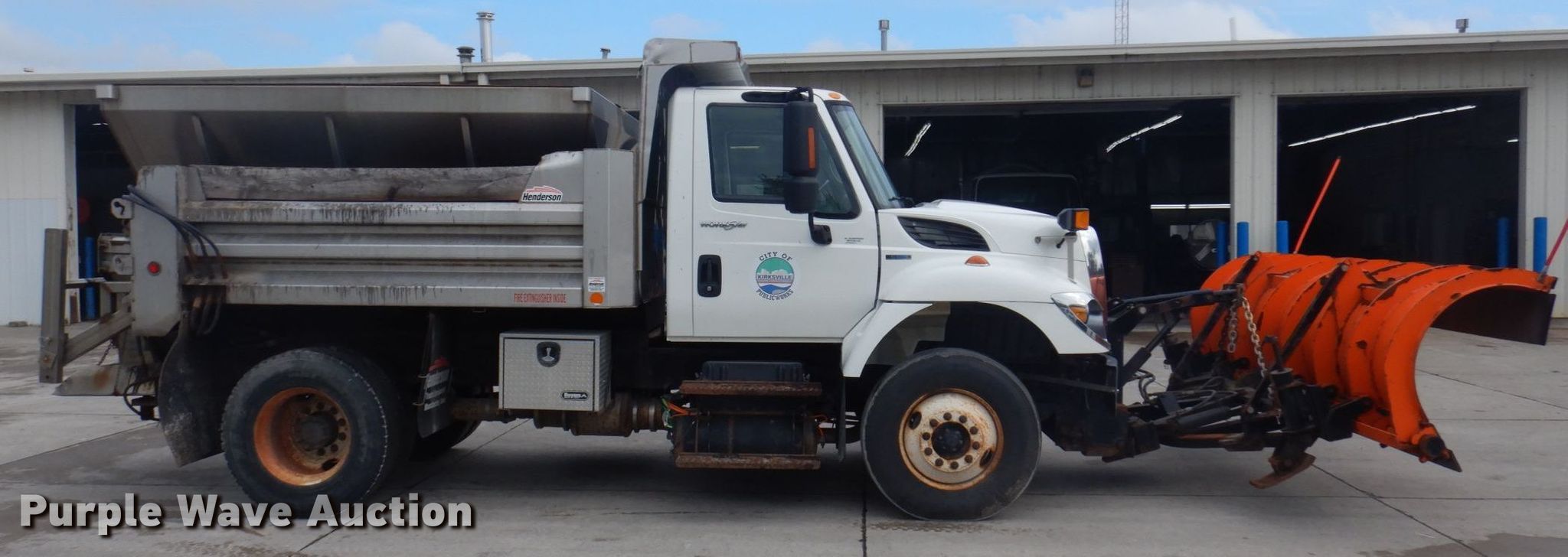 2011 International WorkStar 7400 dump truck. Miles: 57,420 on odometer, Hours: 6,785 on meter, VIN: 1HTWCAZR0BJ345117. Engine International MaxxForce 10, Serial: 570HM2U3105383, Displacement: 9.3L, Cylinders: 6, Fuel type: Diesel, HP: 310. Transmission Automatic. Chassis Axles: Single, Suspension: Spring, Brakes: Air, PTO, GVWR: 33,350 lbs FAWR: 12,350 lbs, RAWR: 21,000 lbs. Interior AC, Heat, Heated mirrors, Cruise control, Brake controller. Features Dump bed Henderson 10x24xUBxMK2x304SS, 10' x 8' W, Side height: 24", Side board height: 8", Bed type: Aluminum, Ram: Single , End gate: Air operated, Spreader Flink, Plow Henderson 11x36.IS.WIADJTE. Tires Size: 11R22.5. Missouri title. Seller is a government entity who will be assigning and distributing the title. Please contact the seller for distribution questions. City of Kirksville. 2001 N Osteopathy. Kirksville, MO 63501