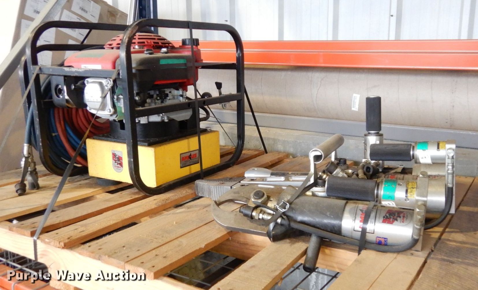 Purple Wave is selling a used Tools in Kansas. This item is a Amkus AMK-30CX extraction equipment with the following: Serial: 02071264, Hydraulic pump, Honda 5.5 HP gas engine, Ram, Spreader/cutter
