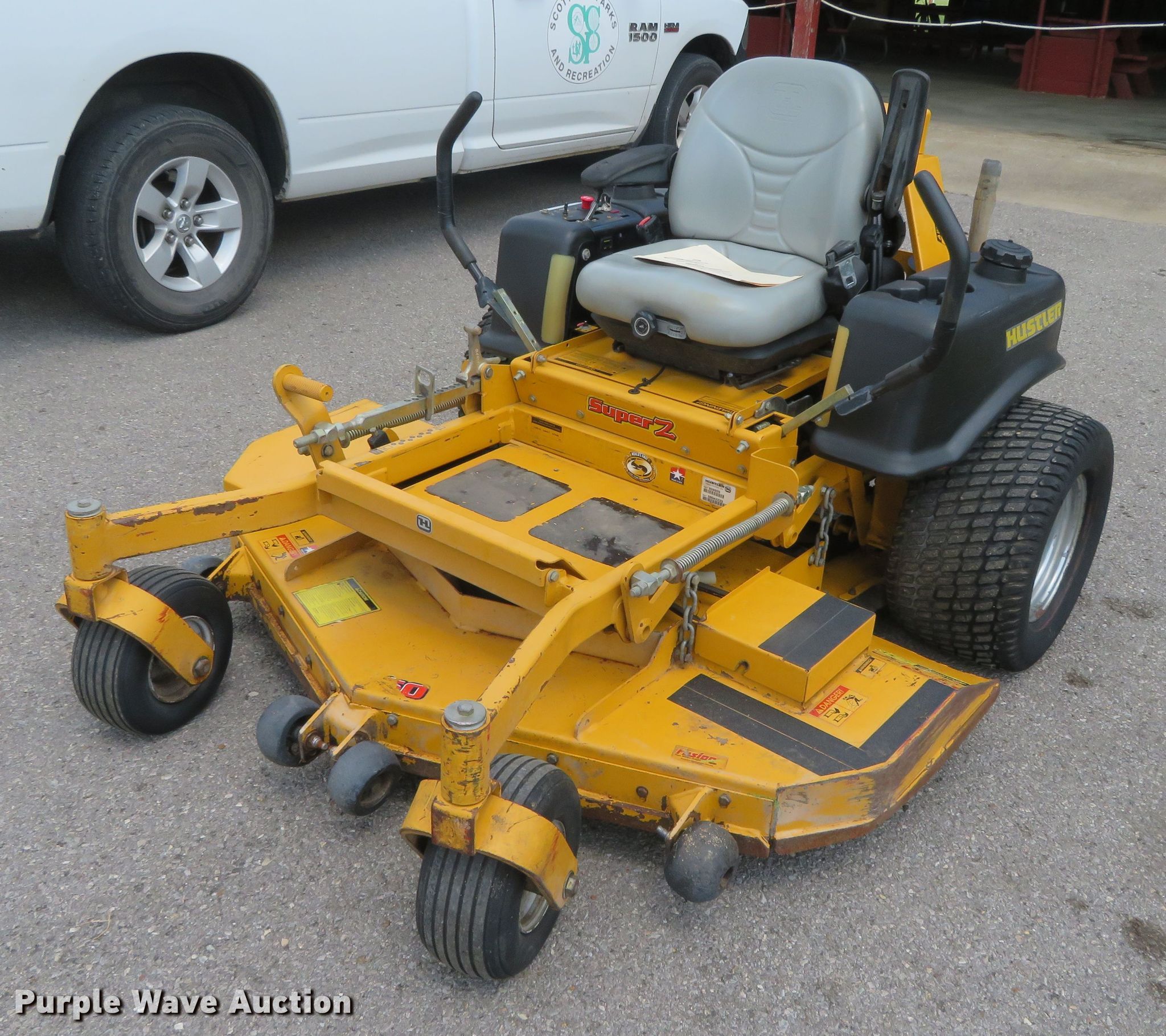 Purple Wave is selling a used Lawn Mower in Missouri. This item is a Hustler 928929 ZTR lawn mower with the following: Hours: 2,055 on meter, Cutting width: 60", Serial: 08042233