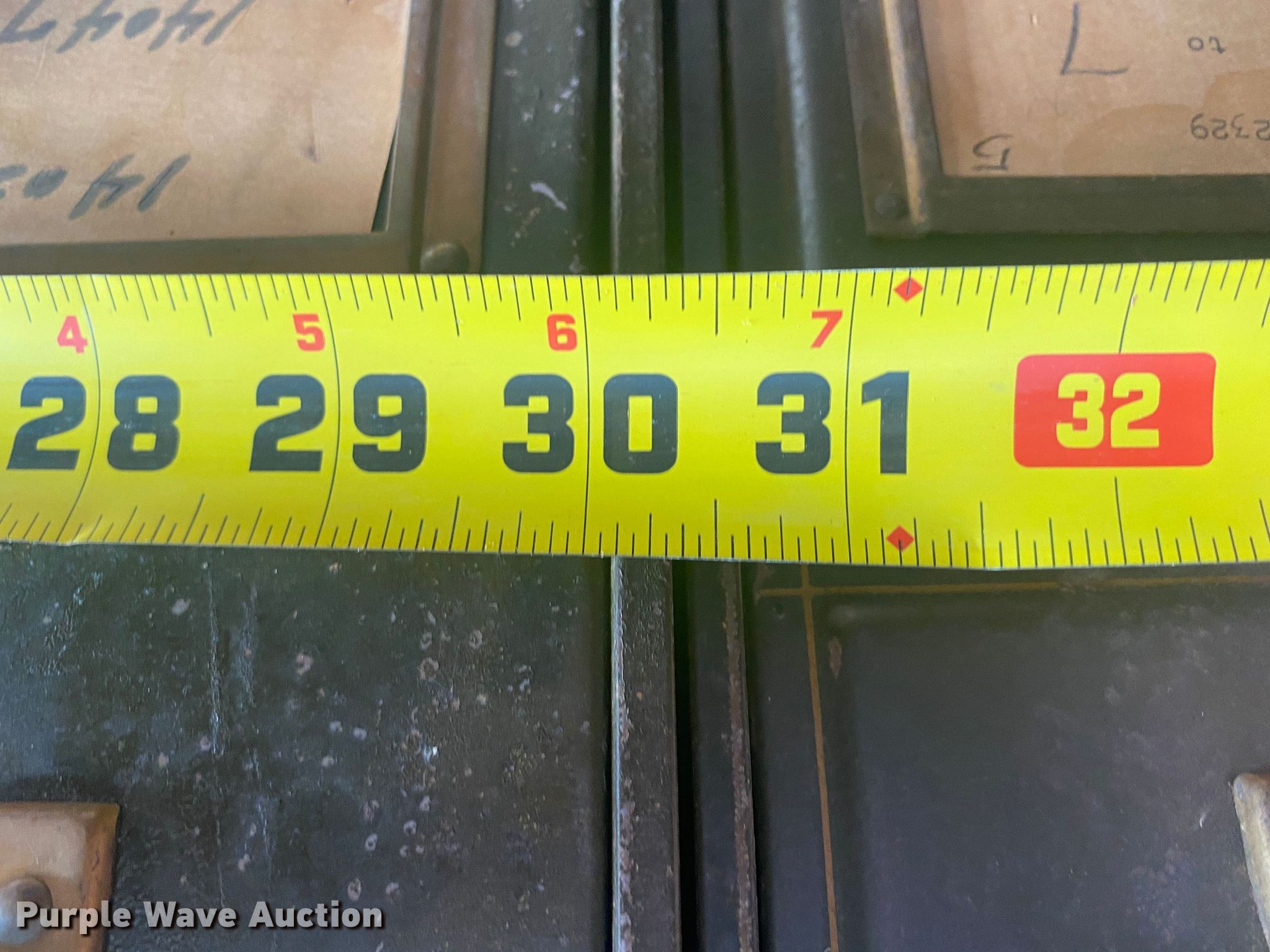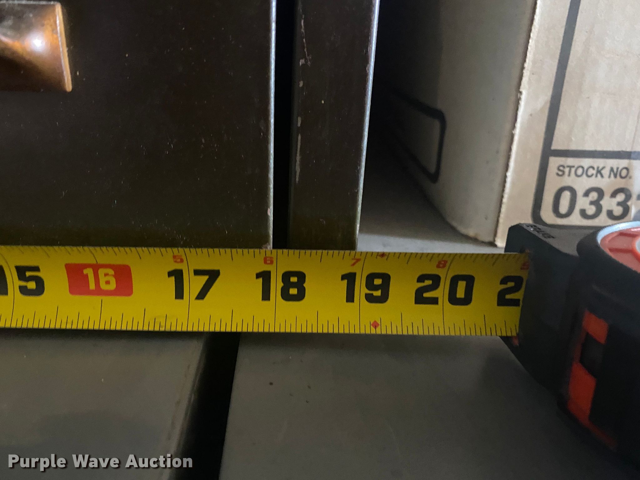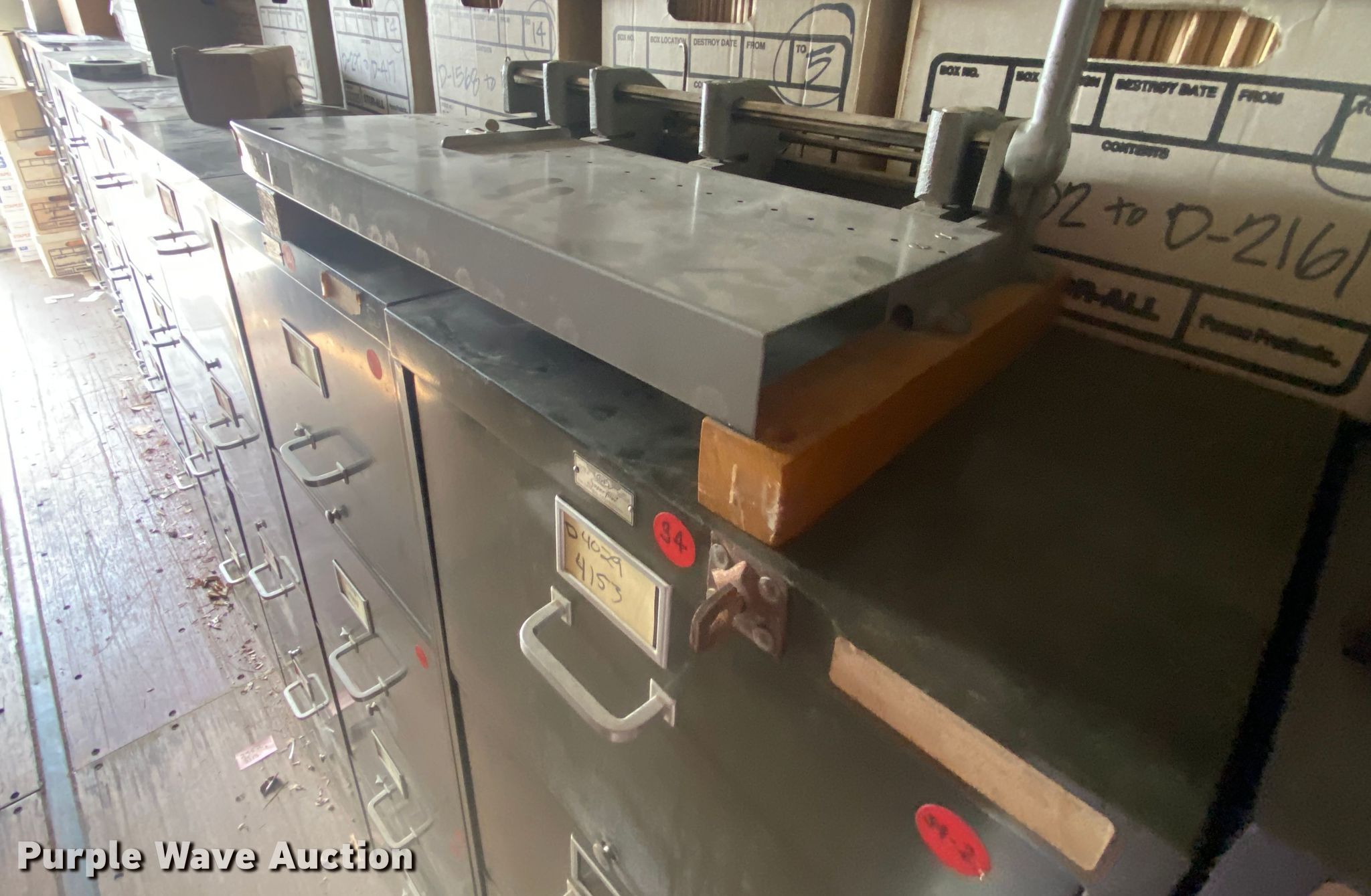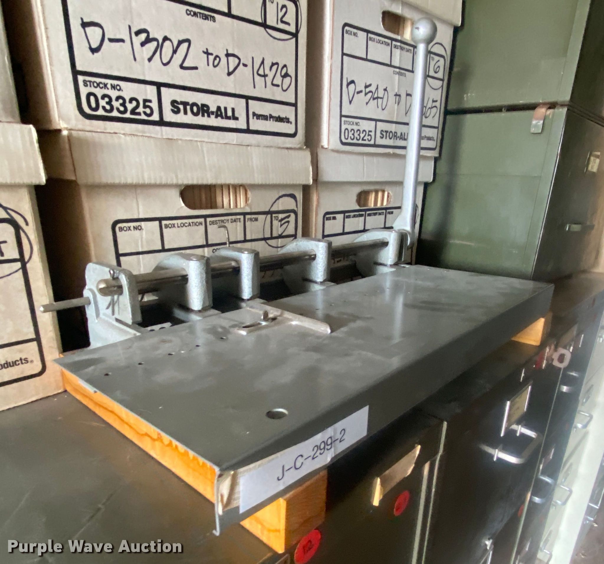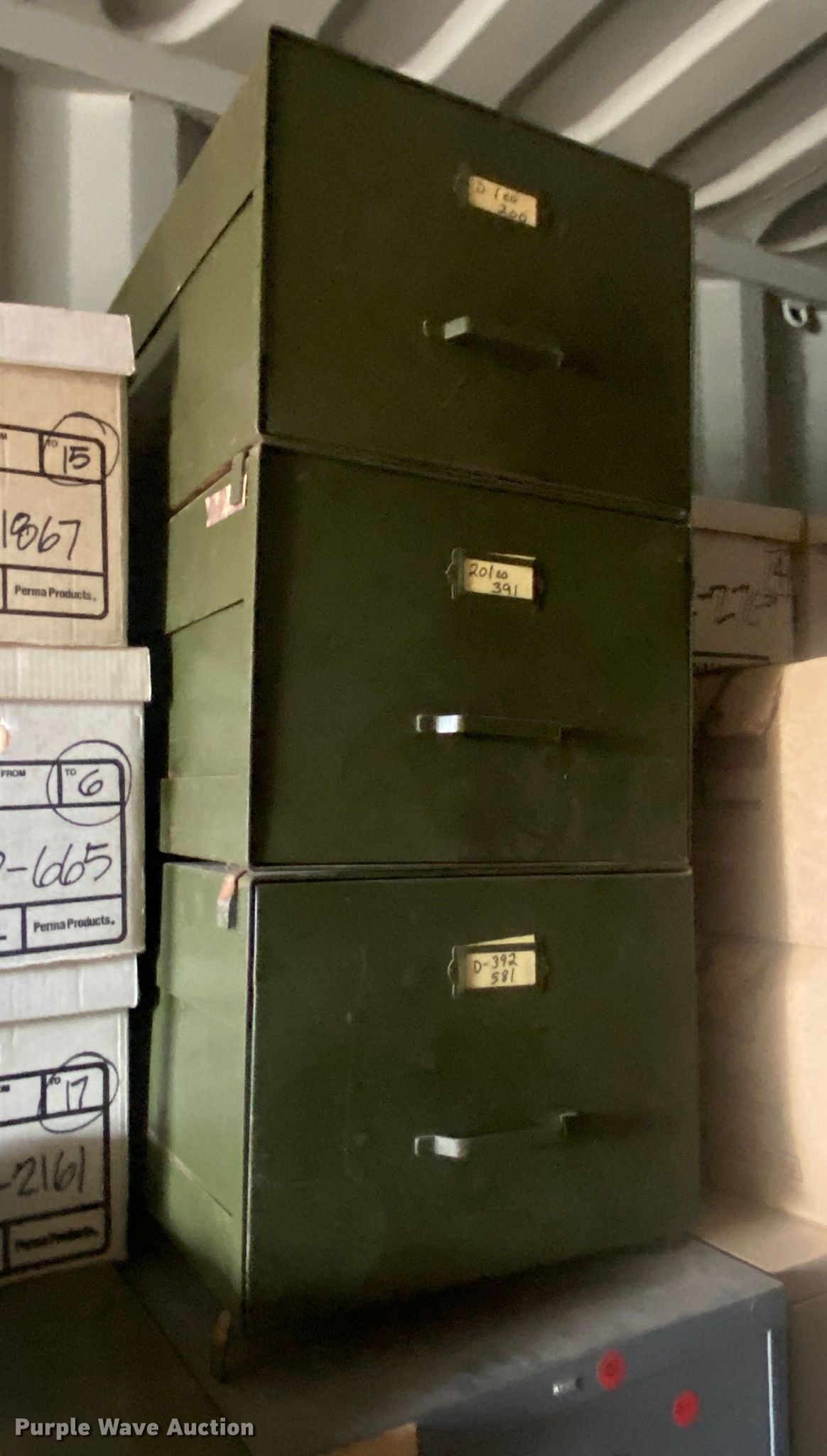 Purple Wave is selling a used Office Supplies and Equip. in Oklahoma. This item is a (8) file cabinets with the following: (3) 30"W x 6'H, (2) 18"W x 16"H, Three drawer file cabinets, Hole punch
