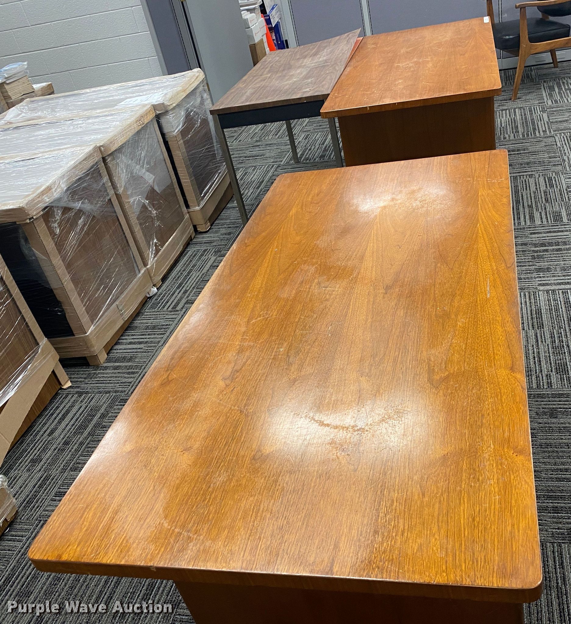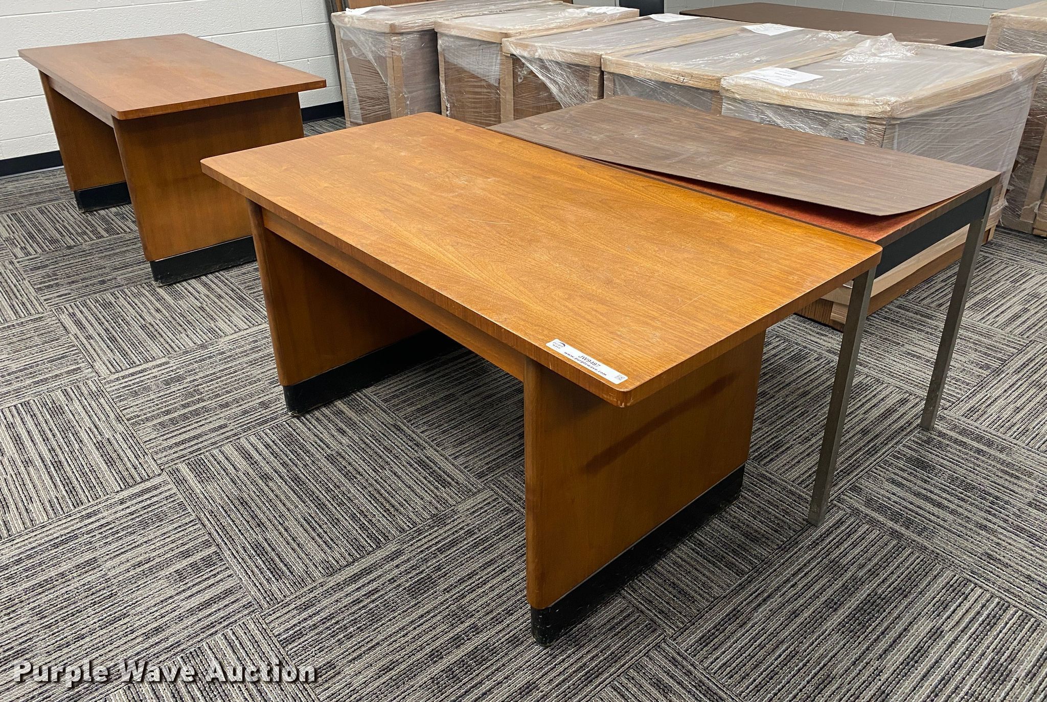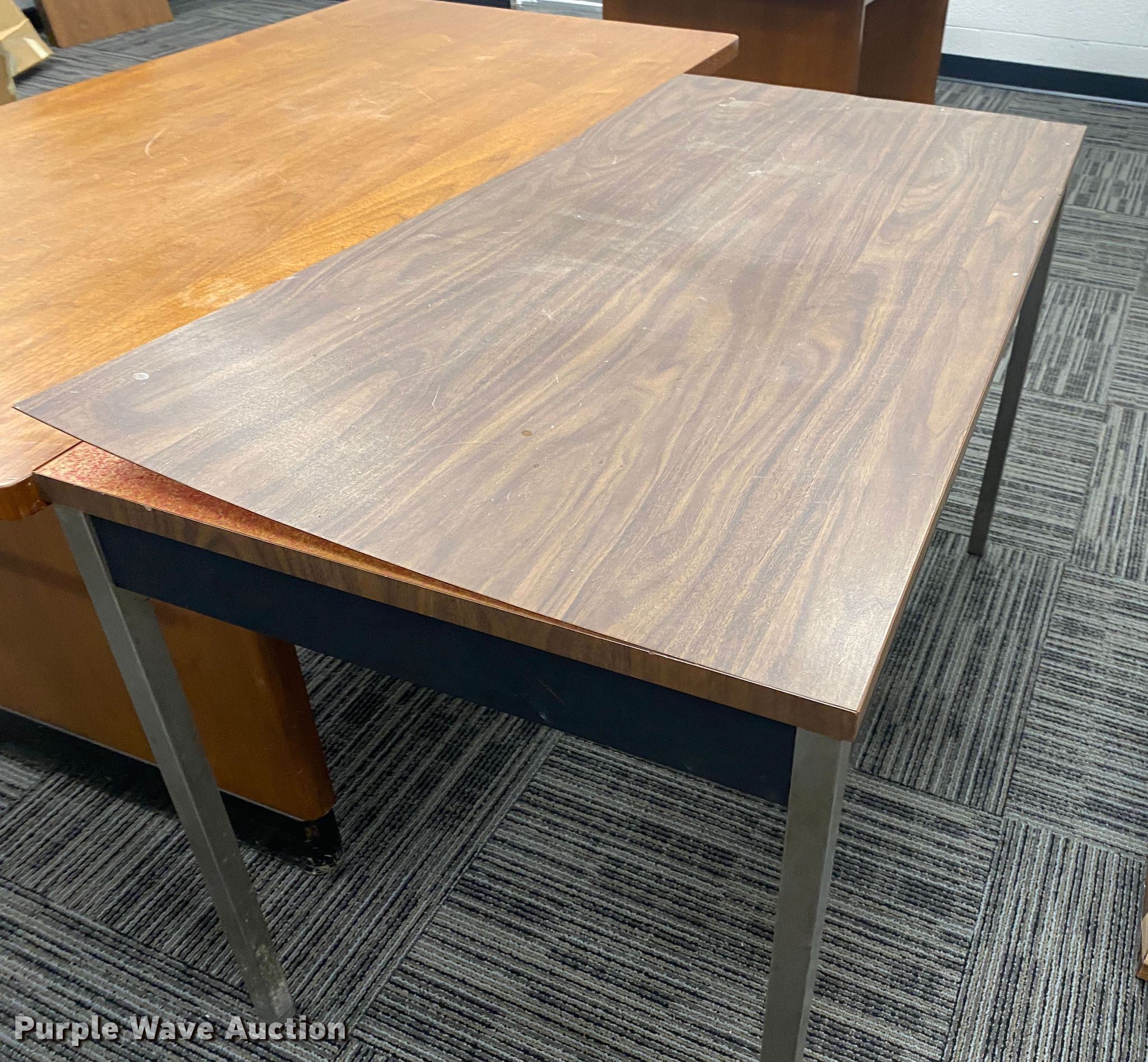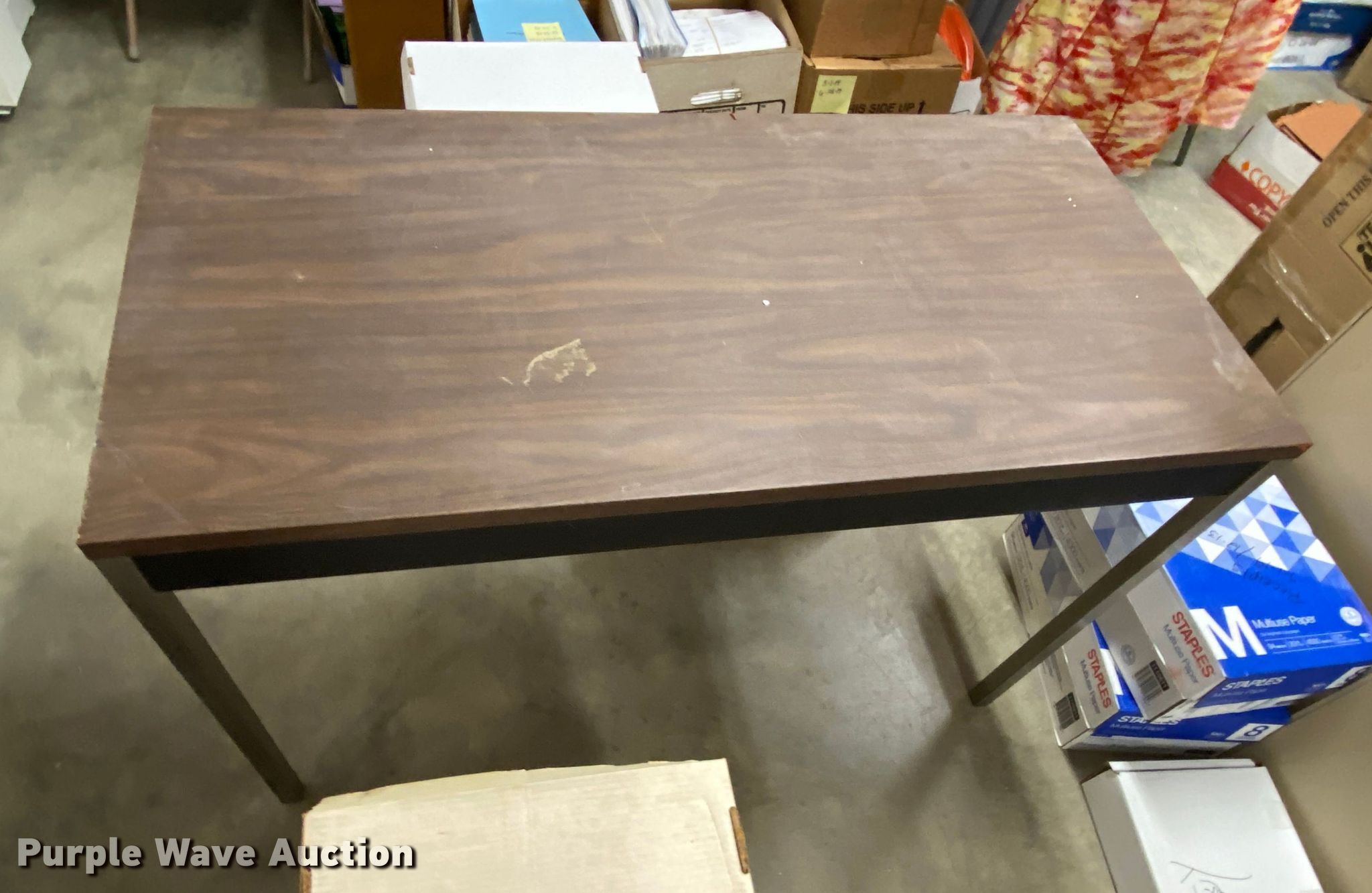 Purple Wave is selling a used Furniture in Oklahoma. This item is a Furniture with the following: (2) tables, 4' x 2', (2) desks, 5' x 30" x 28", Printer stand, 22" x 20" x 30"