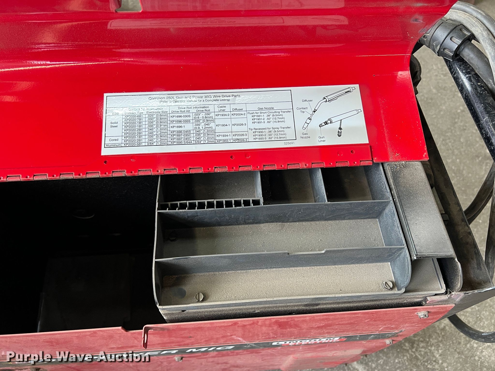 Purple Wave is selling a used Welder (Manual) in Texas. This item is a Lincoln Power MIG 255C welder with the following: Hours: Unknown, Serial: U1080401490