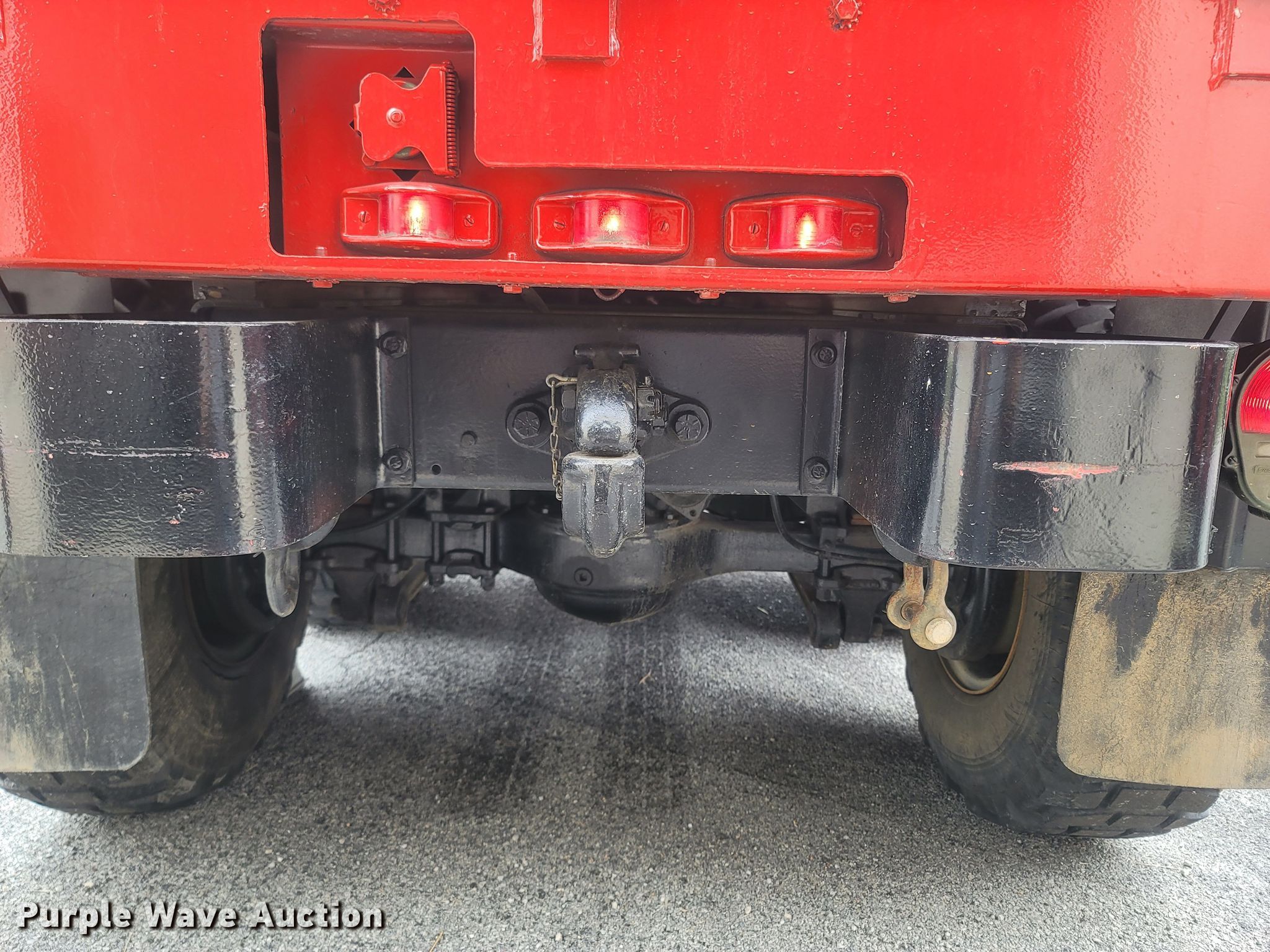 1999 Am General M35 brush fire truck. Miles: 8,889 on odometer, Hours: 760 on meter, VIN: 504885. Engine Caterpillar, Cylinders: 6, Fuel type: Diesel. Transmission Automatic. Chassis Four wheel drive, Axles: Tandem, Differential lock: Full, Suspension: Spring, Brakes: Air over hydraulic. Interior Heat. Features Bed / tank 12' 3" L x 93" W, Brush fire skid unit Beta Systems, Capacity: 500 gallons, Hose reel, Top fill, Sight tube, Rear drain: 3", Rear outlet: 3". Tires Size: 14.5R20. Arkansas title. Holiday Island Surburban Improvement District. Holiday Island, AR 72631