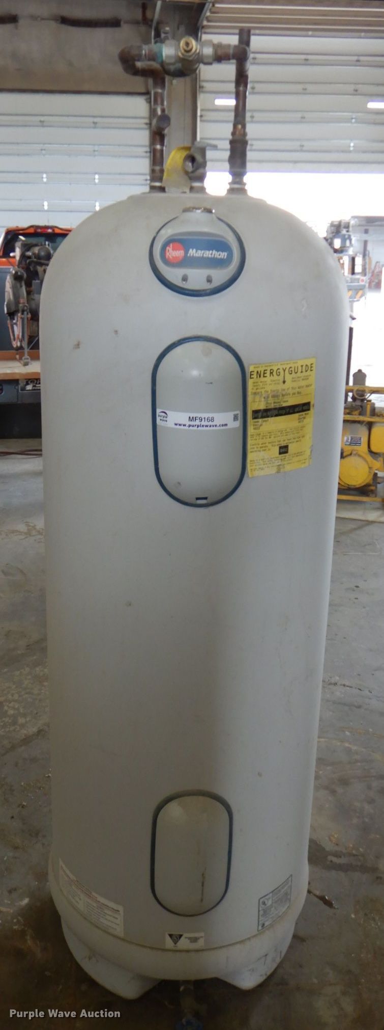 Purple Wave is selling a used Appliances in Iowa. This item is a Rheem Marathon electric hot water heater with the following: 50 gallon capacity, Unknown operating condition, Serial: 1005W56256