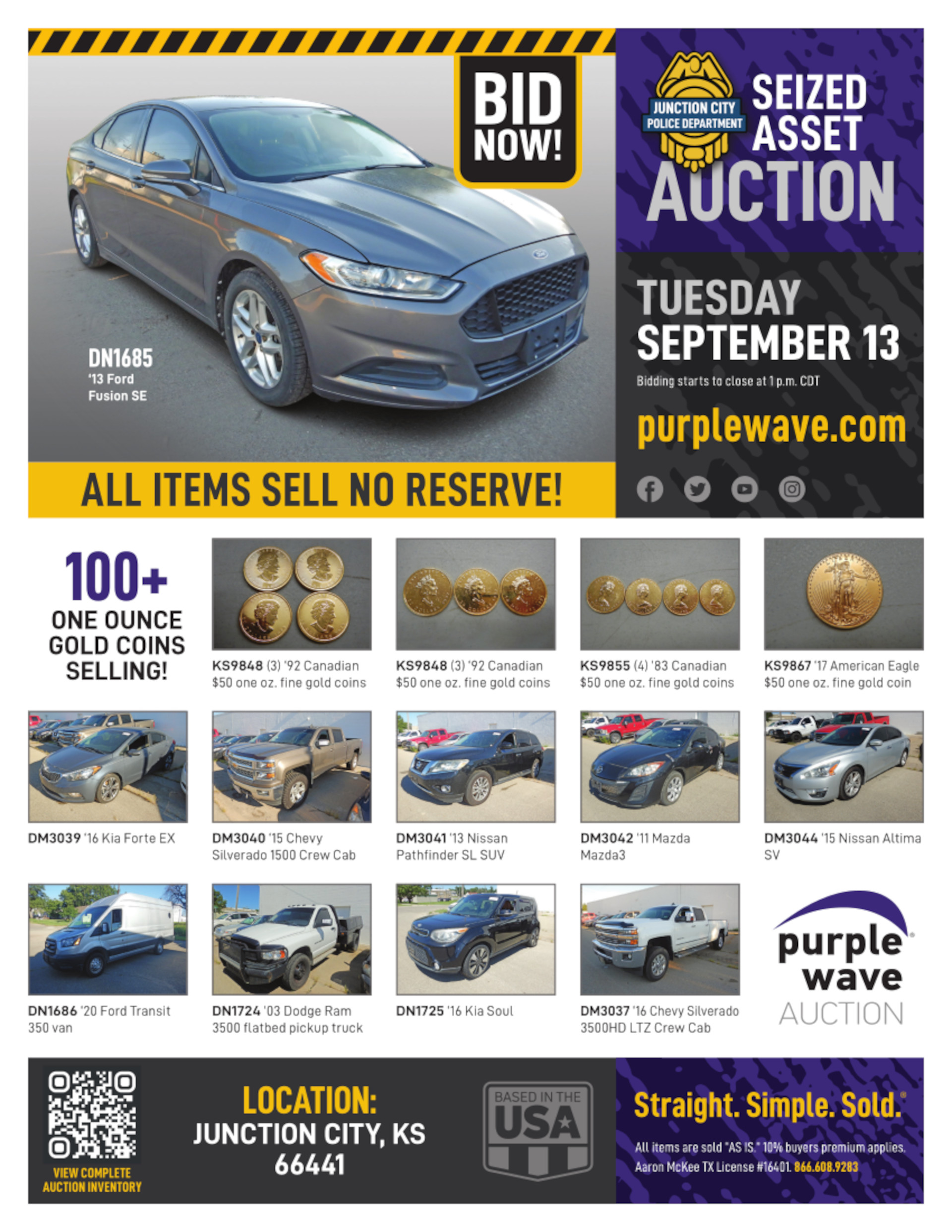 SOLD! September 13 Junction City Police Department Seized Asset Auction