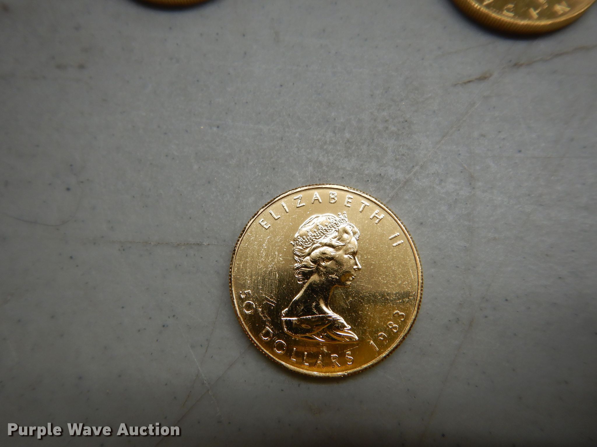 Purple Wave is selling a used All Other Household Items in Kansas. This item is a (4) 1983 Canadian $50 one ounce fine gold coins with the following: (4) 1983 Canadian $50 one ounce fine gold coins. Unable to authenticate. Purple Wave reserves the right to obtain additional buyer information prior to item removal.. Junction City, KS 66441