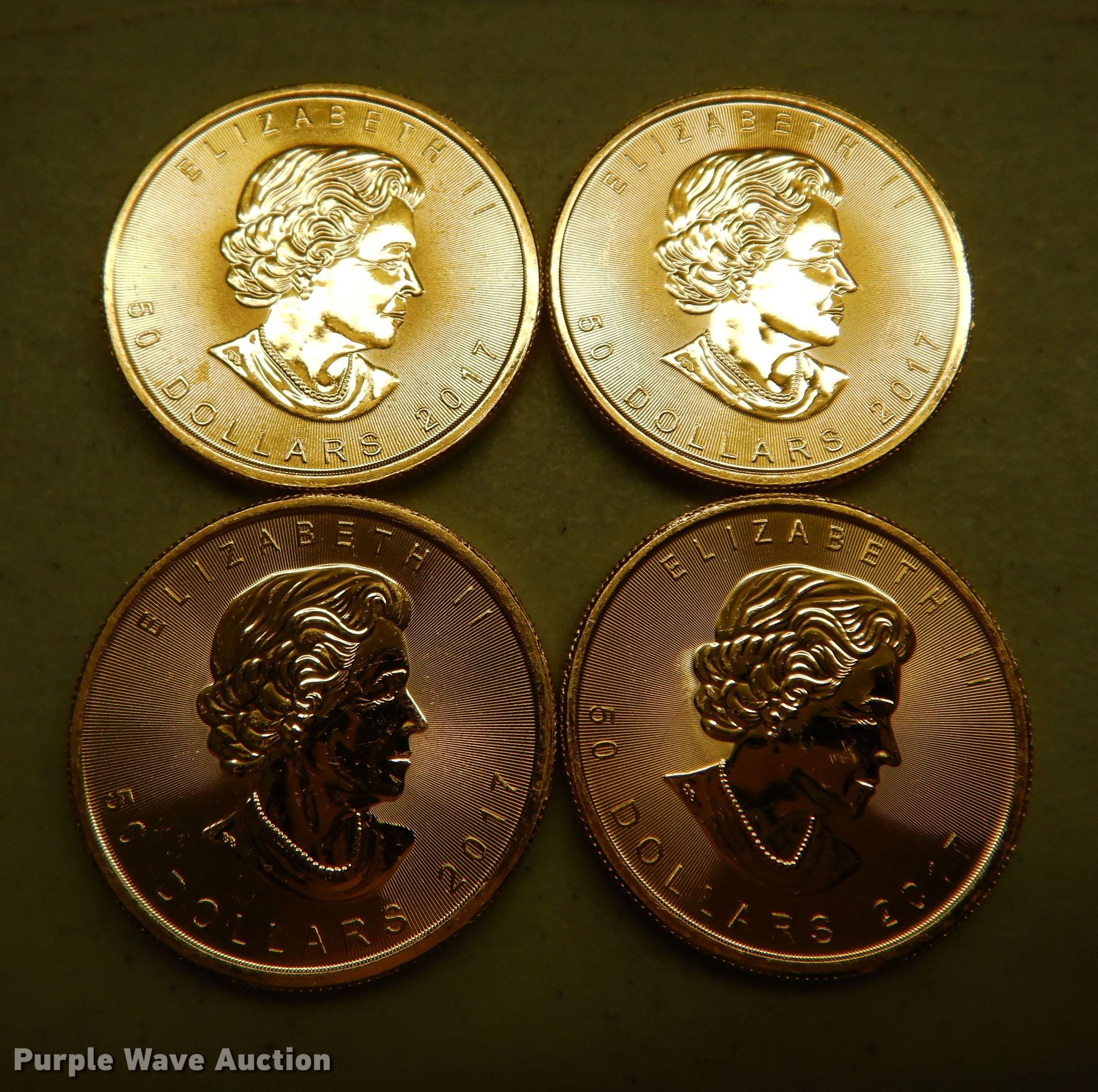 Purple Wave is selling a used All Other Household Items in Kansas. This item is a (4) 2017 Canadian $50 one ounce fine gold coins with the following: (4) 2017 Canadian $50 one ounce fine gold coins. Unable to authenticate. Purple Wave reserves the right to obtain additional buyer information prior to item removal.. Junction City, KS 66441