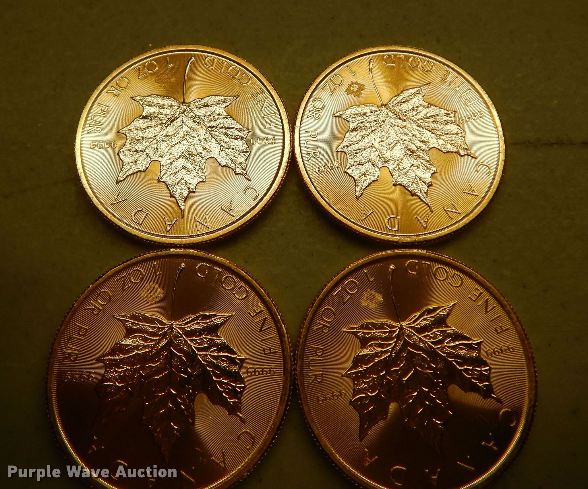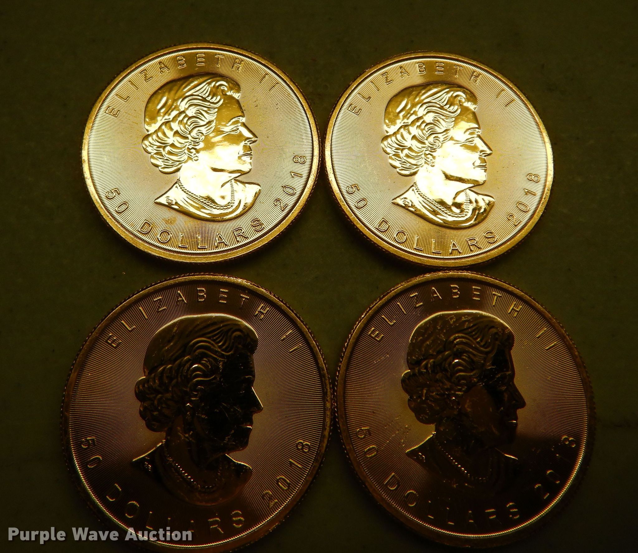 Purple Wave is selling a used All Other Household Items in Kansas. This item is a (4) 2018 Canadian $50 one ounce fine gold coins with the following: (4) 2018 Canadian $50 one ounce fine gold coins. Unable to authenticate. Purple Wave reserves the right to obtain additional buyer information prior to item removal.. Junction City, KS 66441