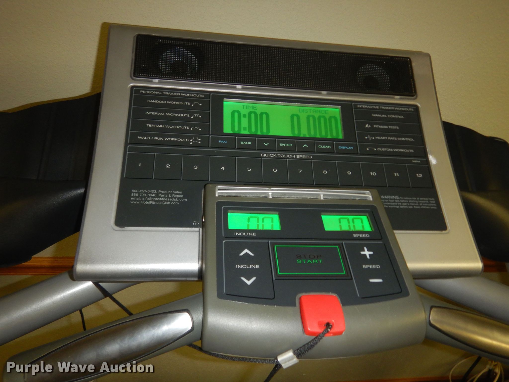 Purple Wave is selling a used Sporting Goods in Kansas. This item is a Hotel Fitness treadmill with the following: Quick touch speed control