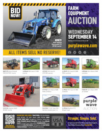 Payments must be made by 4 p.m. CDT on the second business day following the auction. Failure to make payment or payment arrangements by the deadline will result in a $30 late payment fee. Purple Wave reserves the right to charge the credit card on file the total purchase price and a $30 late payment fee will be added for invoices not paid within our terms. Payment should be made to Purple Wave, Inc. Questions regarding your invoice or to communicate payment arrangements please contact Purple Wave at 866.608.9283 or [email protected].
