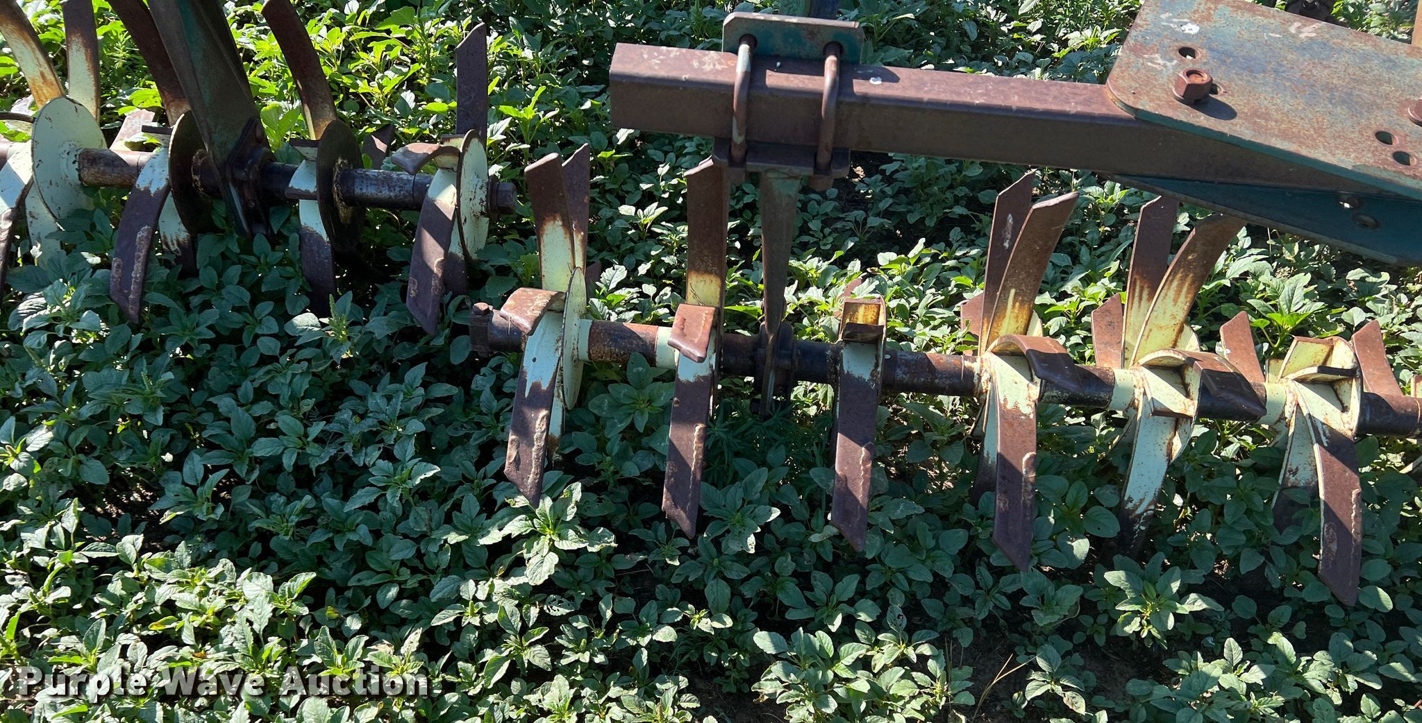 John Deere disk ripper. Overall width: 17', Serial: N00712X002701. Features Blade diameter Front: 20", Spacing: 9", Rippers: 13, Operation Hydraulic lift, Attachments Rolling pickers/ treader. Tires Tire size: 11L-15SL. Plains, KS 67869
