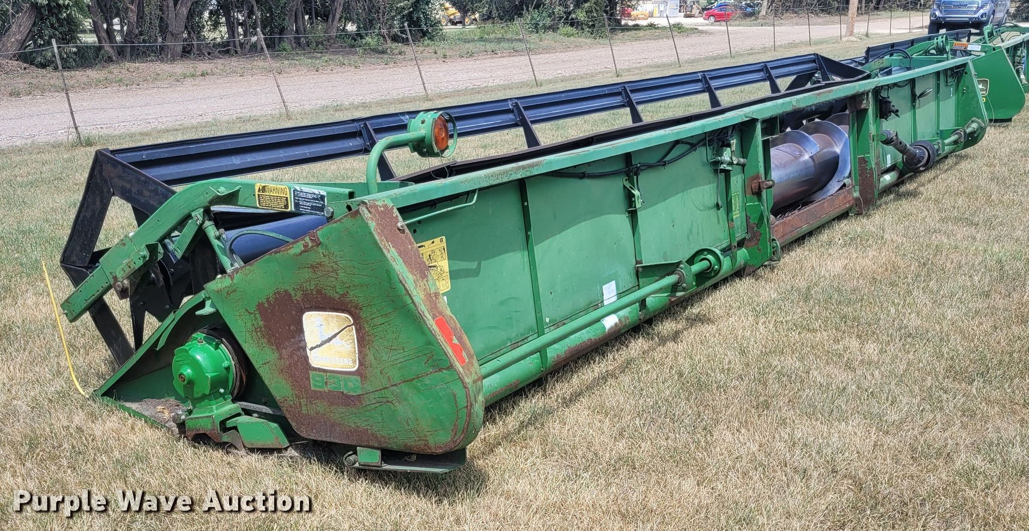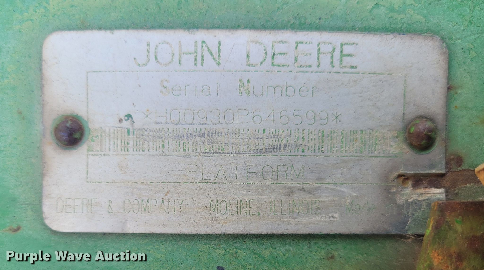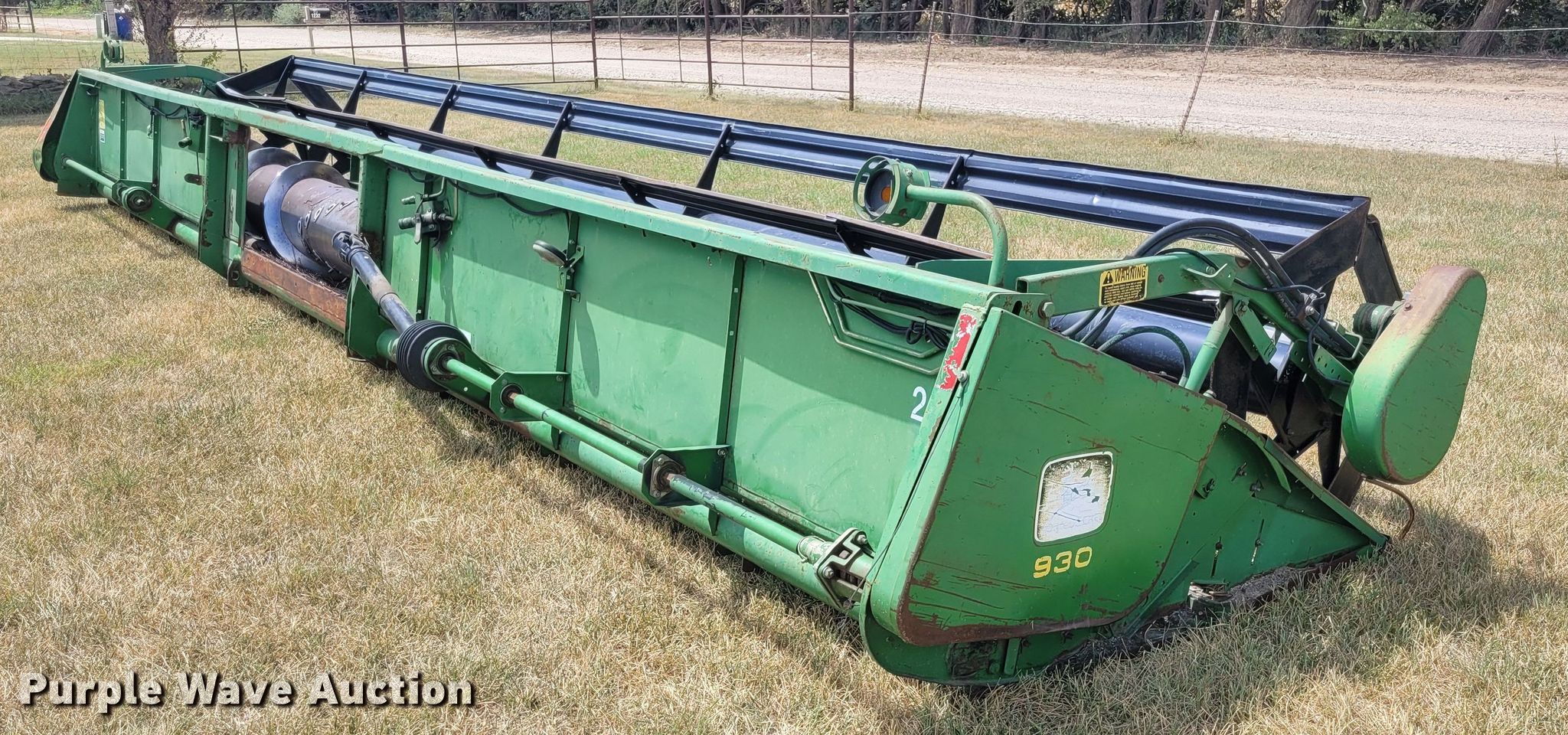 Purple Wave is selling a used Platform or Stripper Head in Kansas. This item is a John Deere 930 rigid head with the following: Serial: H00930P646599