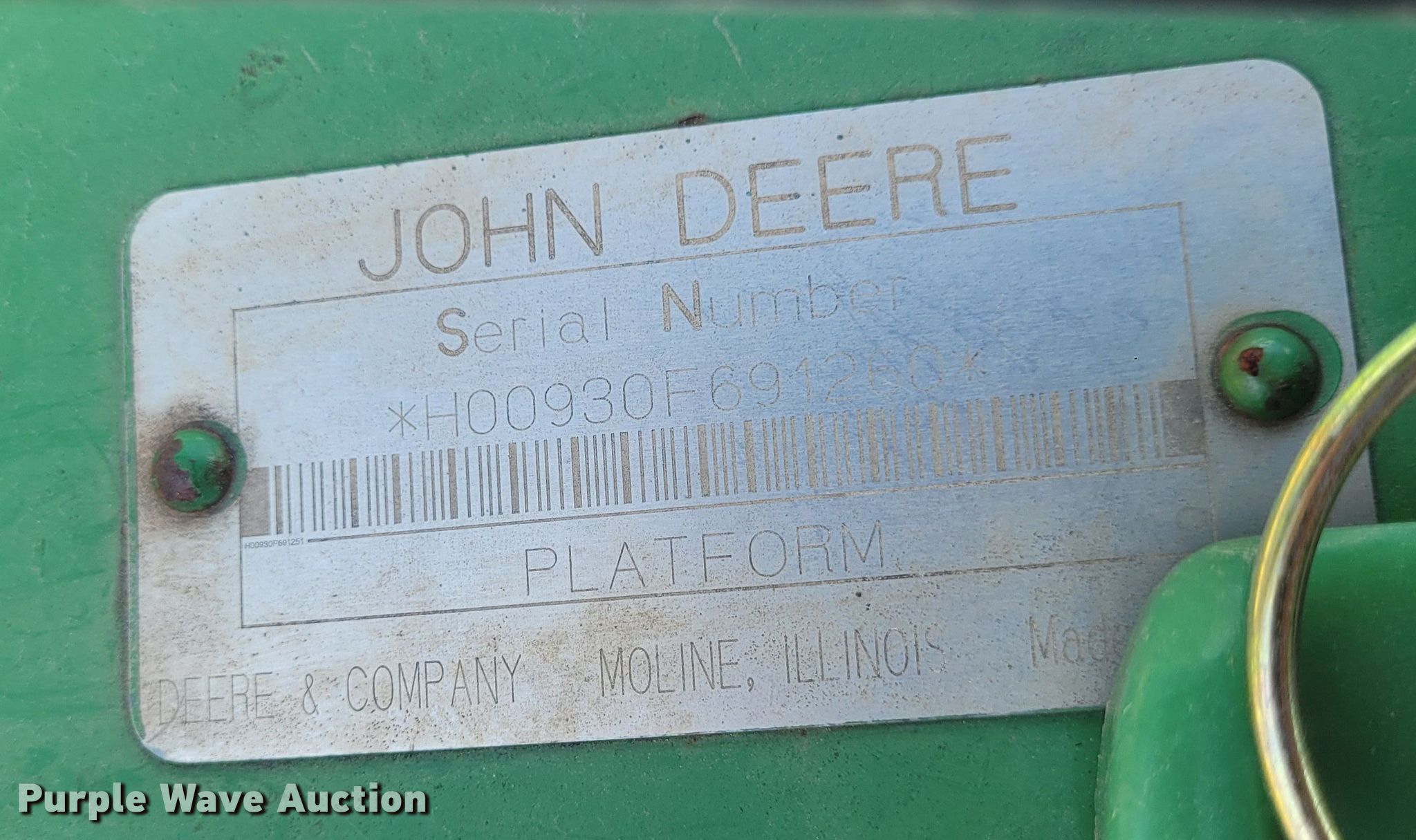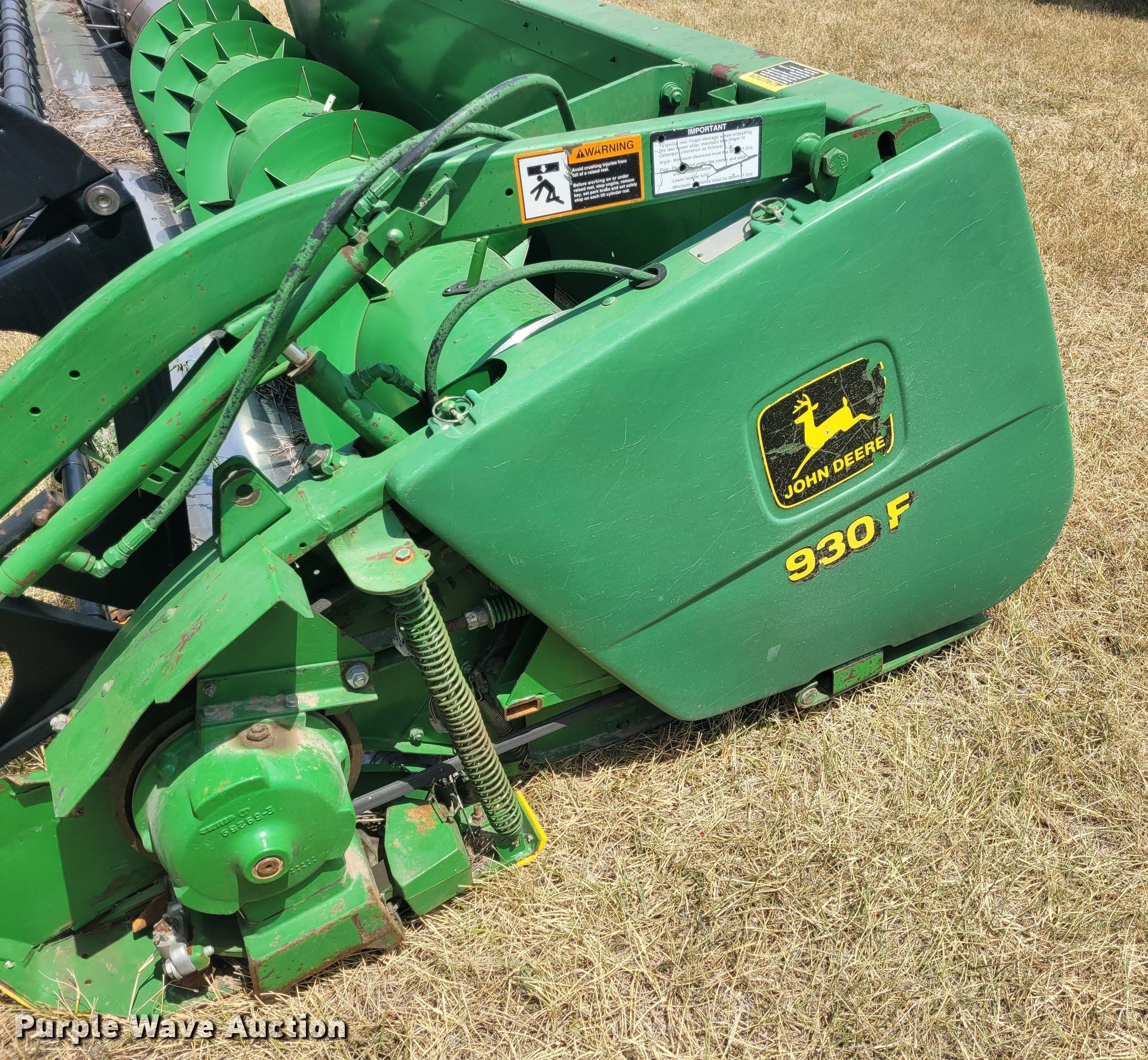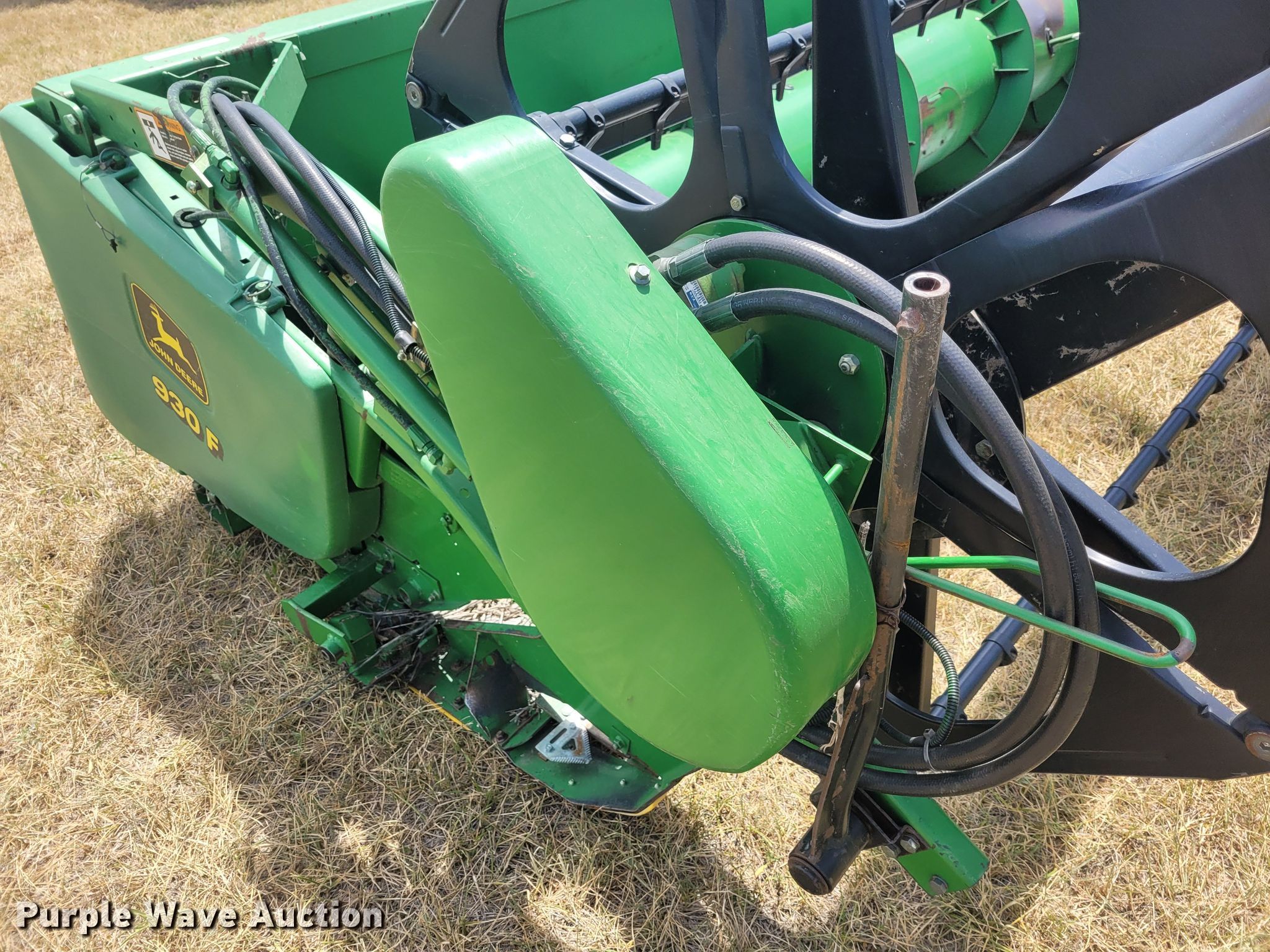 John Deere 930F flex head. Serial: H0093F691260. Features Drivelines: Dual, Width: 30', Reel: Finger Hydraulic fore/aft, Hydraulic reel height control. Stands Farms, LLC. 1199 Southeast Grant Road. El Dorado, KS 67042
