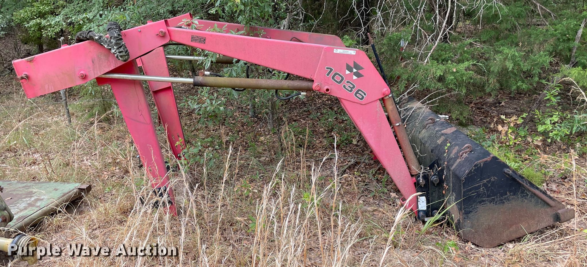 Purple Wave is selling a used Ag Tractor Loader or Attach. in Oklahoma. This item is a Massey Ferguson 1036 loader with the following: Serial: 001454