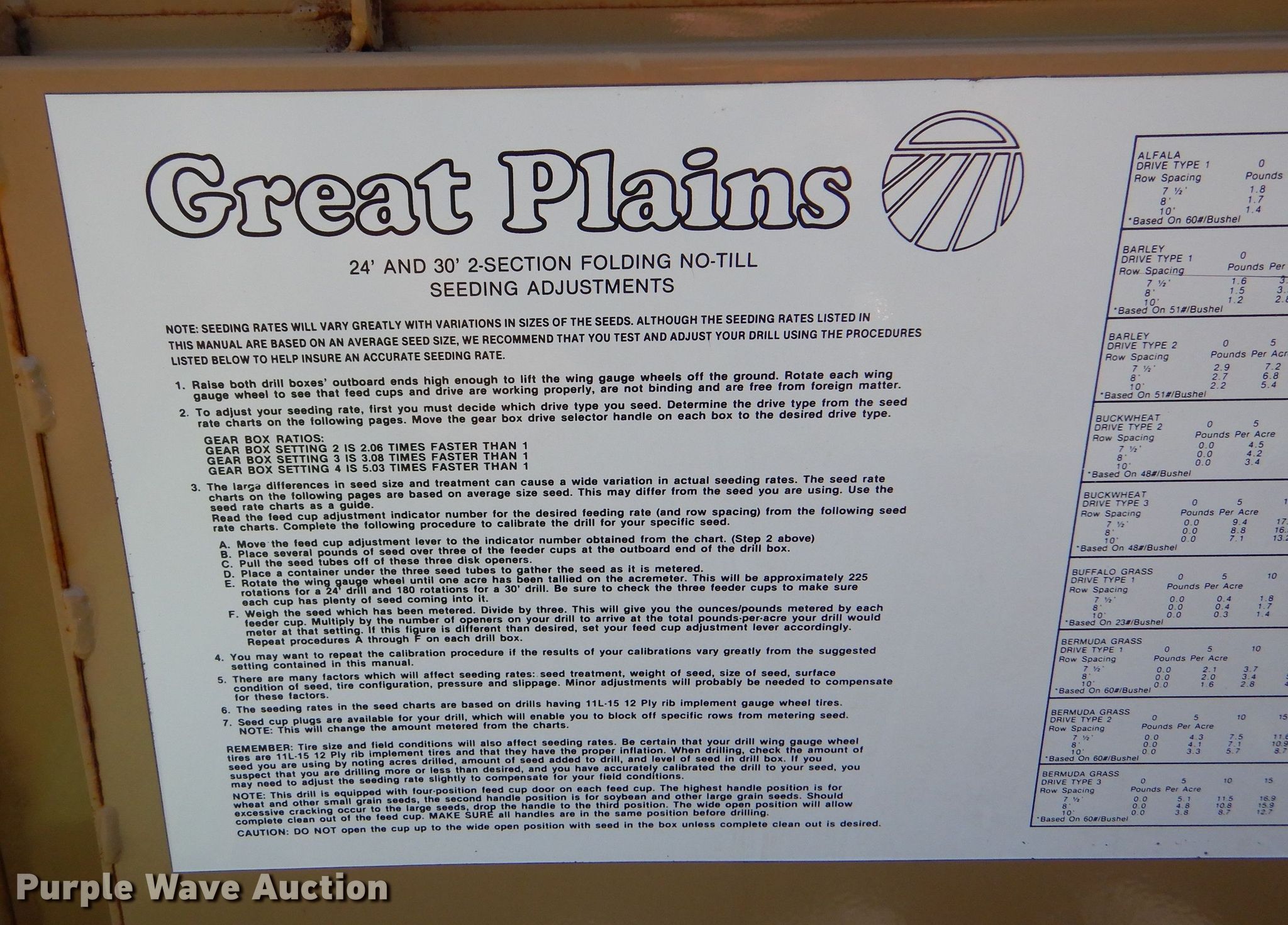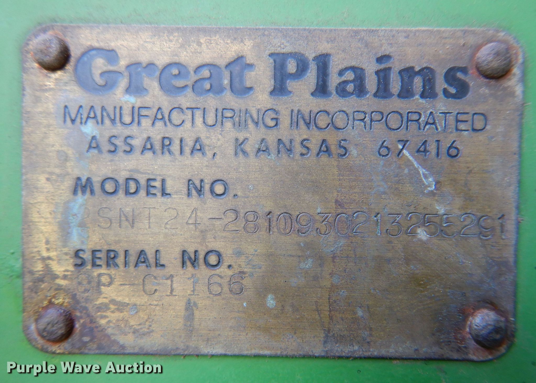 Purple Wave is selling a used Grain Drill or Seeder in Kansas. This item is a Great Plains Solid Stand 24 no-till grain drill with the following: Width: 24', Row units: 28, Row spacing: 10", Serial: P-C1166