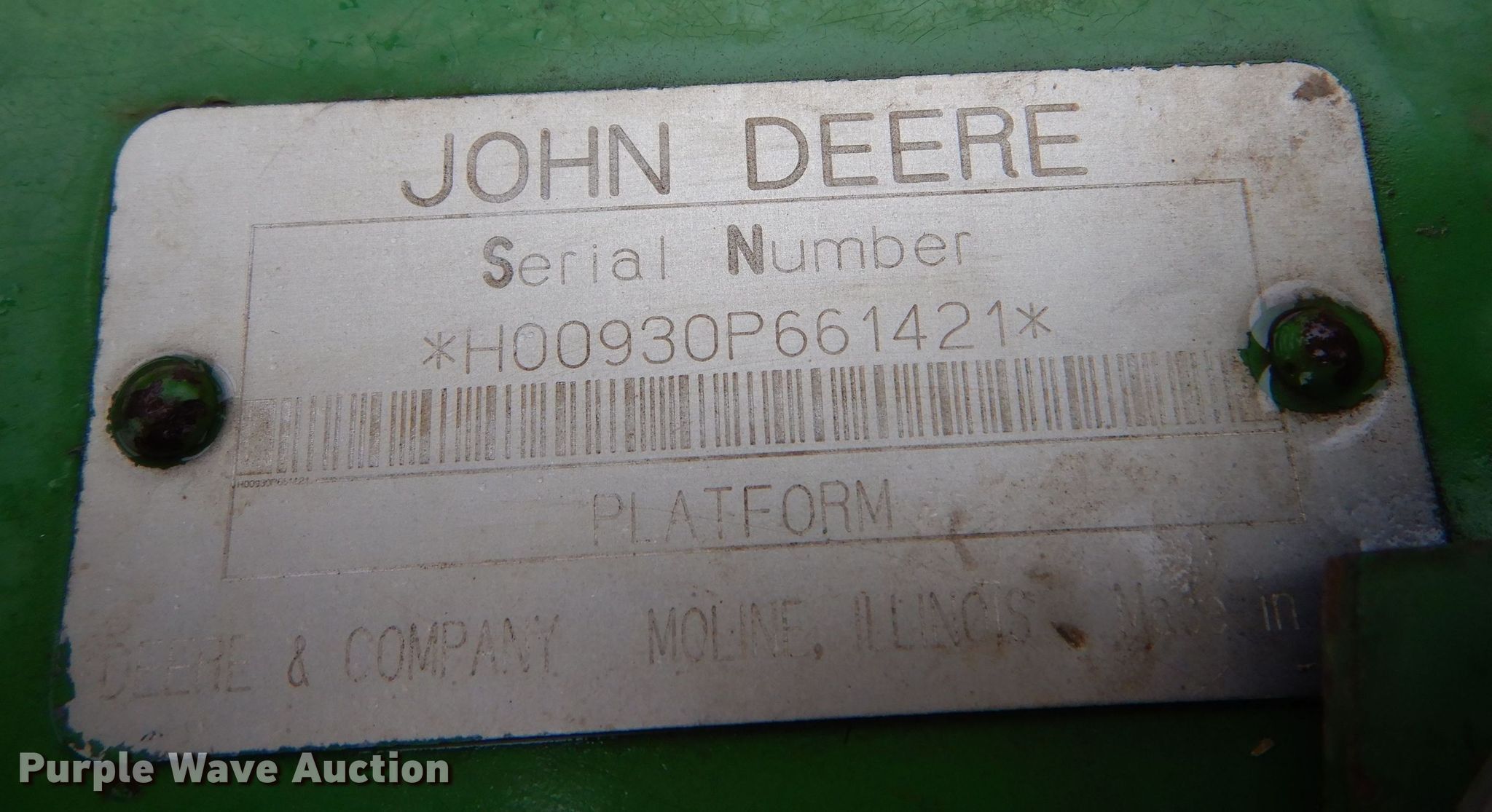 Purple Wave is selling a used Platform or Stripper Head in Kansas. This item is a John Deere 930 rigid head with the following: Serial: H00930P661421