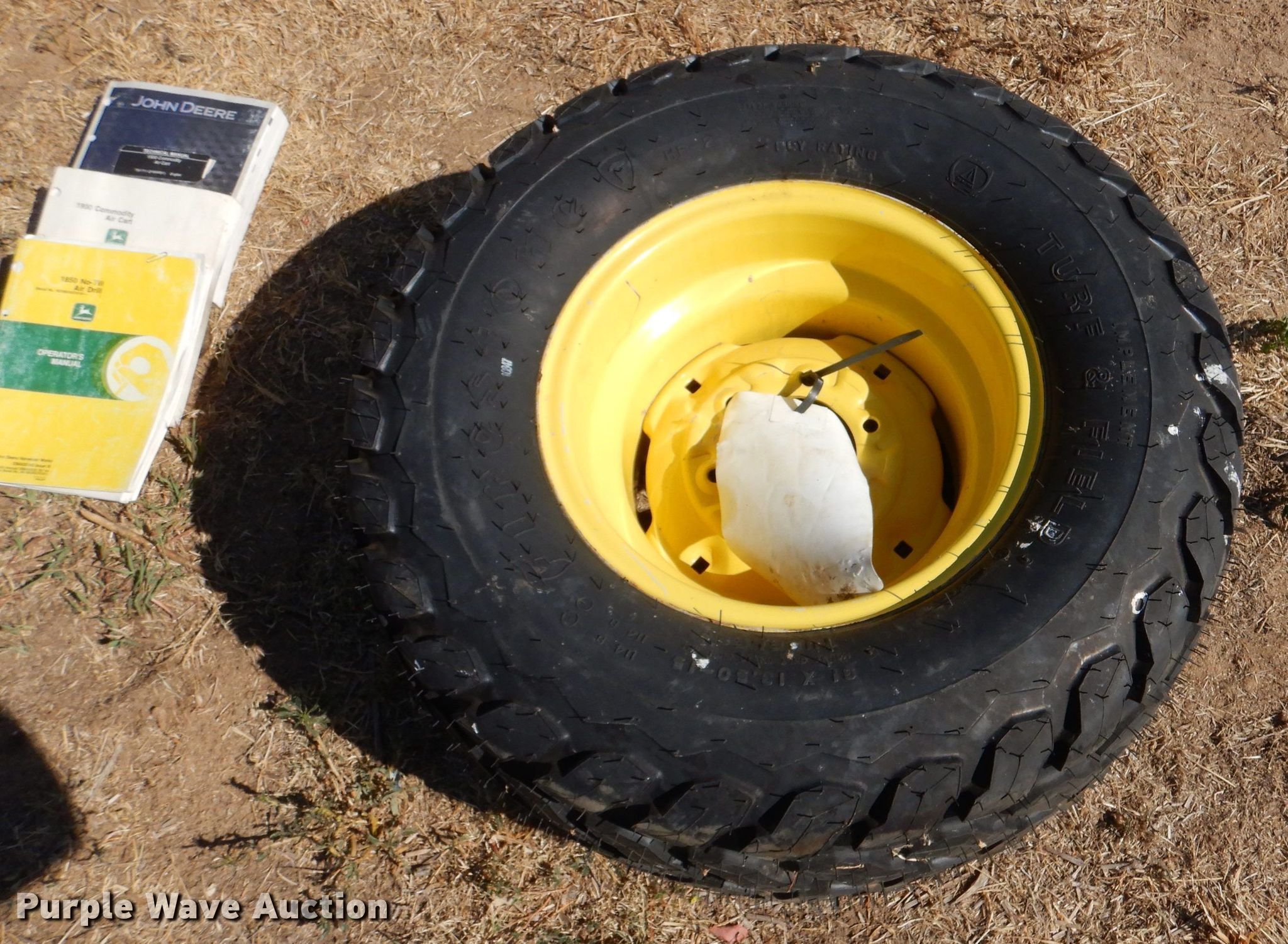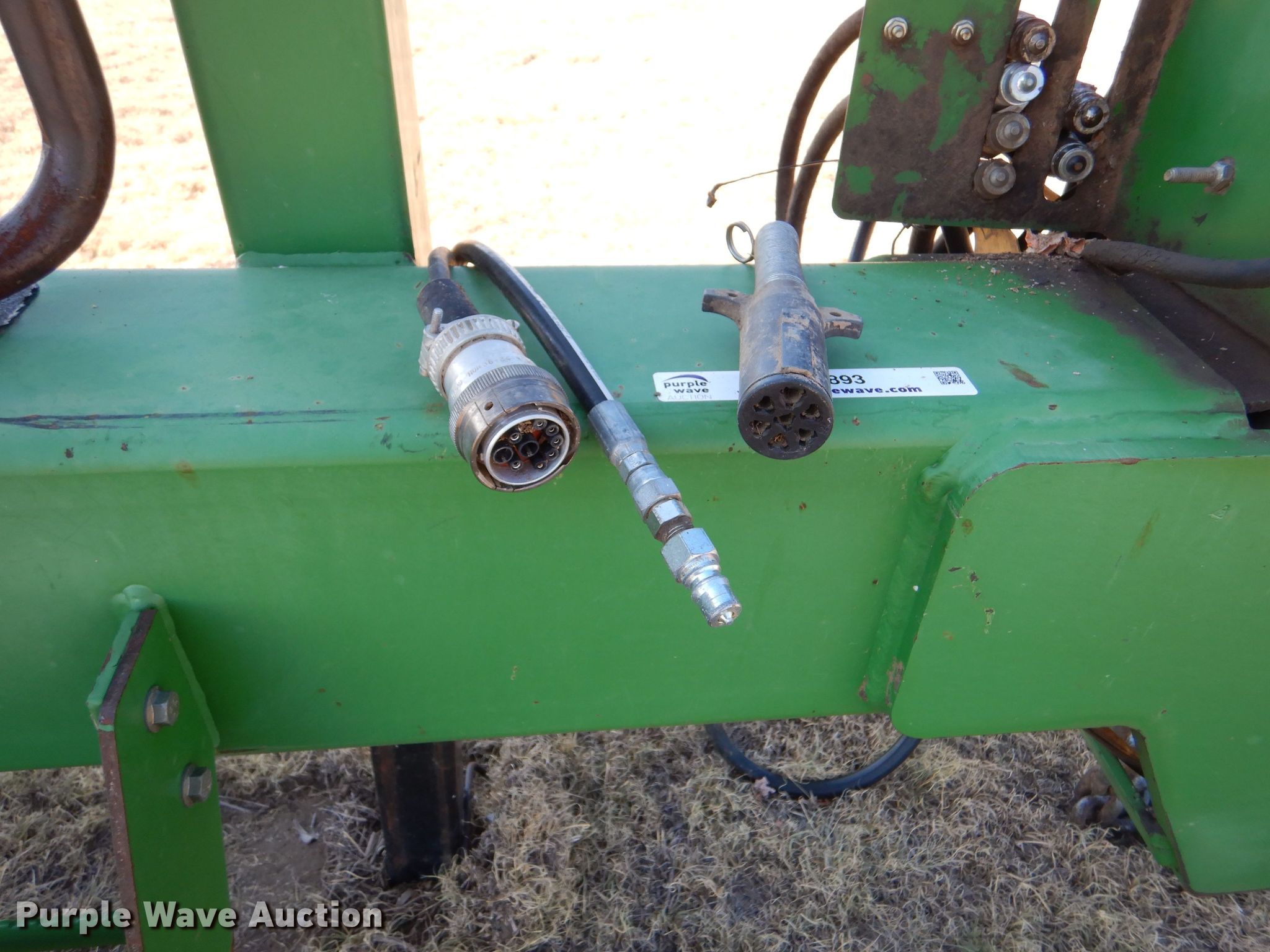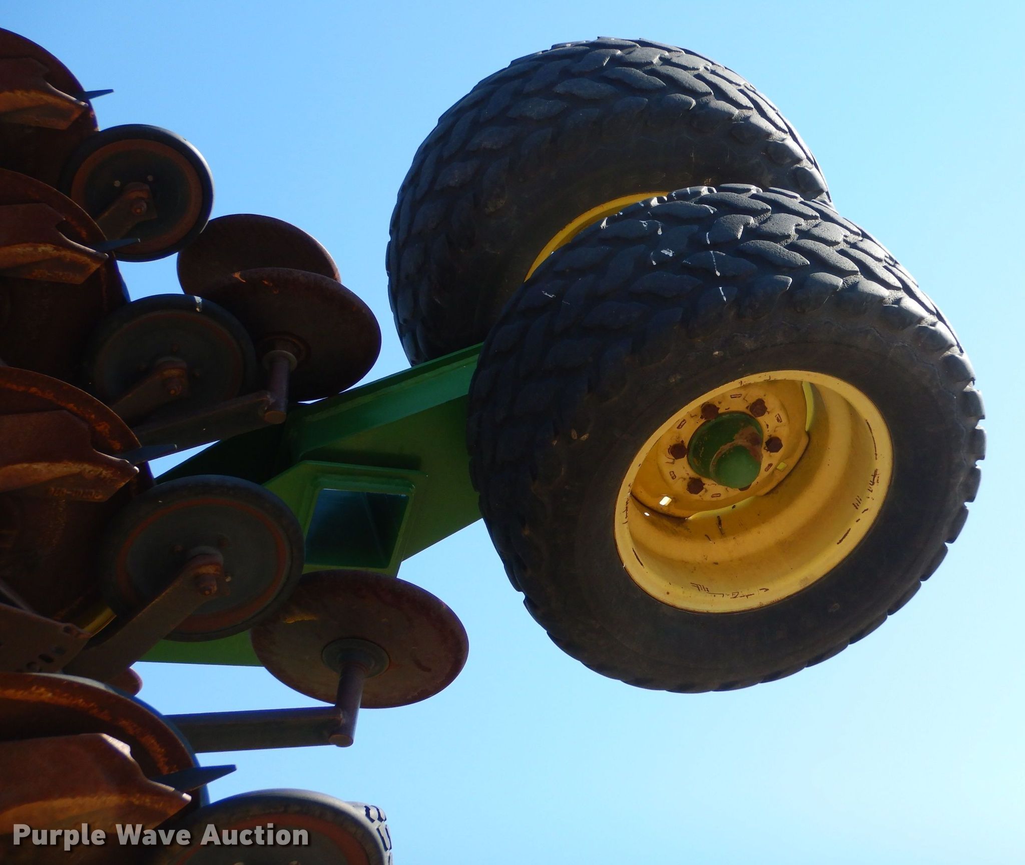 John Deere 1850 air seeder. Width: 42', Row units: 50, Row spacing: 10", Serial: H01850X672010. Features Frame Hydraulic fold Wing fold, Air commodity cart John Deere 1900, Serial: H01900T675665, Row units Meter drive: Ground, Down pressure: Hydraulic, Disk openers: Single , Gauge wheels: Single, Closing system: Single Type: Cast, (26) suitcase weights. Tires Transport tire size: 31x13.50-15 Quantity: 8, Drive/ outside tire size: 31x13.50-15 Quantity: 8, Cart tire size: 23.1-26. Notes Wheat in hopper included, Approx. 40' L additional hose, Primary hose damaged. 11932 120 Road. Ford, KS 67842