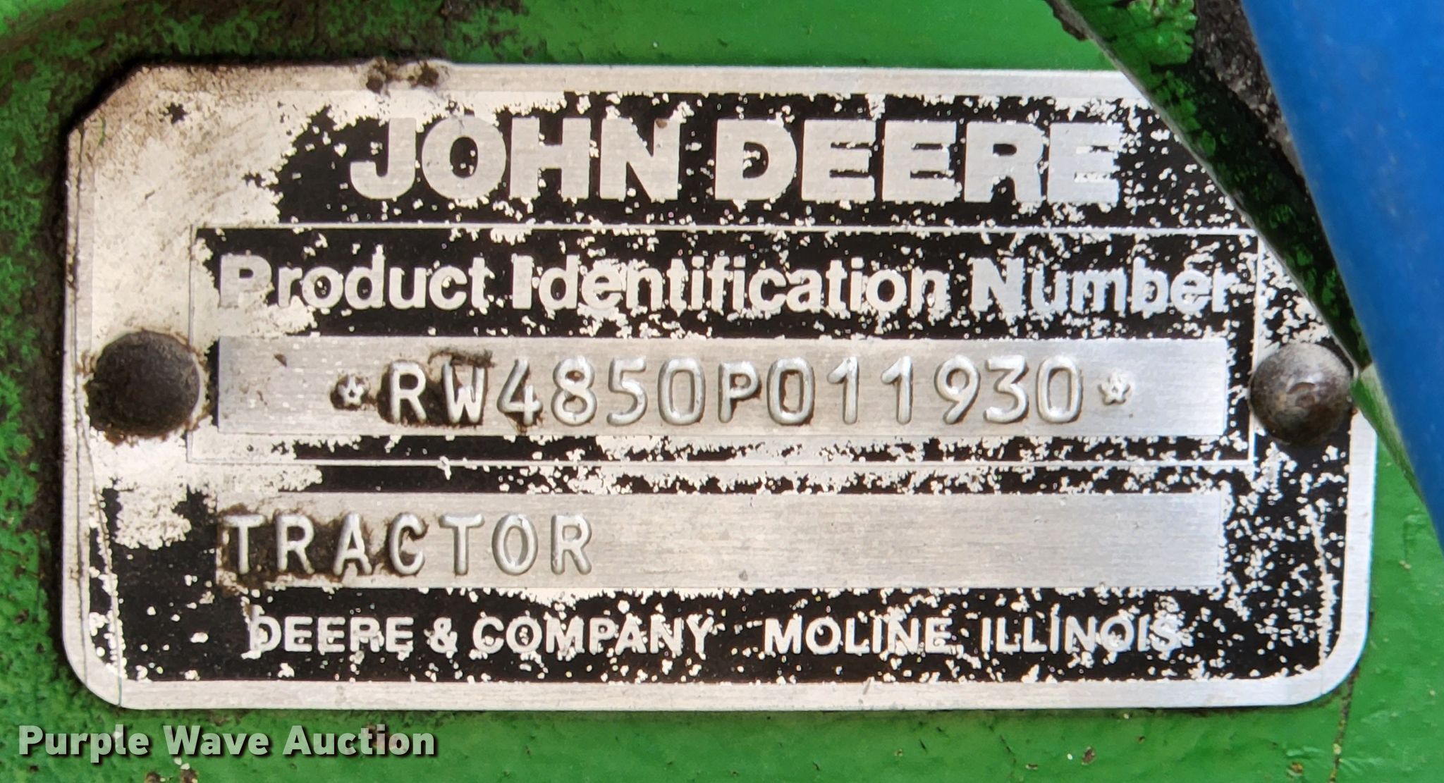 Purple Wave is selling a used Tractor in Tennessee. This item is a 1987 John Deere 4850 MFWD tractor with the following: Hours: 1,862 on meter, Serial: RW4850P011930