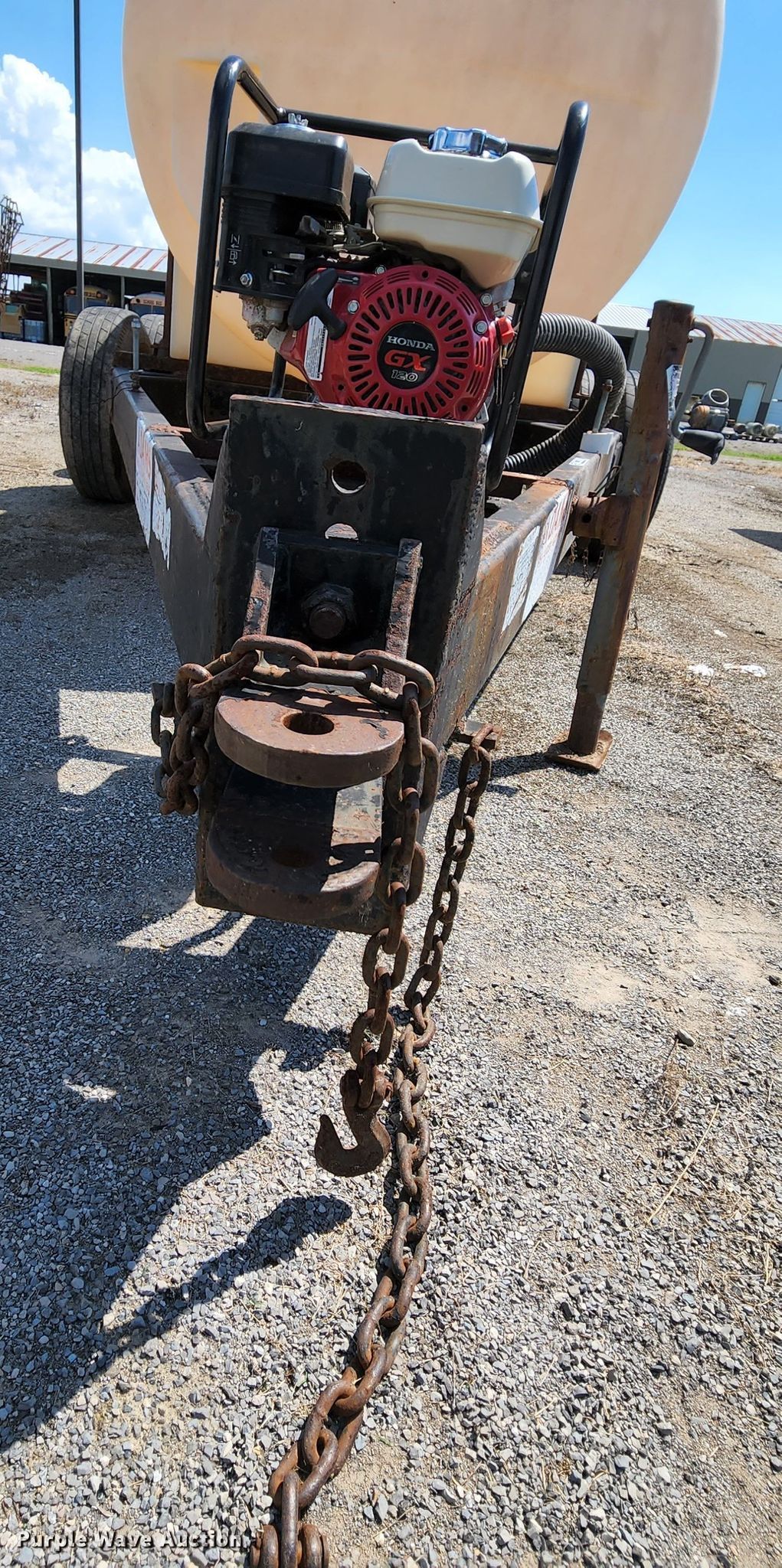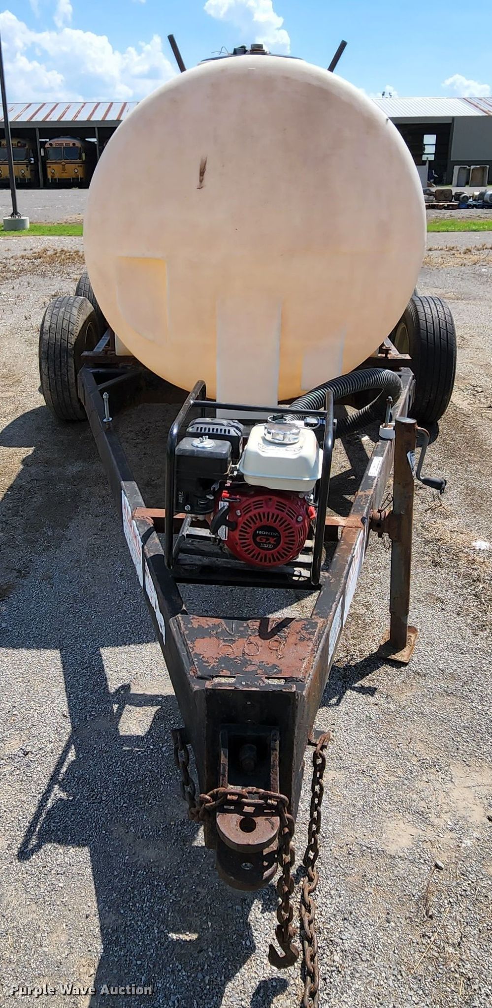 Adams nurse tank trailer. Dimensions. Overall: 17' 8" L x 84" W. Features Tank type: Poly Capacity: 1,000 gallons, Pump Hidels, Engine Honda GX120, Fuel type: Gas.. Chassis Landing gear: Single, Axles: Tandem. Tires Steel wheels, Size: 225/75R15. Vanduser Gin Co.. 802 Hamilton. Vanduser, MO 63784