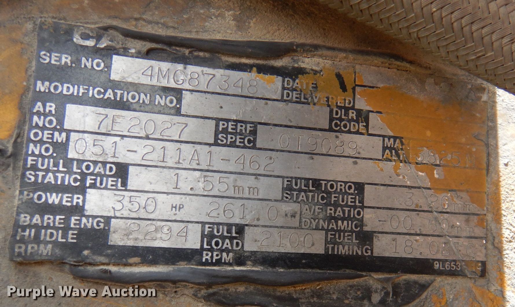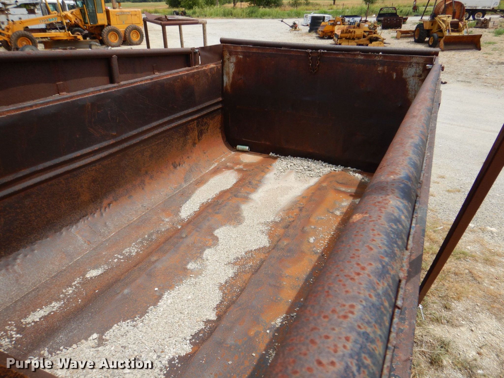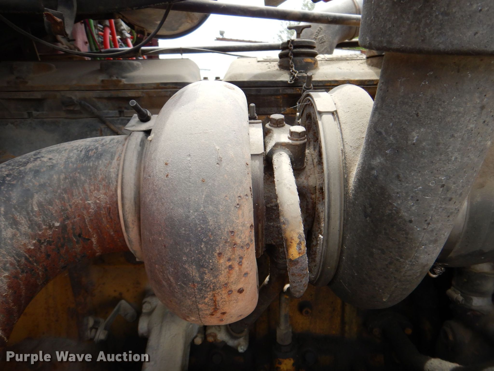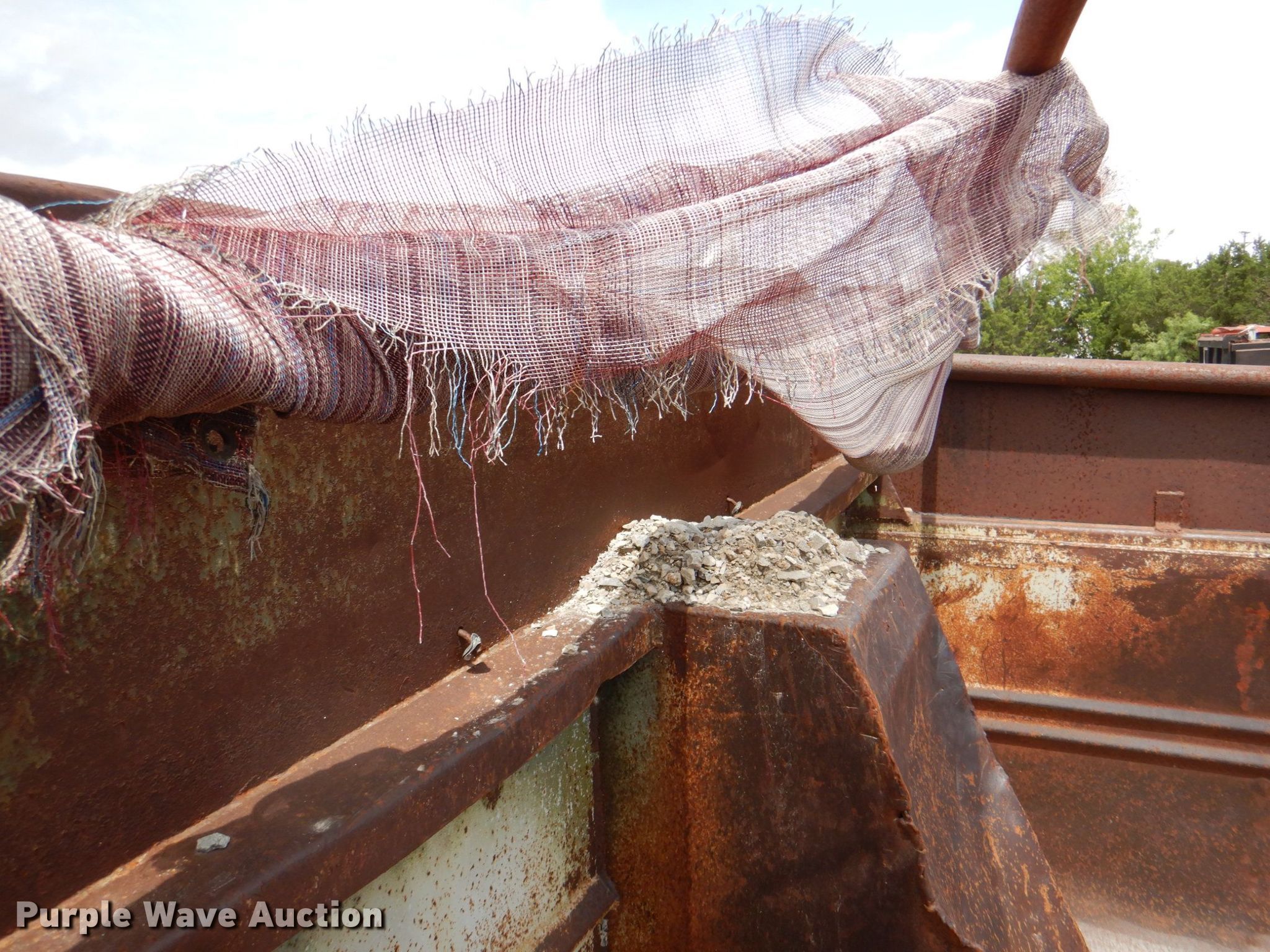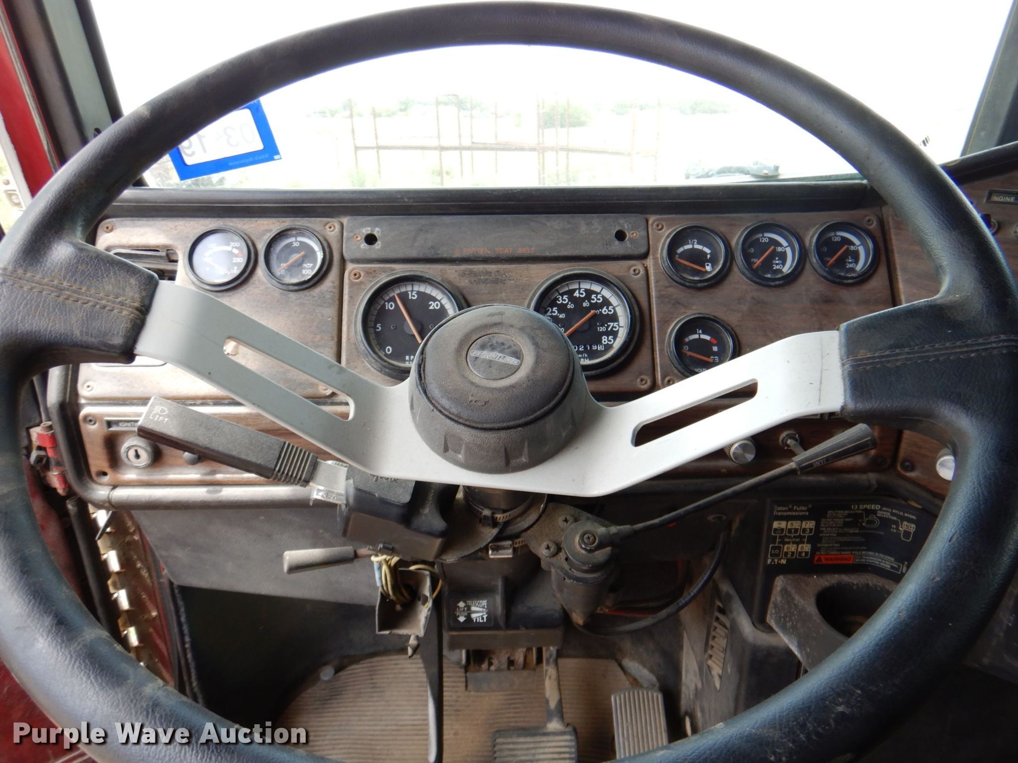 1994 Freightliner FLD120 dump truck. Miles: 870,220 on odometer, VIN: 1FUPFSYB1RH586536. Engine Caterpillar 3406C, Serial: 4MG87348, Displacement: 14.6L, Cylinders: 6, Fuel type: Diesel, HP: 350, kW: 261, Engine brake. Transmission Eaton Fuller, Manual, Speed: 13. Chassis Axles: Tandem, Differential lock: Inter-axle, Suspension: Spring, Brakes: Air, PTO, GVWR: 50,000 lbs FAWR: 12,000 lbs, IAWR: 19,000 lbs, RAWR: 19,000 lbs. Interior AC, Heat. Features Dump bed 13' L x 8' W, Side height: 42", Bed type: Steel, Roll tarp, Ram: Single , End gate: Air operated. Tires Front: 315/80R22.5, Rear: 11R22.5. Notes Windshield chipped or cracked, Non-operational unit. Texas title. CEL Contractors Inc. 414 County Road 336. Dublin, TX 76446