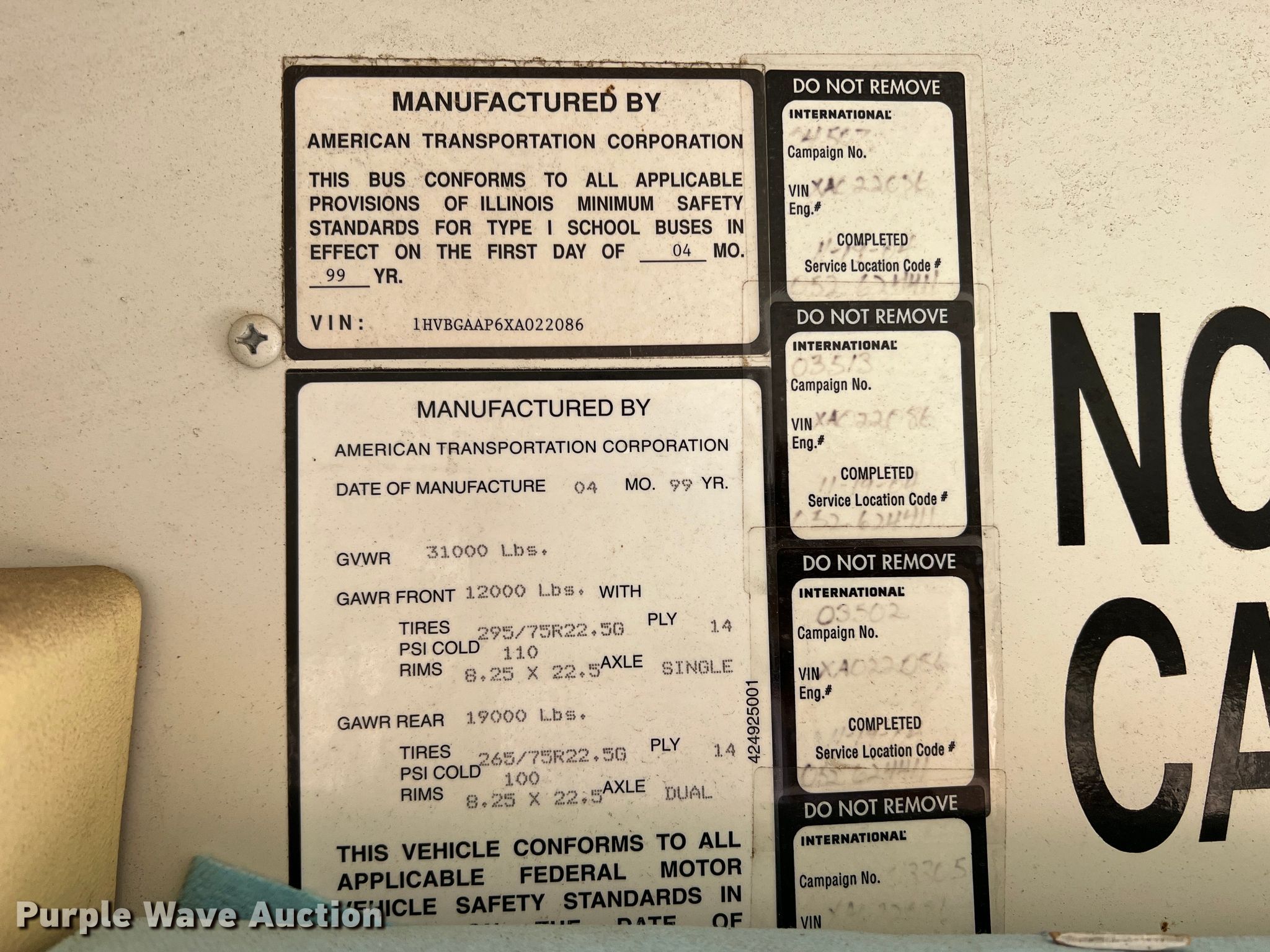 Purple Wave is selling a used Bus in Kansas. This item is a 1999 Amtran Genesis school bus with the following: Miles: 69,806 on odometer, VIN: 1HVBGAAP6XA022086