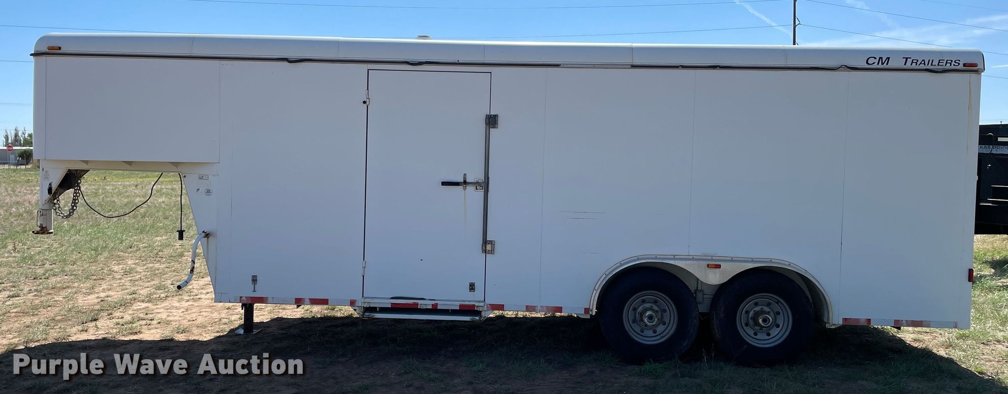 2002 CM enclosed cargo trailer. VIN: 49TCG202921058079. Dimensions Overall: 27' L x 98" W, Body: 19' 7" L x 90" W. Features Deck type: Wood. Chassis Hitch: Gooseneck, Landing gear: Single, Suspension: Spring, Brakes: Electric, Axles: Tandem. Tires Steel wheels, Size: 235/85R16. Texas title. Amarillo, TX 79108