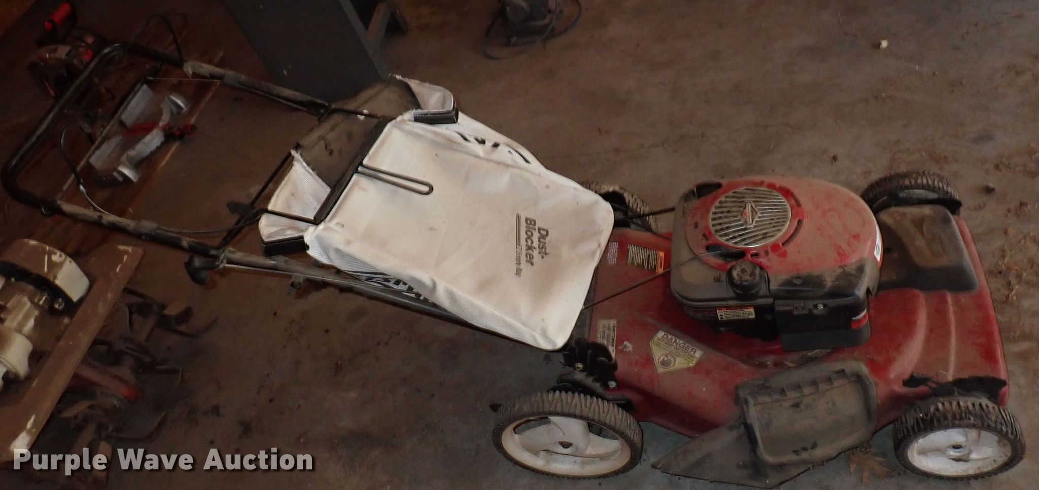 Purple Wave is selling a used Lawn and Garden in Kansas. This item is a Lawn and garden equipment with the following: Craftsman push mower, Cutting width: 22", Briggs & Stratton gas engine, Bagger, Tiller, Briggs & Stratton 5 HP gas engine, Unknown operating condition