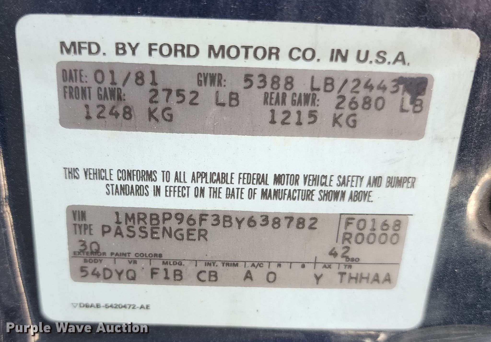 1981 Lincoln Mark VI. Miles: 71,063 on odometer, VIN: 1MRBP96F3BY638782. Engine Displacement: 5.0L V8, Cylinders: 8, Fuel type: Gas. Transmission Automatic. Interior AC, Heat, Power windows, Power locks. Tires Size: 215/75R15. Notes Possible fuel pump issues, Non-operational unit. Missouri title. Caster's Tow Transport LLC. 106 NW Locust St. Oak Grove, MO 64075