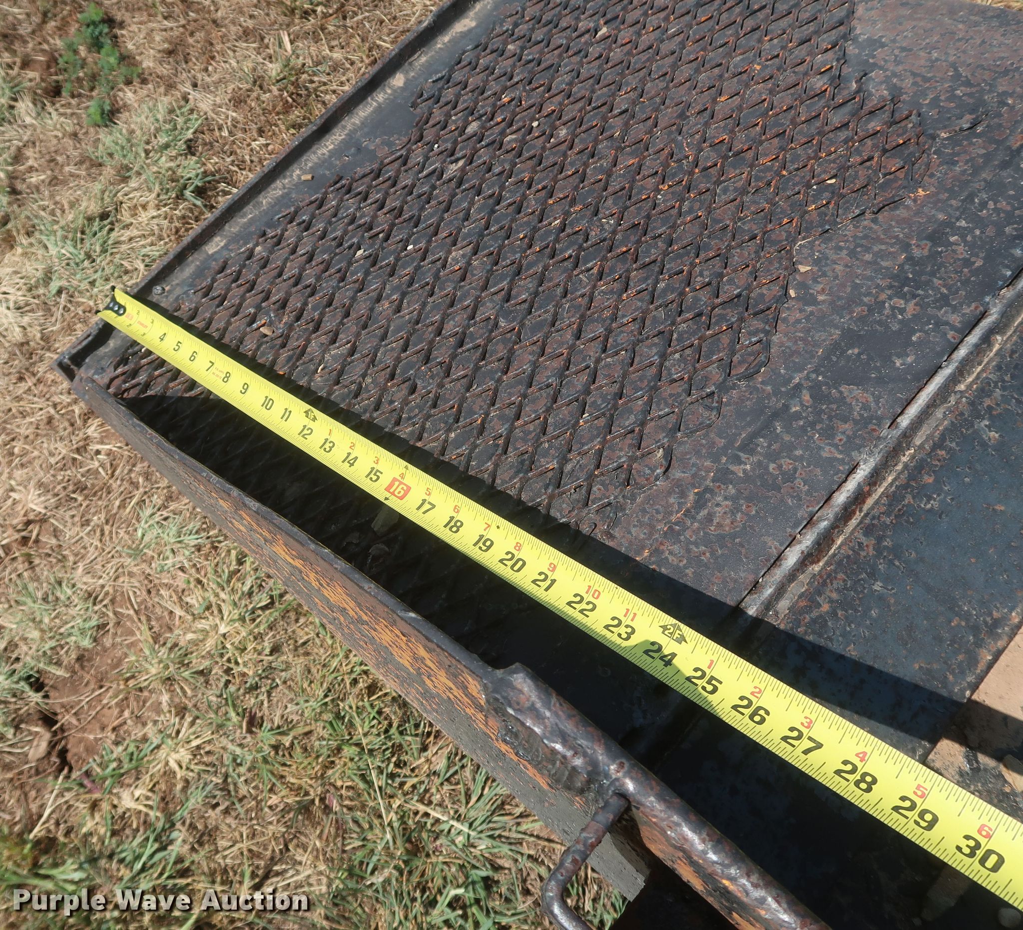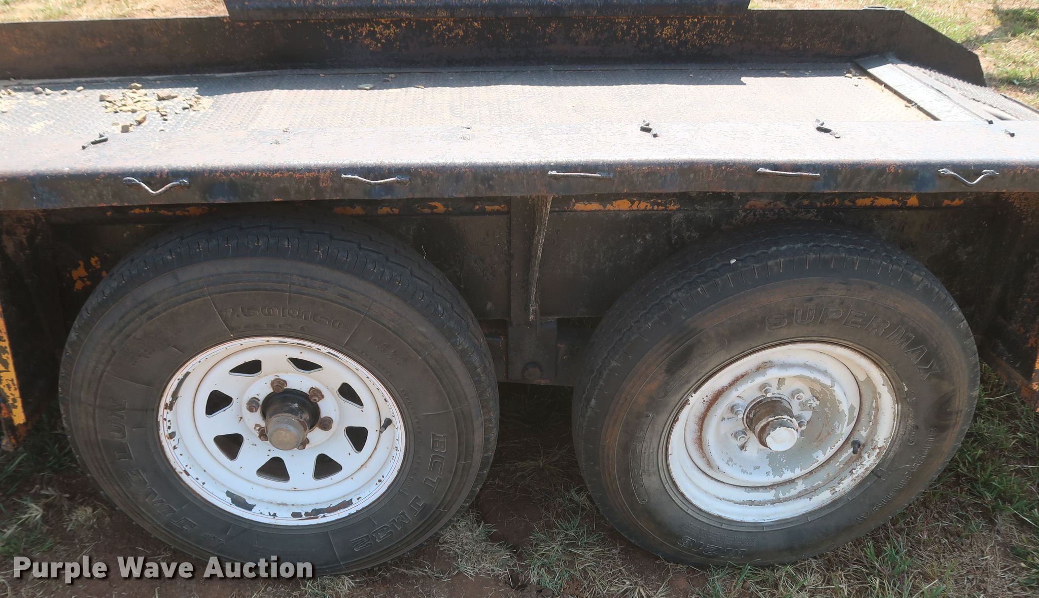 1981 Belshe utility trailer. VIN: 10005BELSHE. Dimensions Overall: 23' L x 96" W, Deck: 14' L x 78" W, Tail length: 2'. Features Deck type: Steel. Chassis Ball hitch: 2 5/16", Landing gear: Single, Suspension: Spring, Brakes: Electric, Axles: Tandem. Tires Size: 7.50R16. Oklahoma title. Marcum's Nursery, Inc.. Goldsby, OK 73093